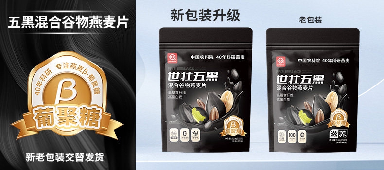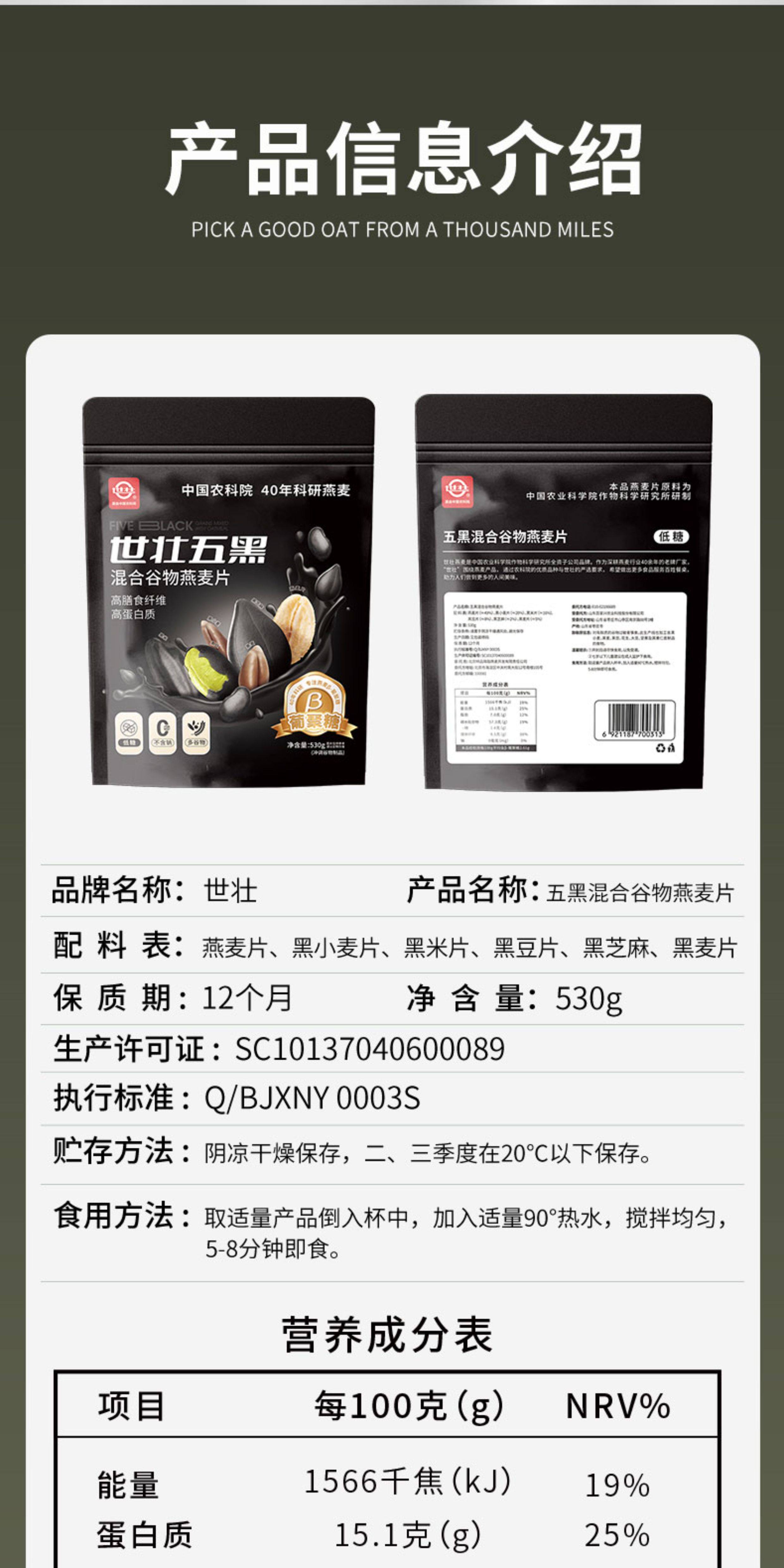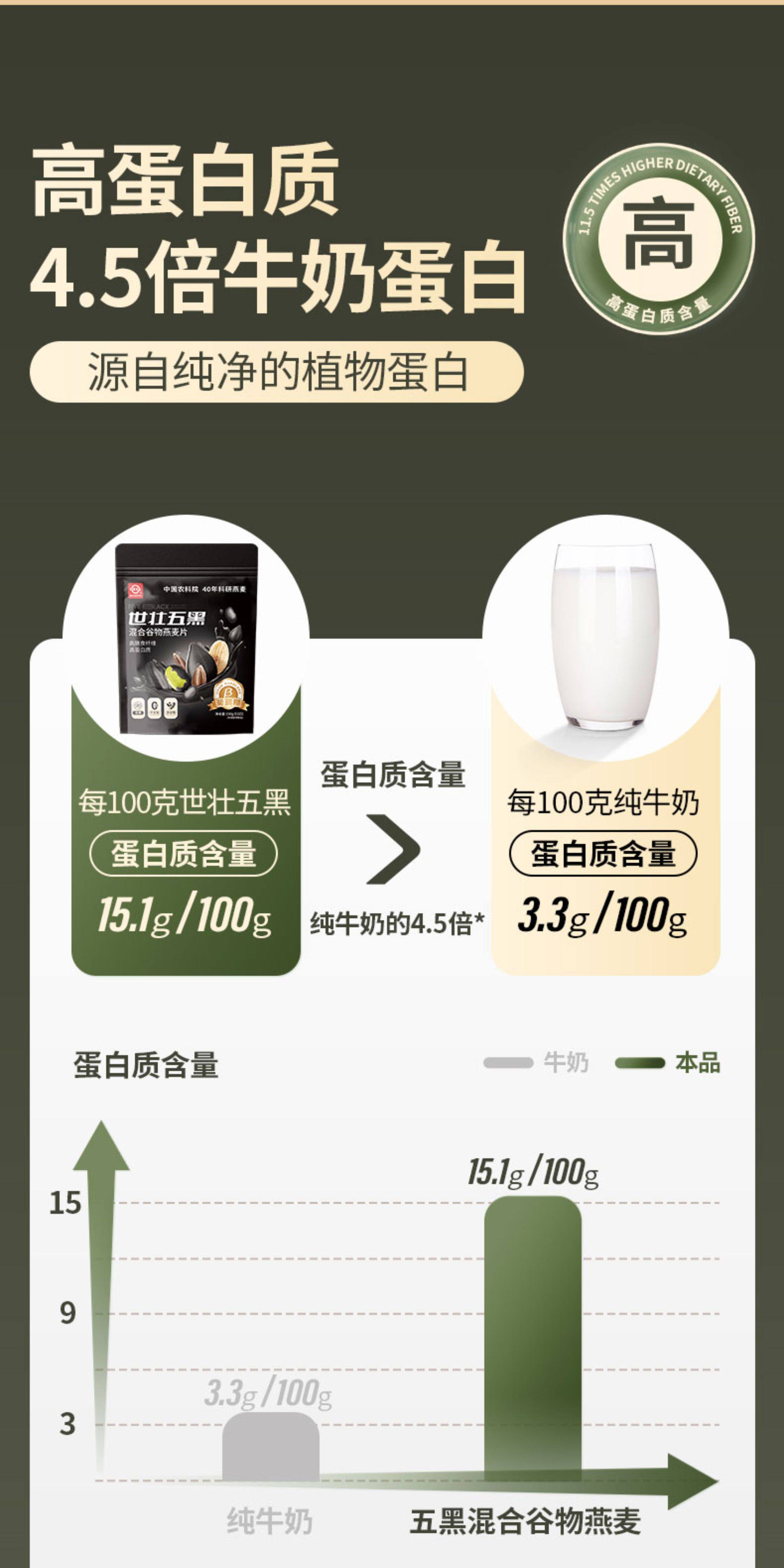 中国农科院世壮五黑粗粮麦片营养燕麦芝麻黑麦混合懒人速食早餐