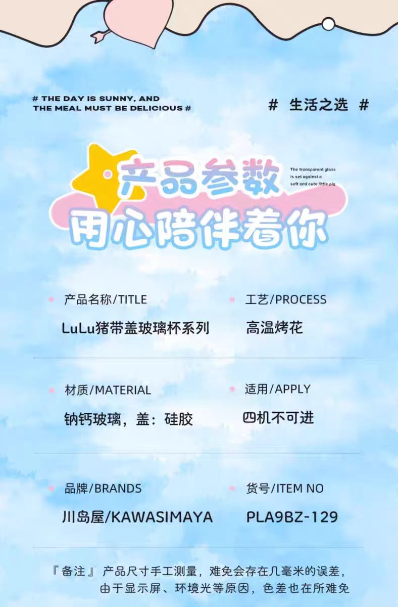 4楼Eubelle欧蓓 川岛屋&lulu猪联名 玻璃咖啡杯dirty拿铁杯260ml 活动价:19.8元