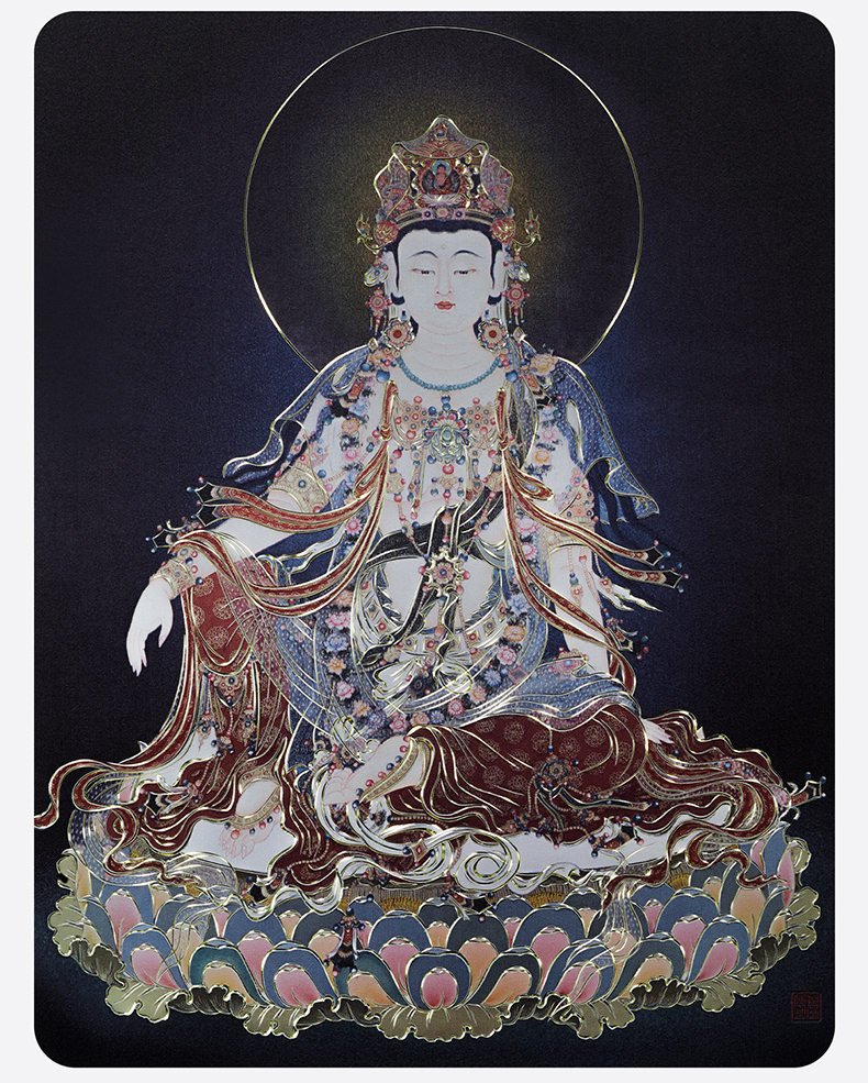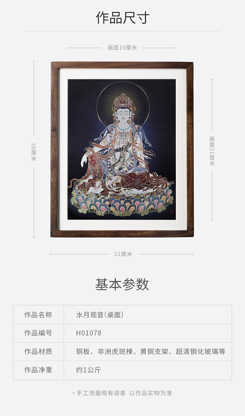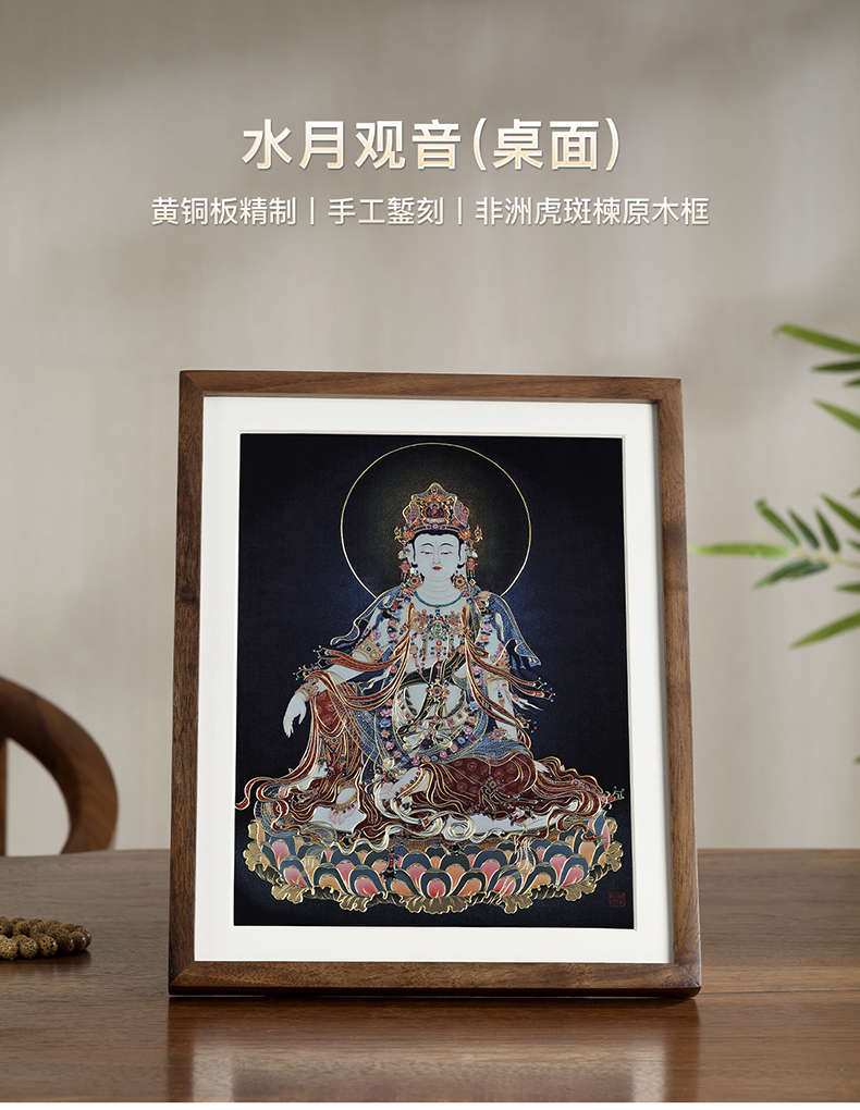铜师傅 手工錾刻 铜雕画《水月观音(桌面)》客厅桌面装饰画