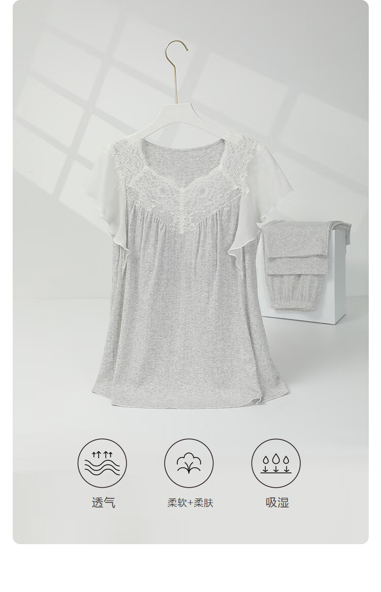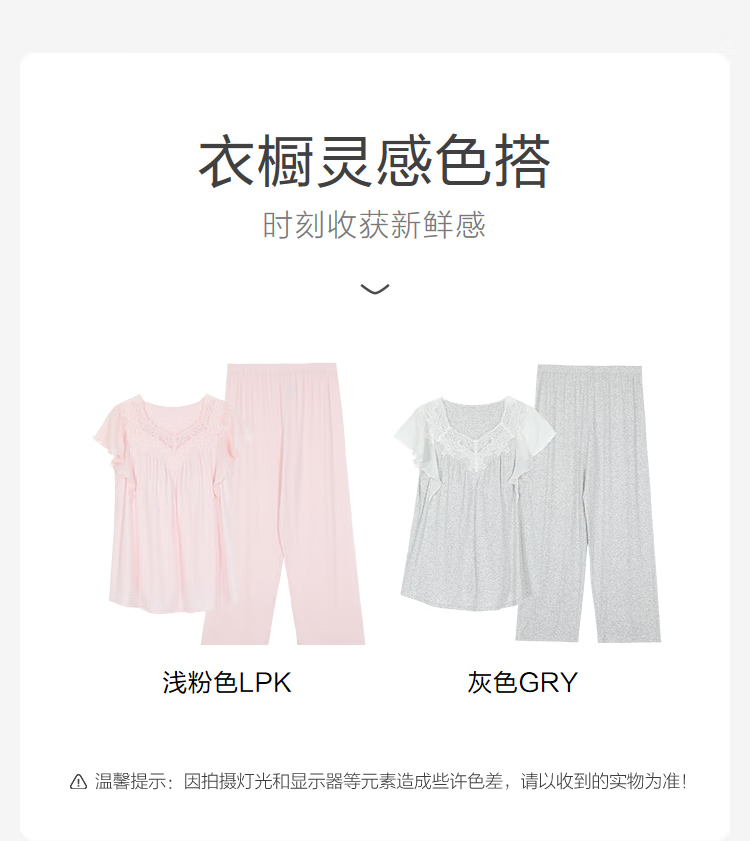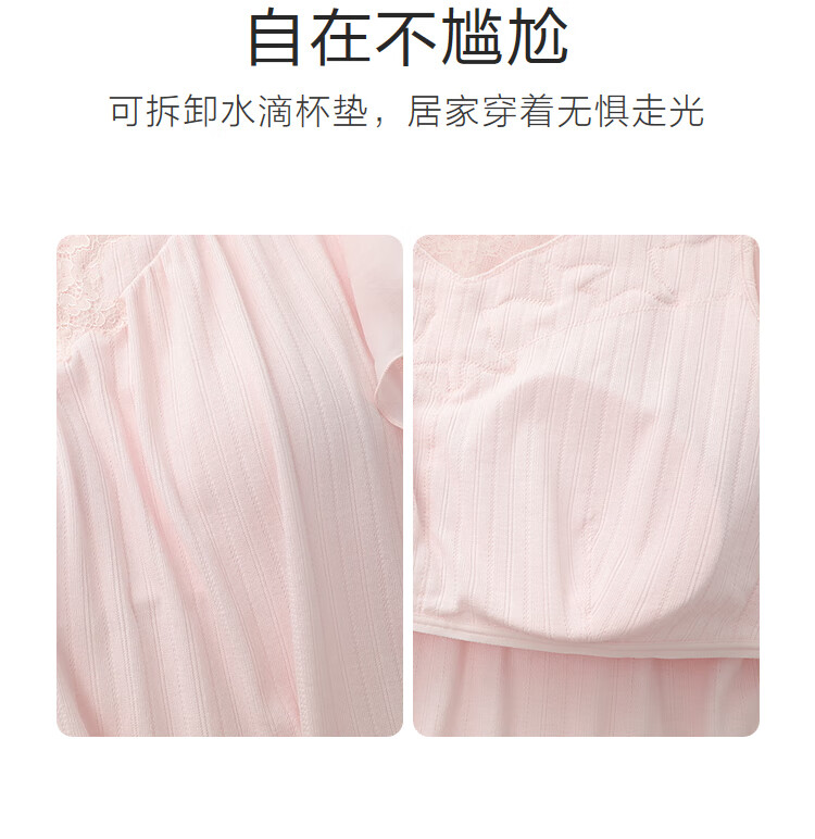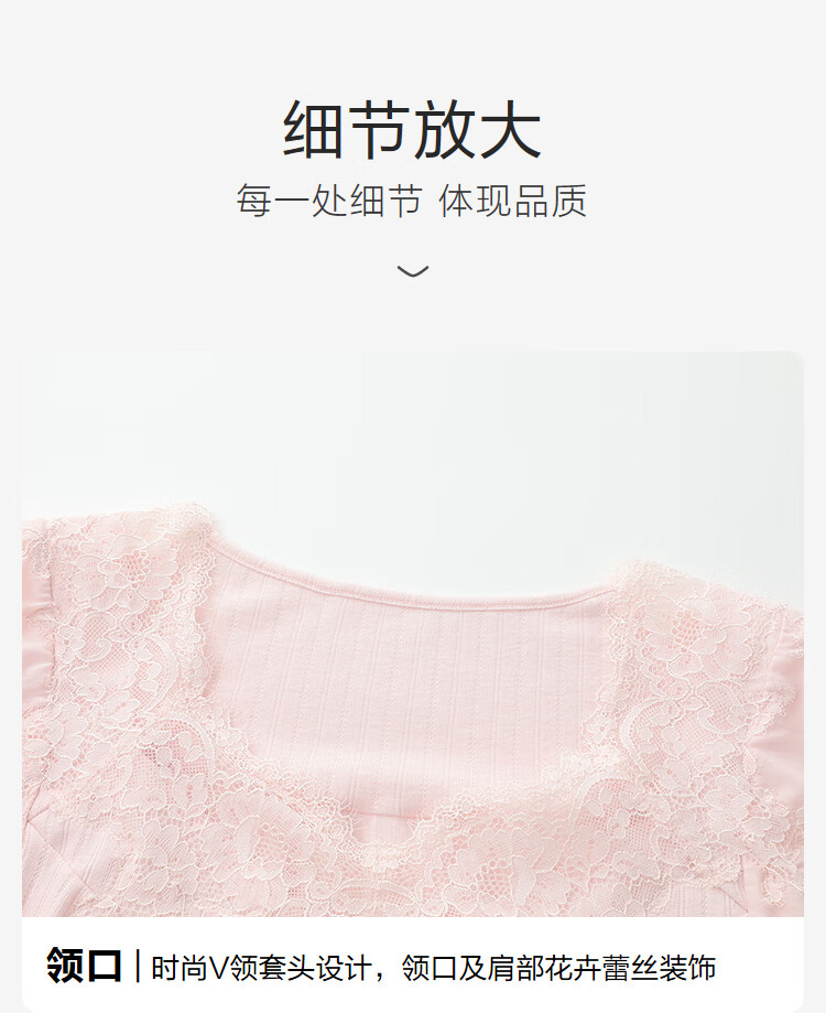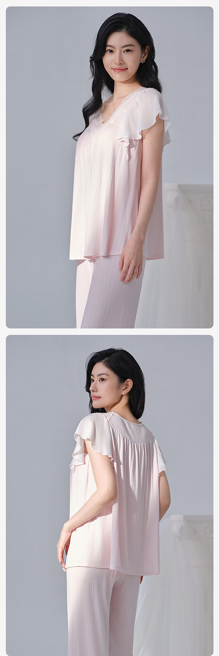 【3F】安莉芳时尚v领套头法式睡衣带杯垫女士家居服套装EL00851 浅粉色LPK M