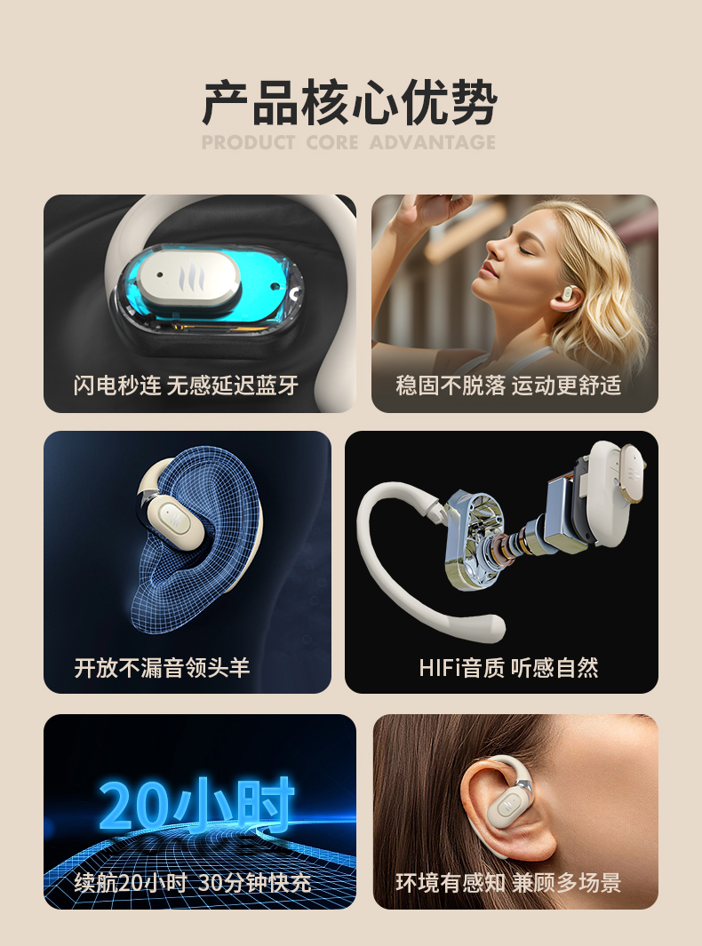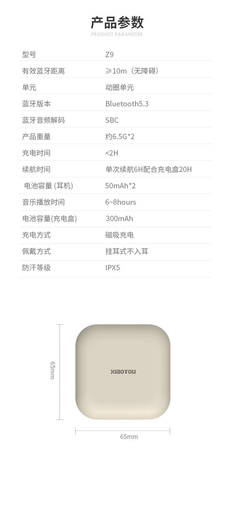 小幽Z9挂耳式无线蓝牙耳机长续航降噪运动跑步音乐耳机