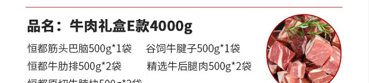 恒都 国产原切谷饲牛肉礼盒E款4000g