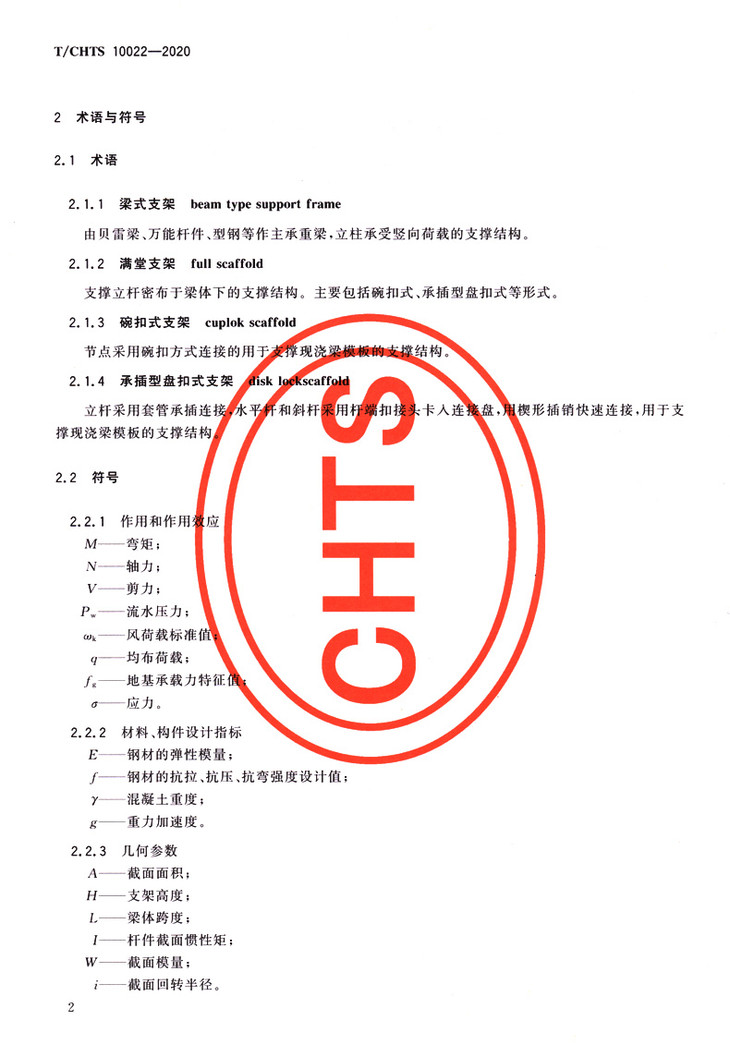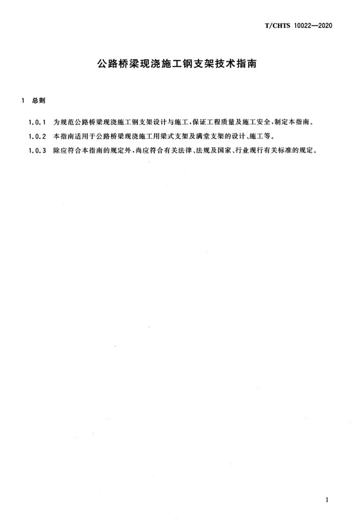 | 公路桥梁现浇施工钢支架技术指南(T/CHTS 10022—2020) | ||