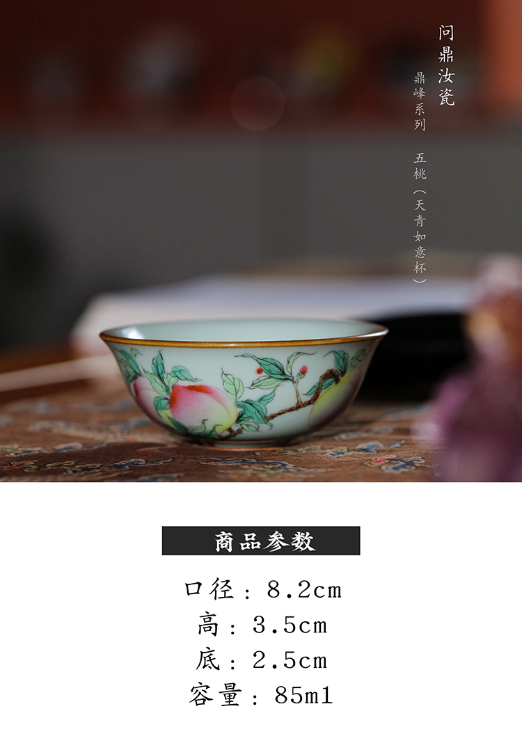 问鼎汝瓷鼎峰系列天青如意杯(五桃)