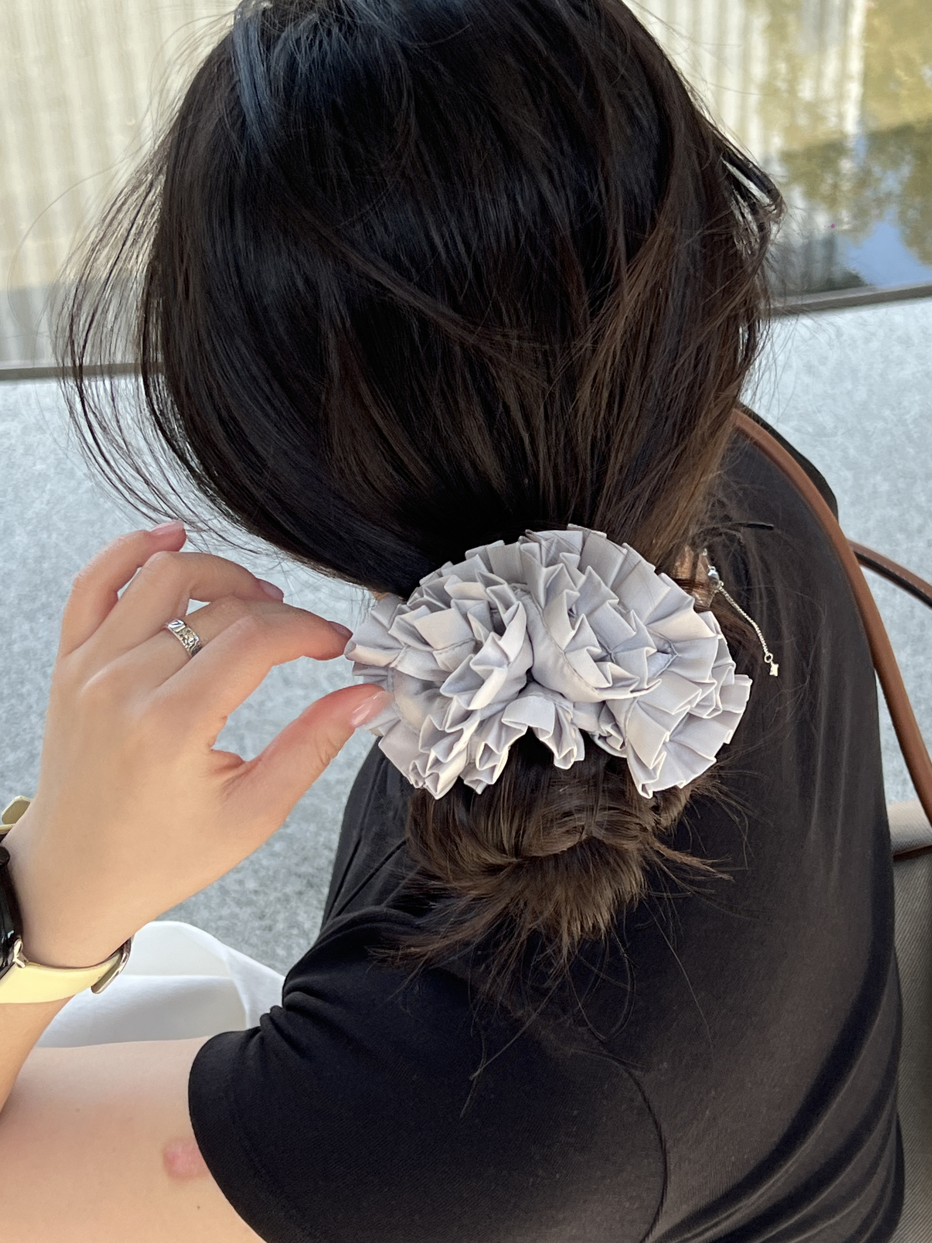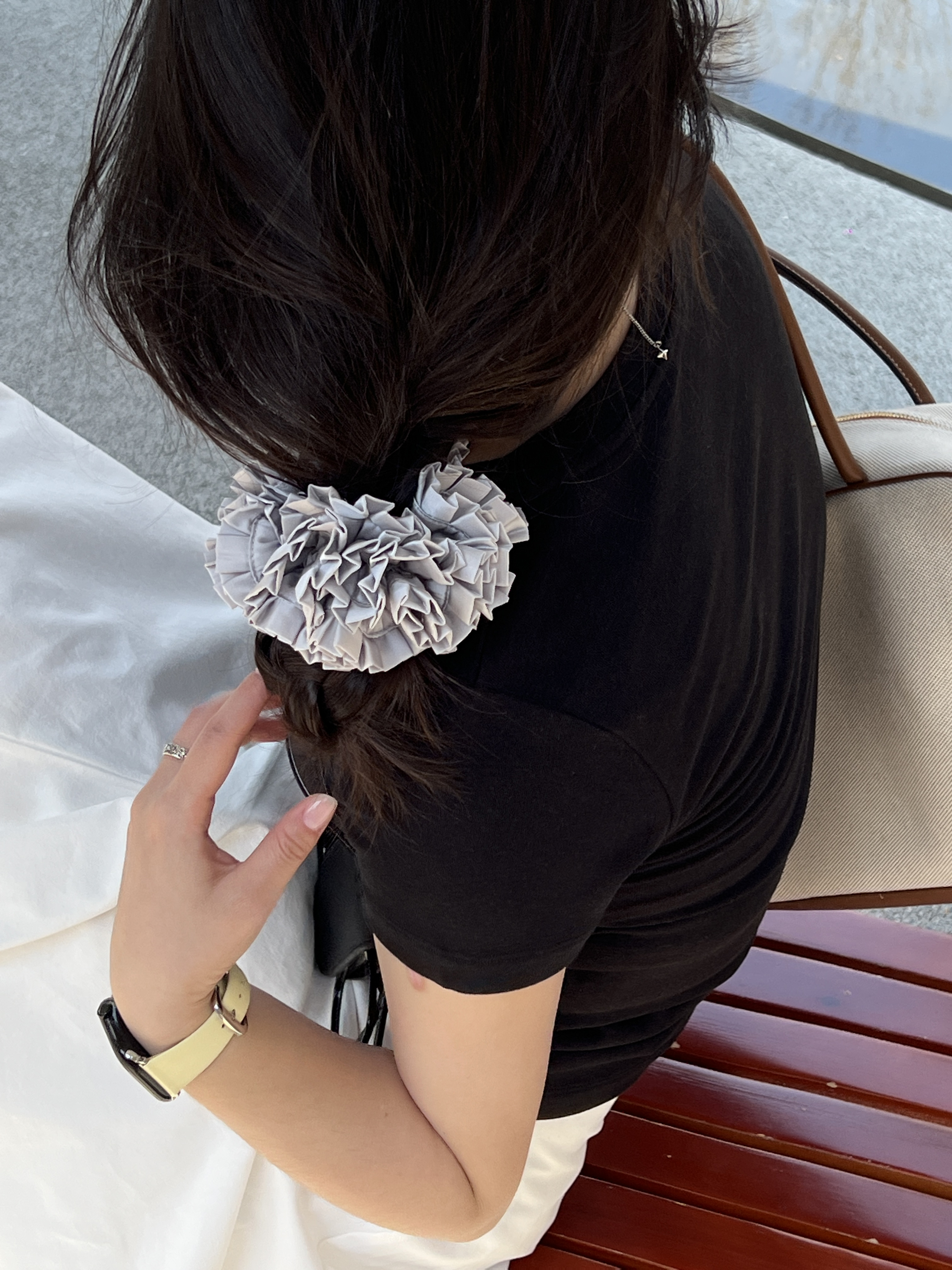 皮筋用的是高弹力对折皮筋,佩戴前要用基础发圈先打个底,直接佩戴会断裂