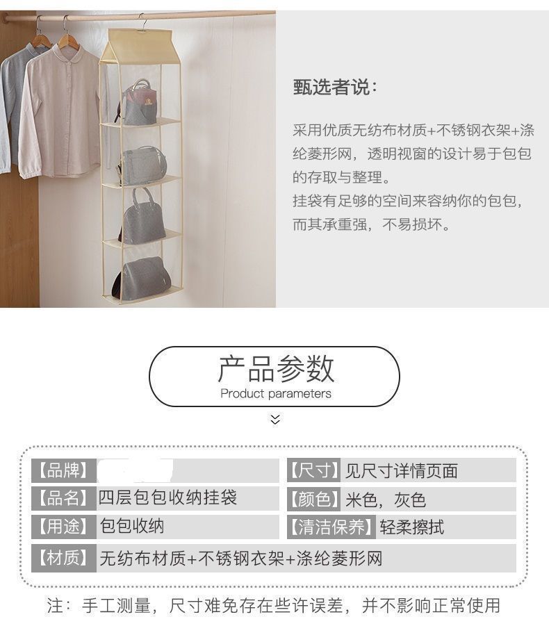 包包收纳袋挂袋布艺 收纳袋悬挂袋 衣柜墙挂式双面门后宿舍收纳架nct13
