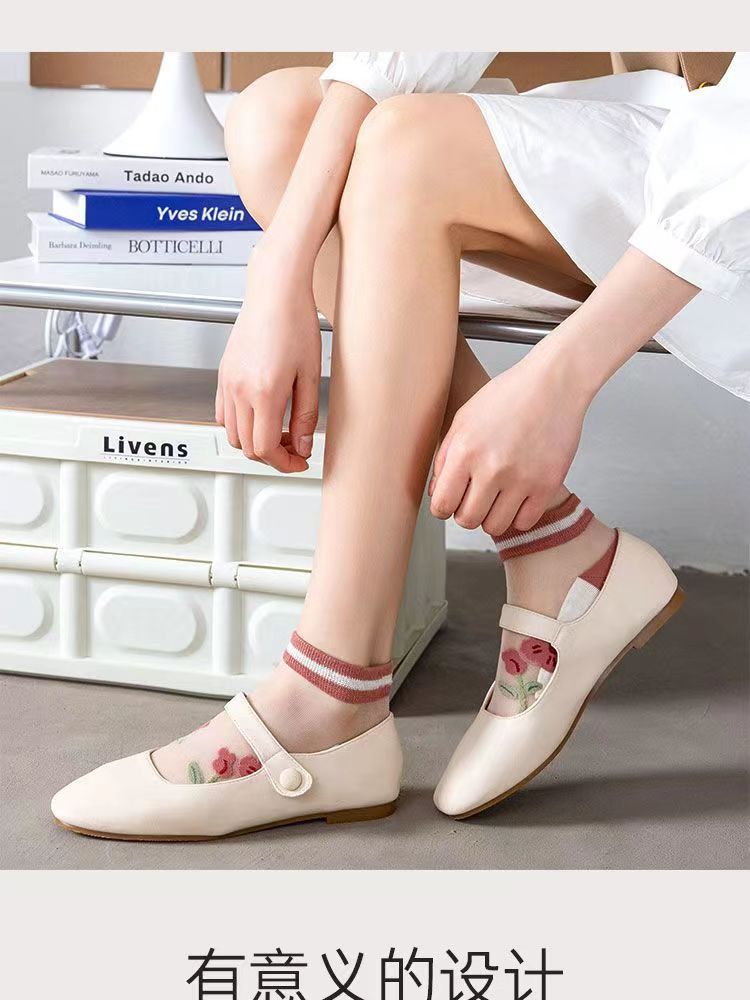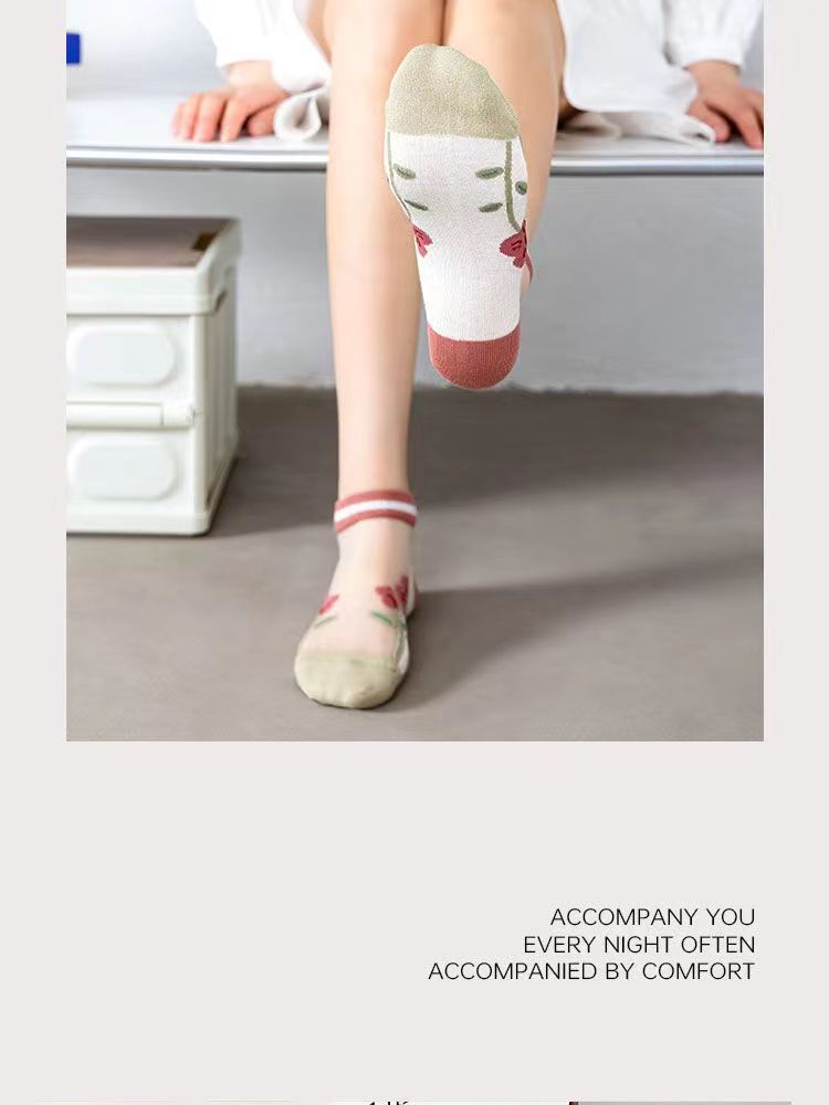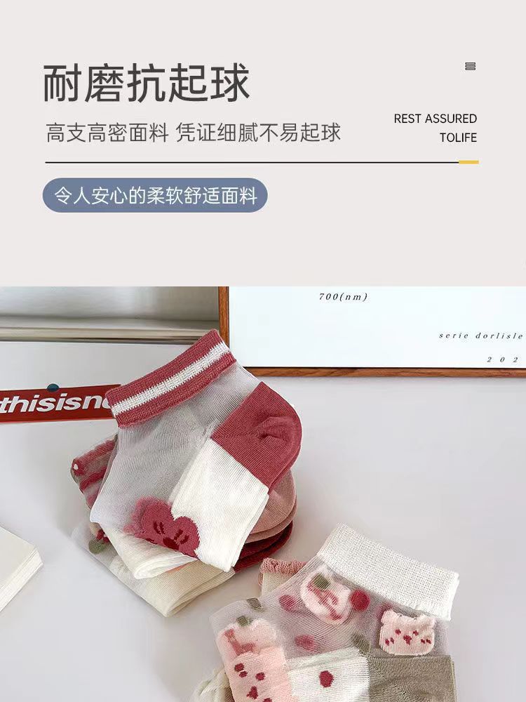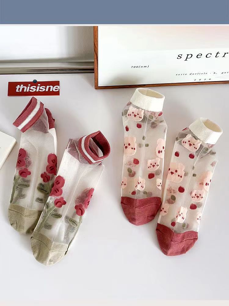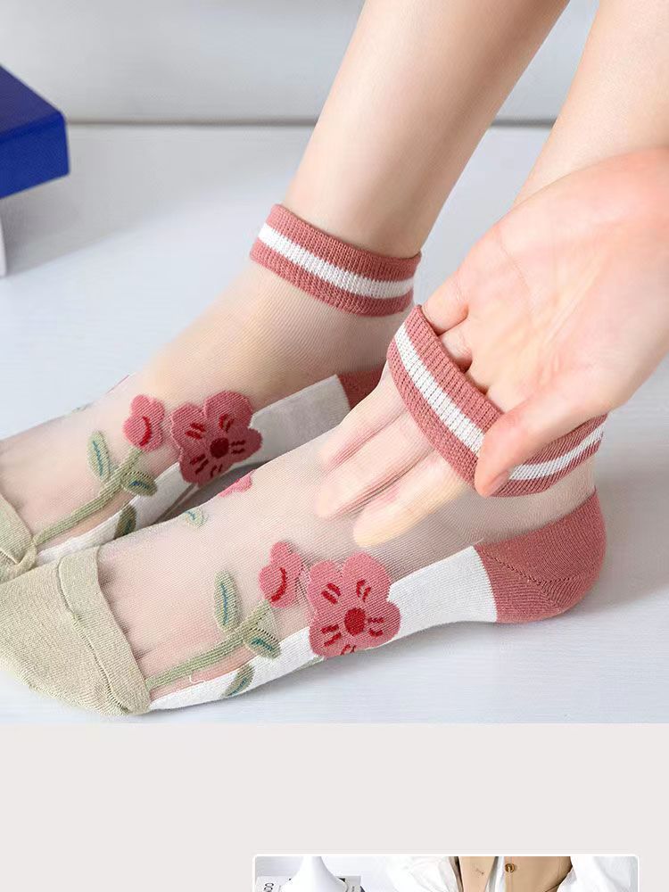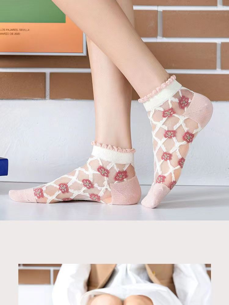 【19.9抢五双!卡丝花朵短袜】夏季薄款猫咪花朵水晶玻璃丝,活性印染拒绝掉色,透气吸汗不闷热,花边甜美网红袜子女短筒袜QQ