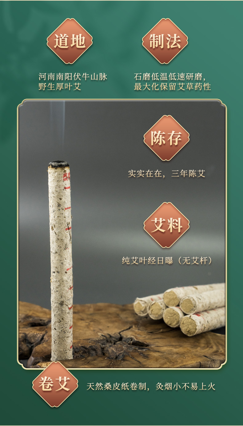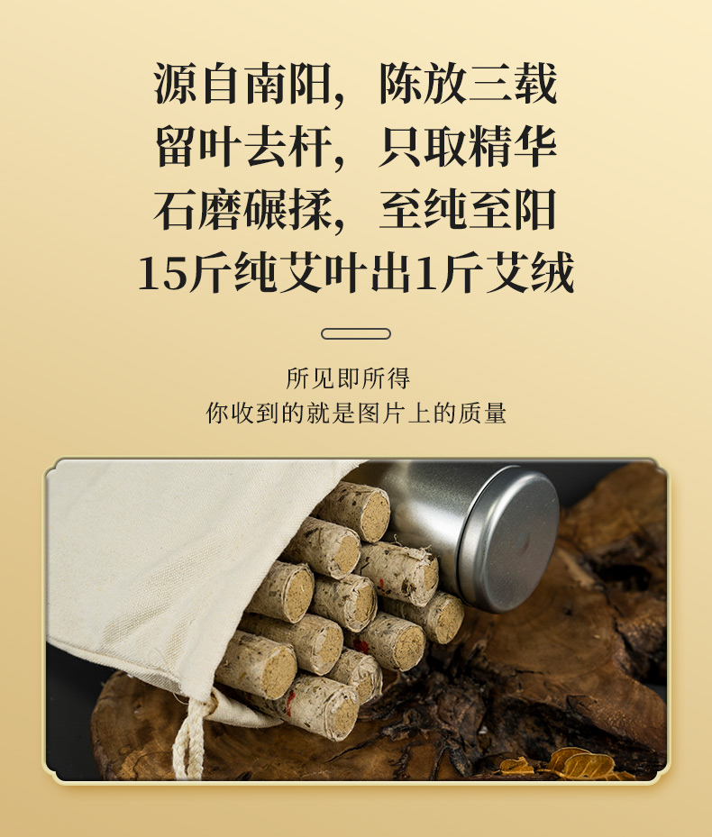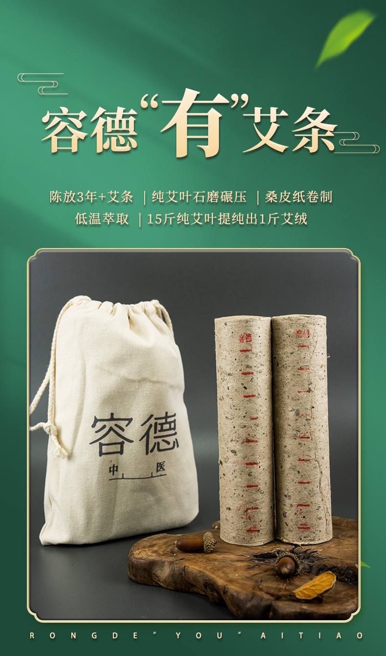 容德“有”艾条 陈放3年+艾条 纯艾叶石磨碾压 桑皮纸卷制 低温萃取 15斤纯艾叶提纯出1斤艾绒
