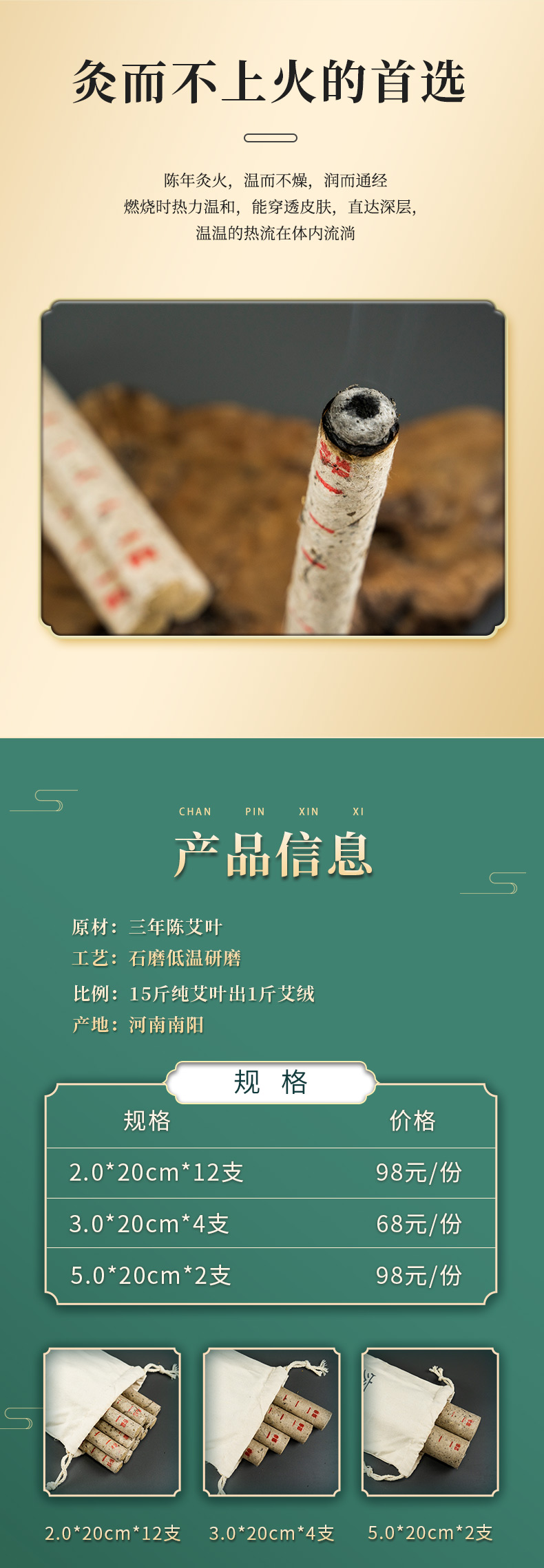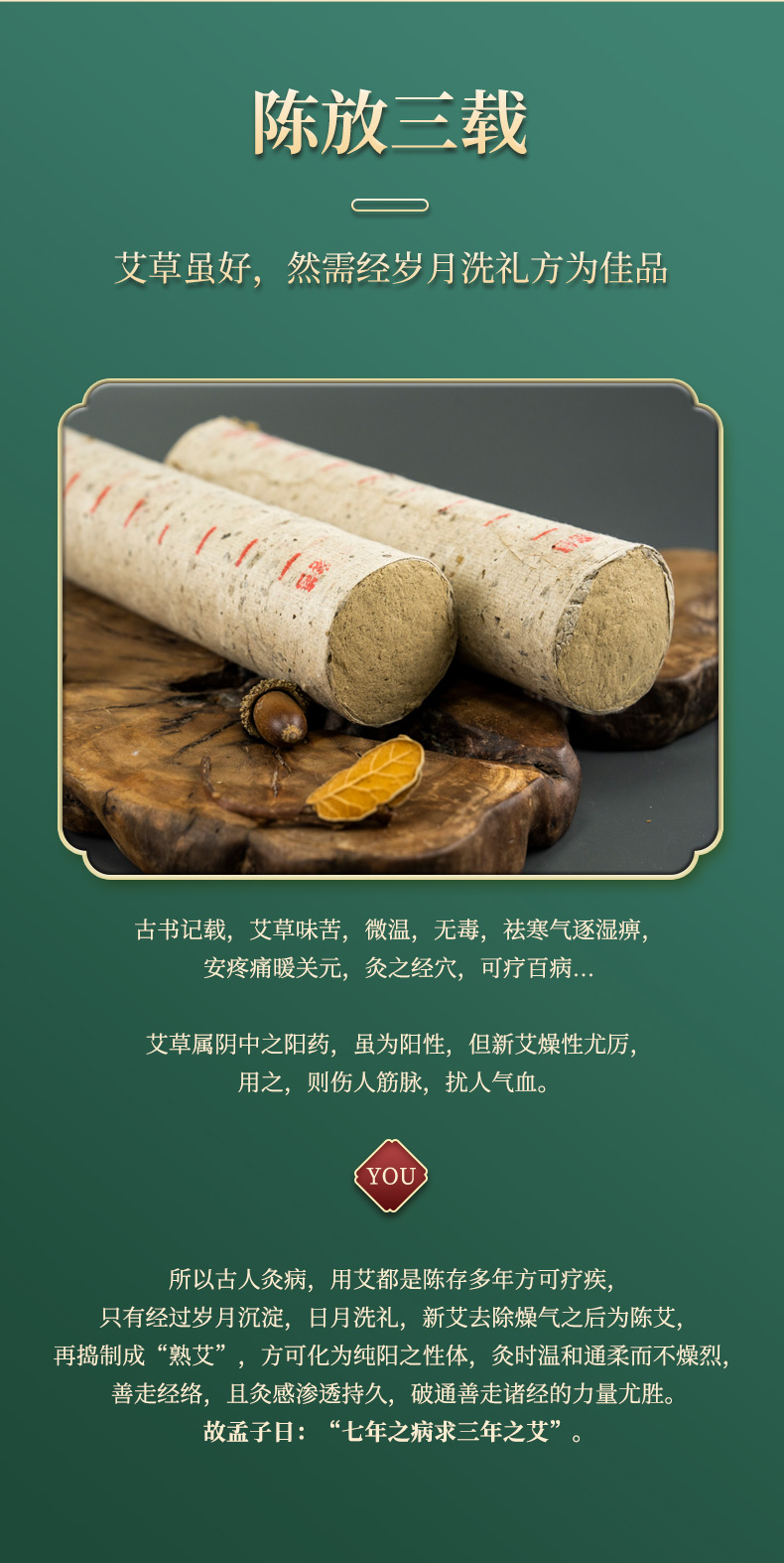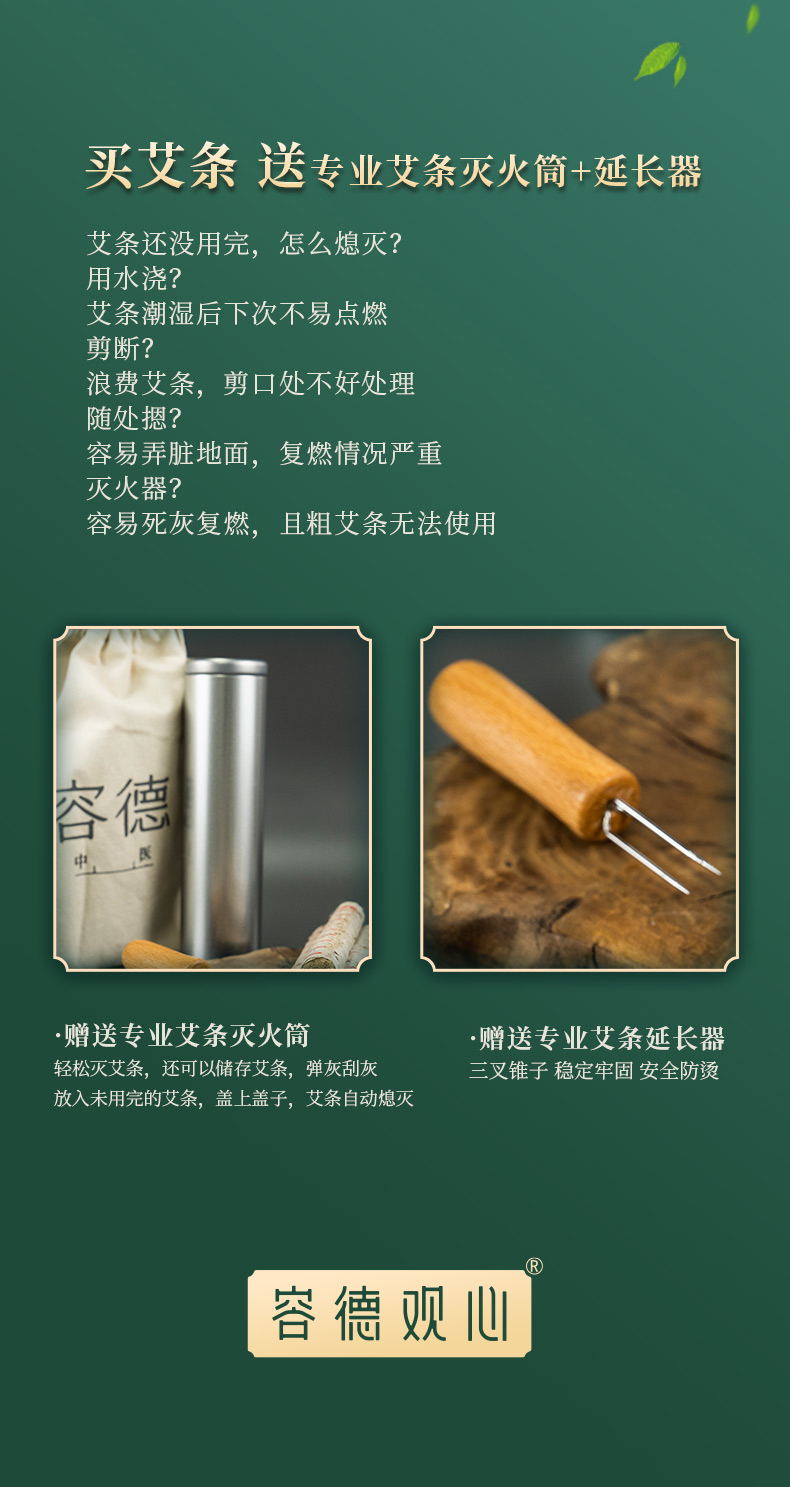 容德“有”艾条 陈放3年+艾条 纯艾叶石磨碾压 桑皮纸卷制 低温萃取 15斤纯艾叶提纯出1斤艾绒