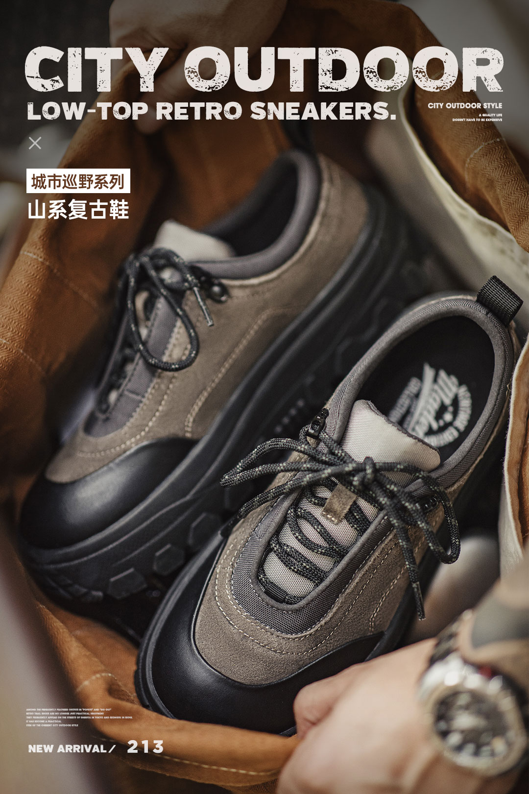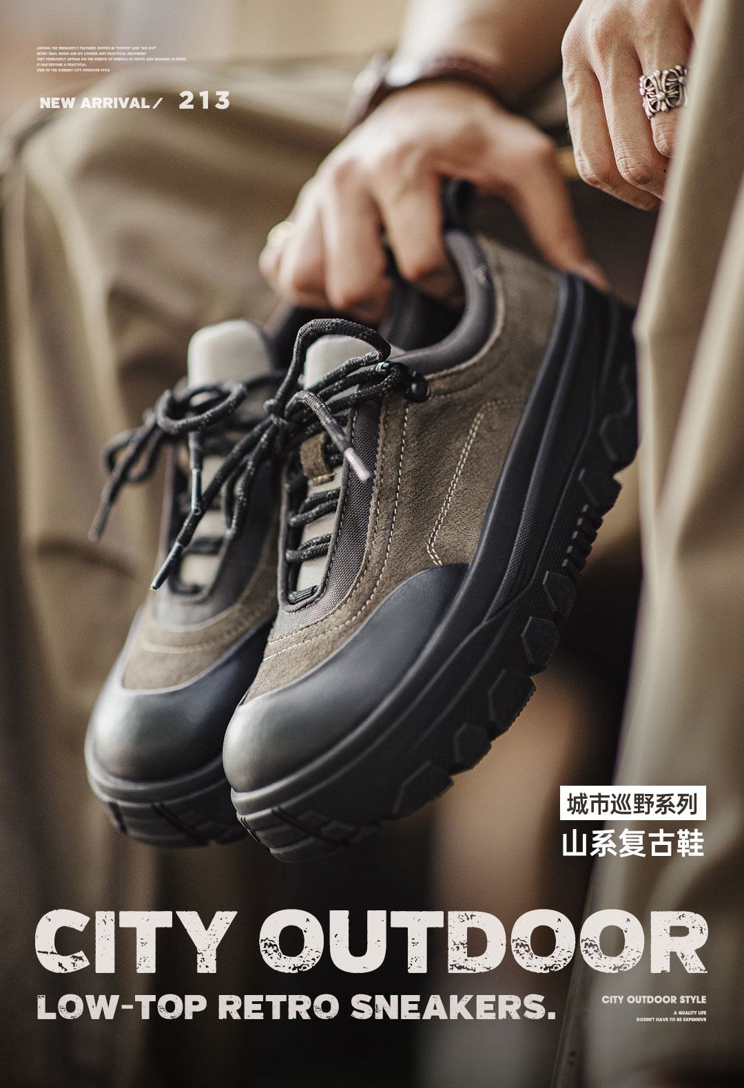 马登复古山系鞋冬季新款男士厚底百搭潮鞋增高软底小众运动休闲鞋