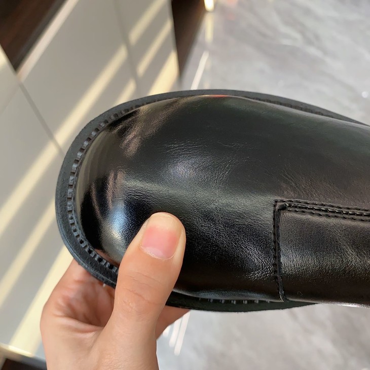 鞋面采用二层牛皮,鞋垫是猪皮,鞋底是橡胶。