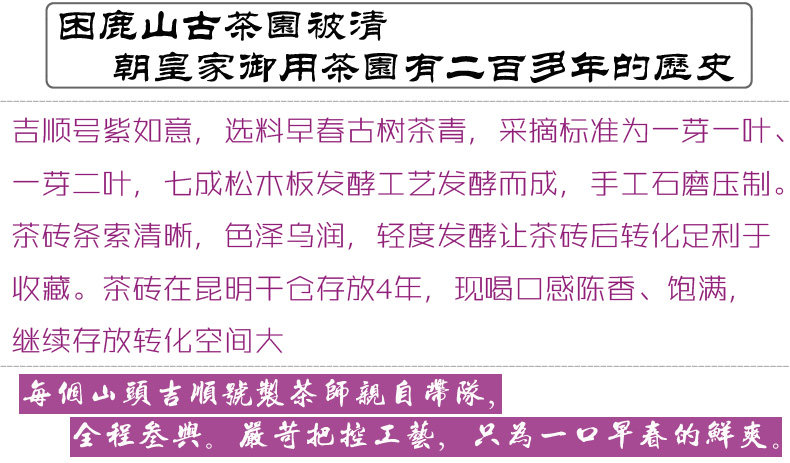 - 云南吉顺号茶业,专业云南普洱茶基地生产销售商。自有基地茶厂及运营仓储物流团队。
