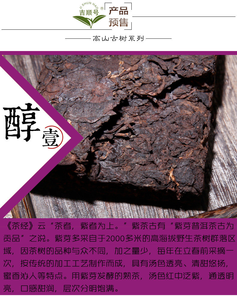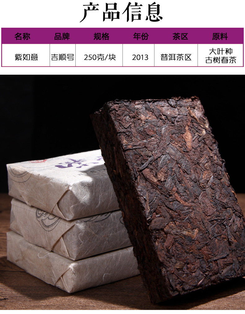吉顺号2013年普洱茶《紫如意》紫芽茶砖250g/砖