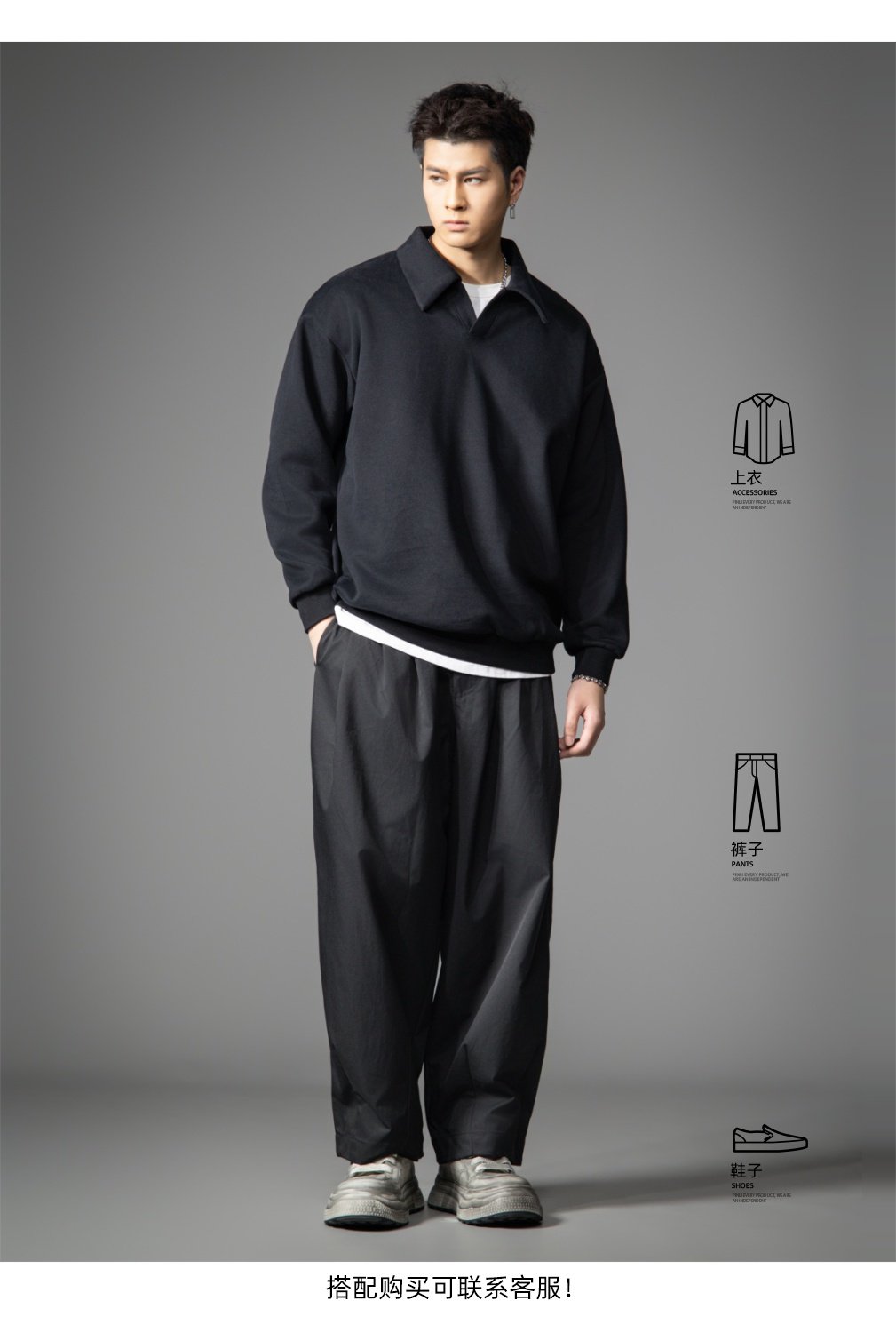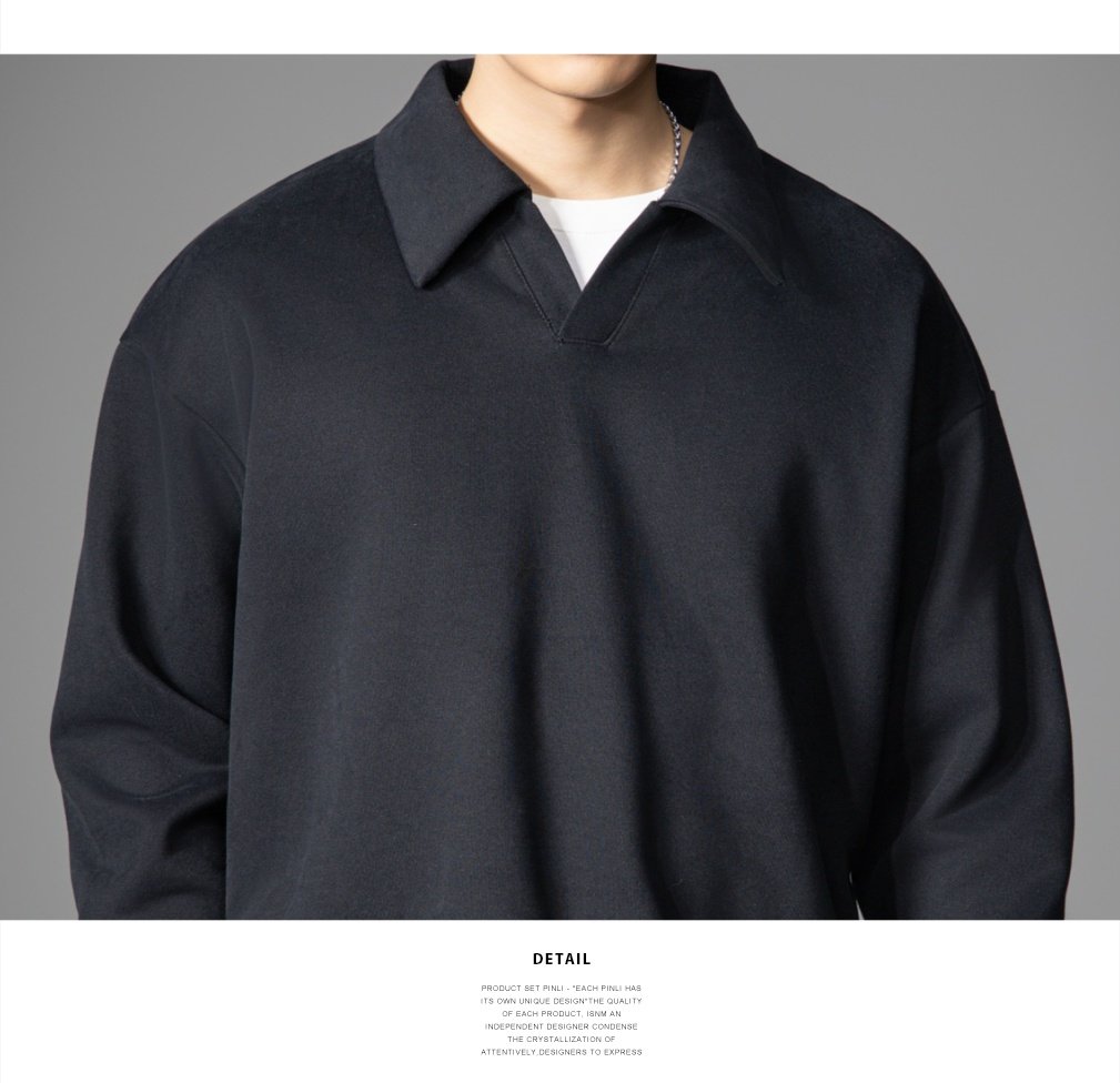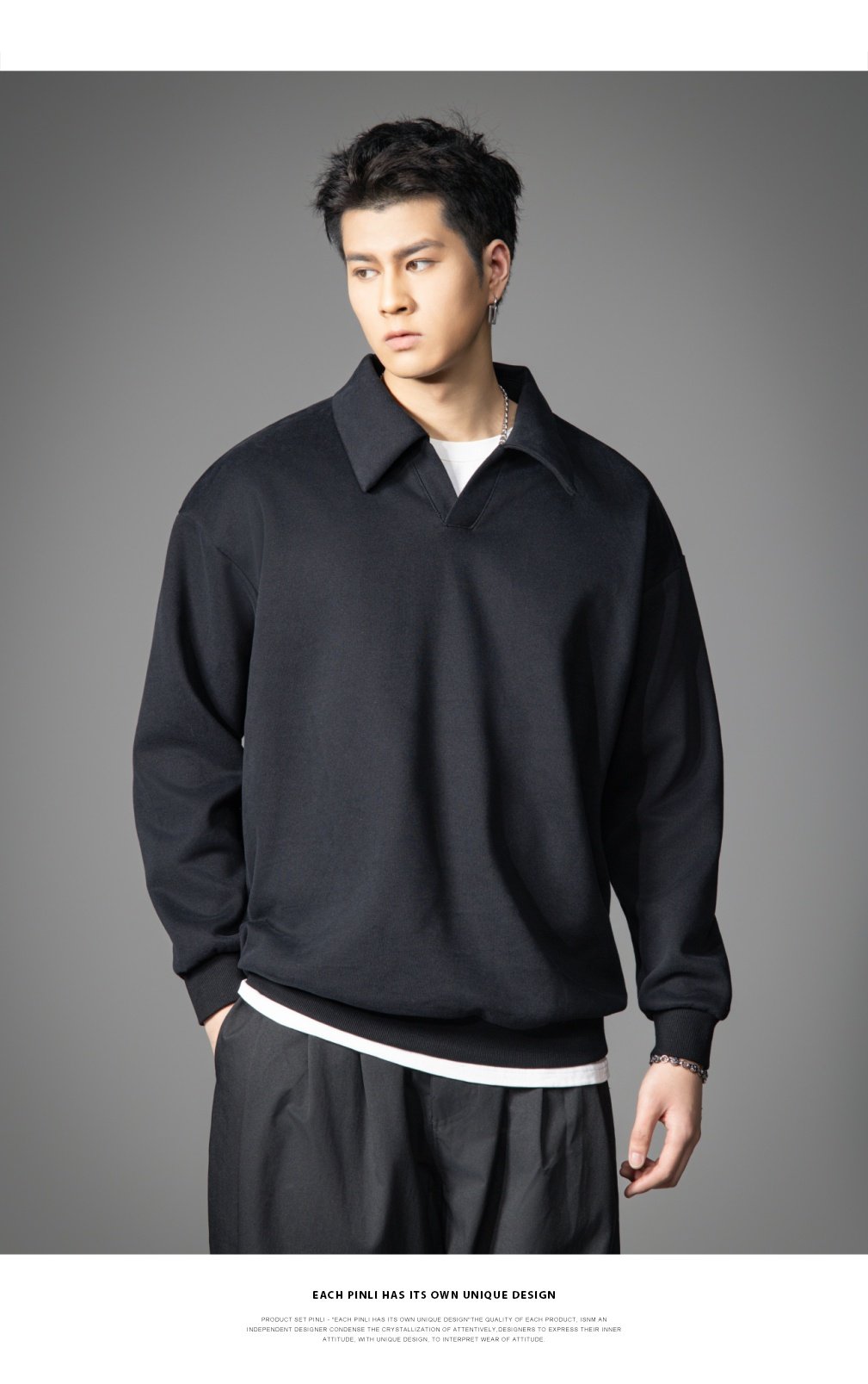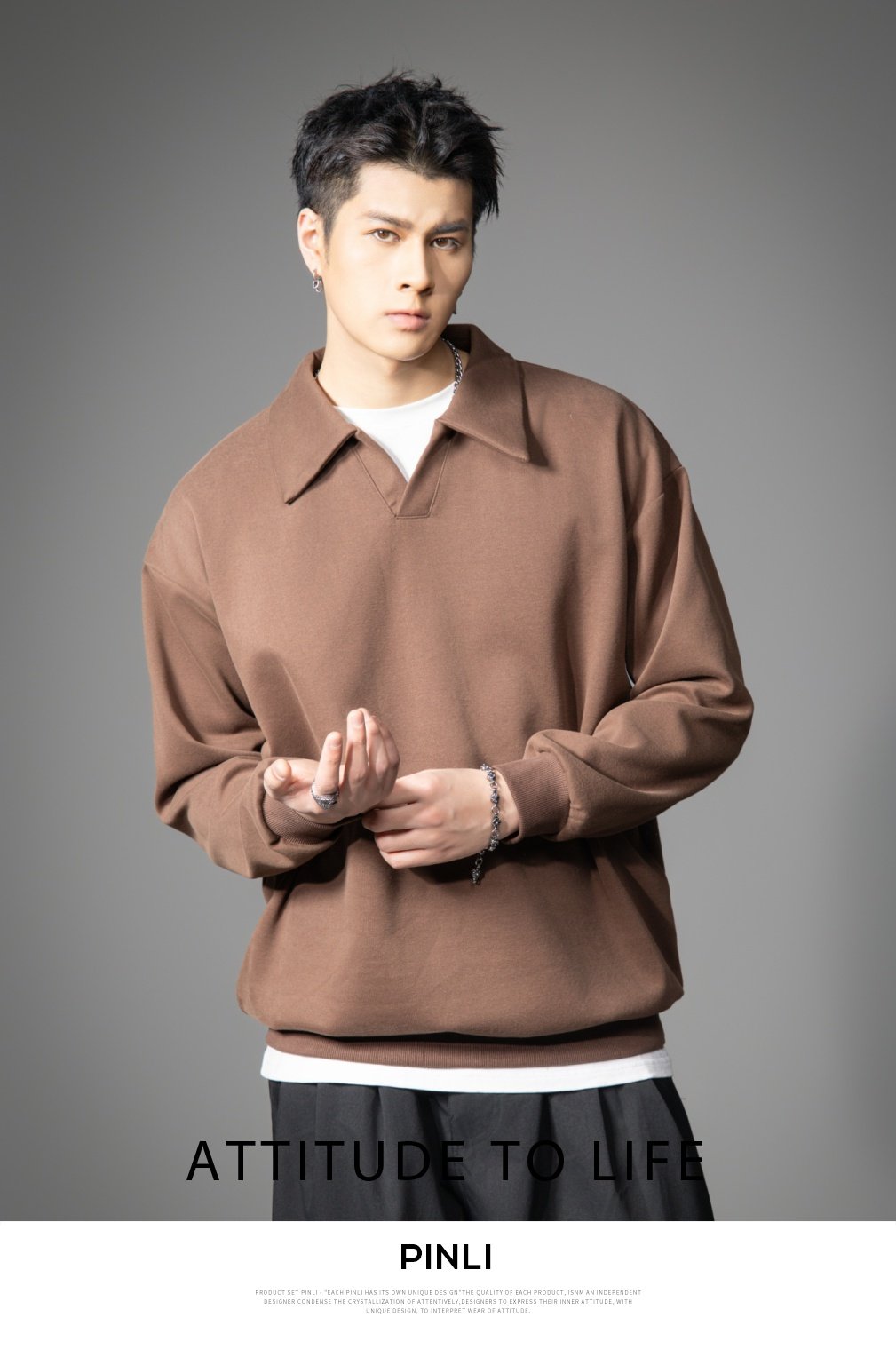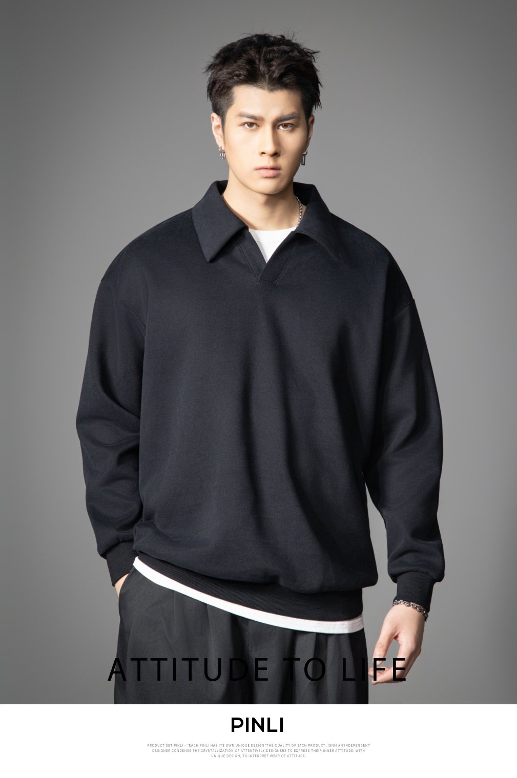 PINLI品立2026春季新款男士宽松翻领纯色落肩袖套头卫衣上衣潮牌B262109003