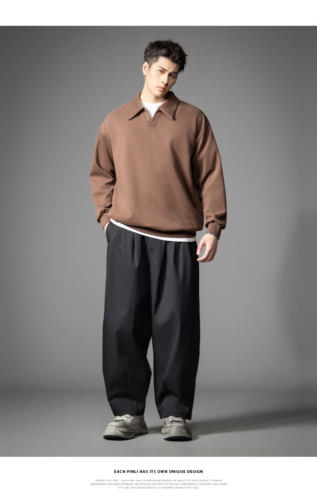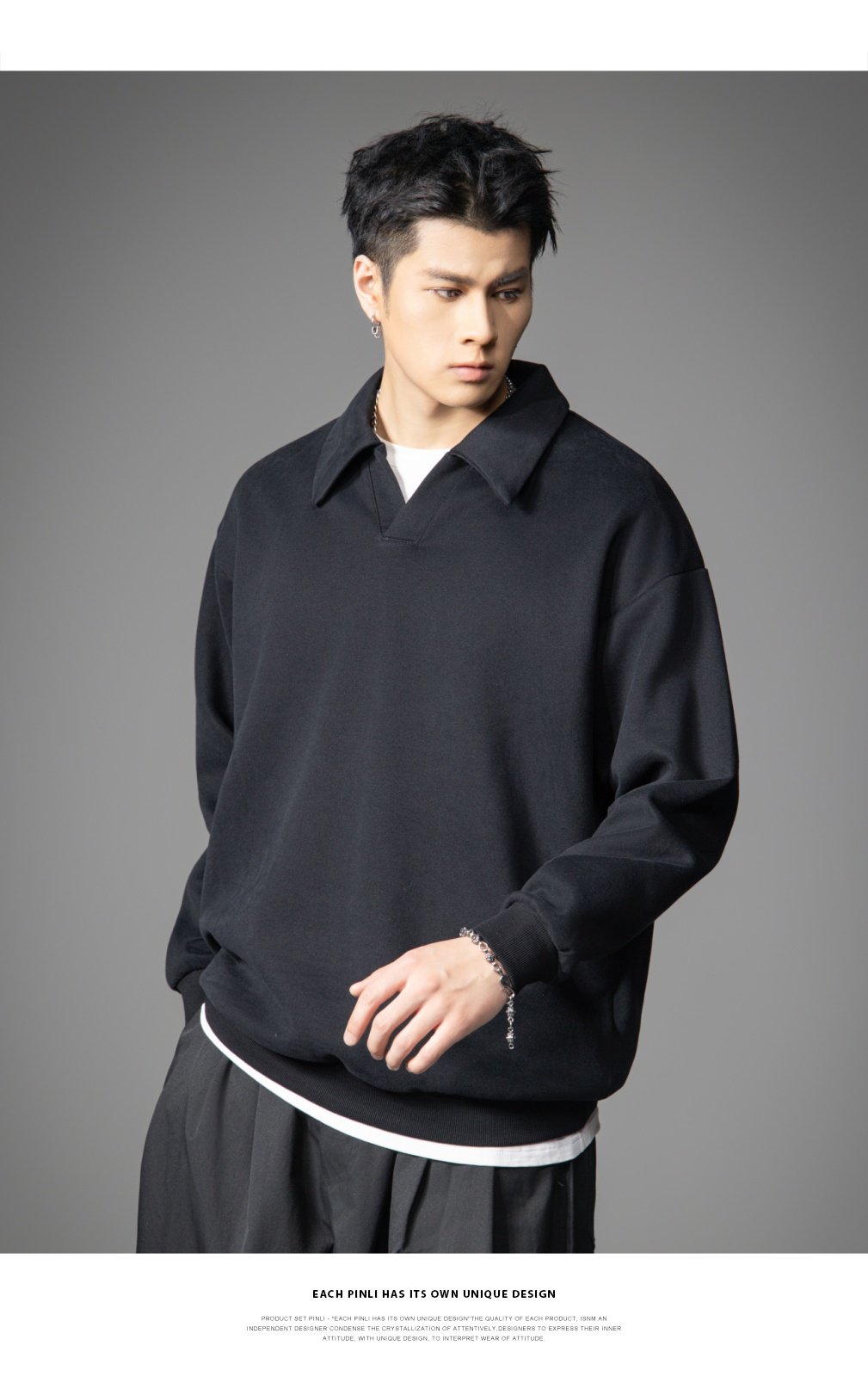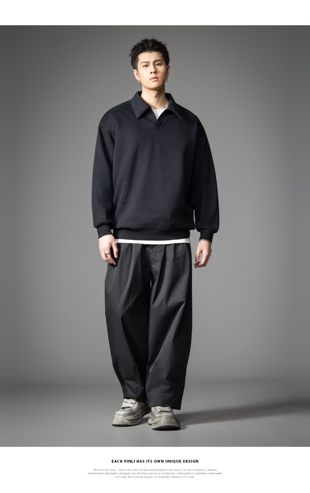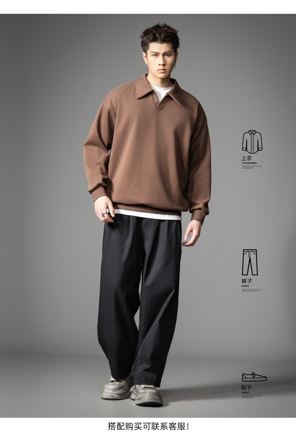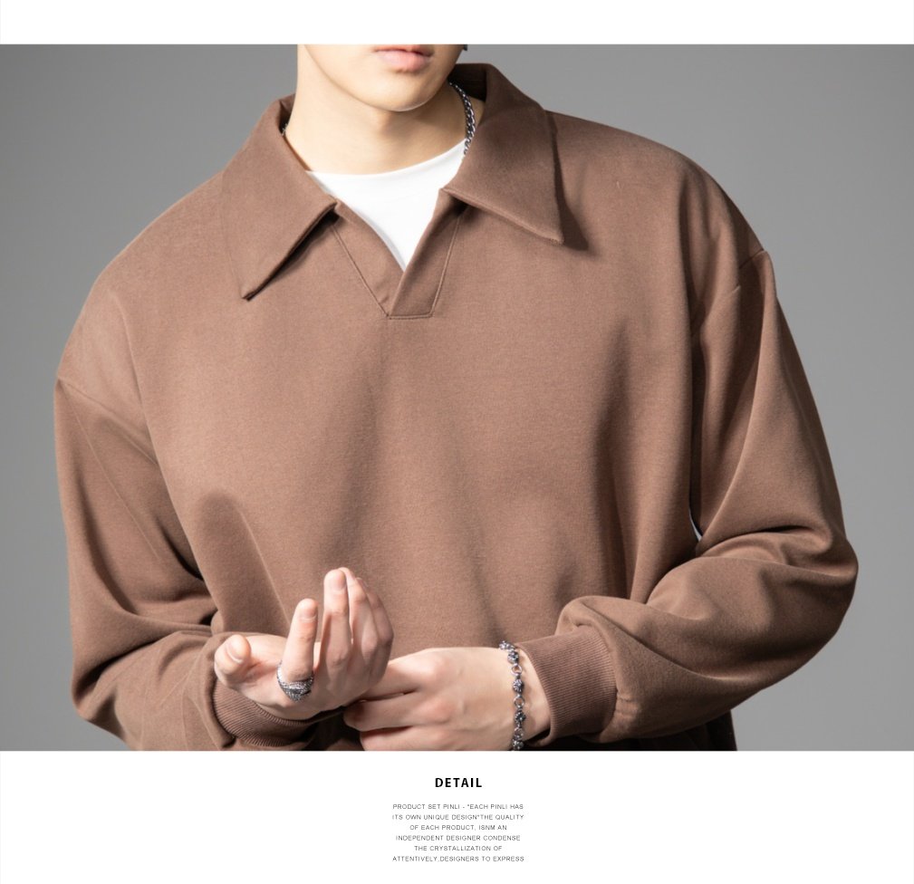 PINLI品立2026春季新款男士宽松翻领纯色落肩袖套头卫衣上衣潮牌B262109003