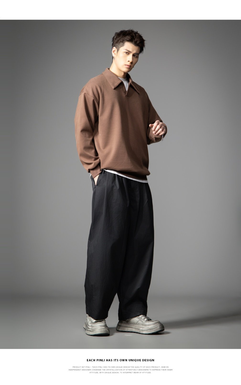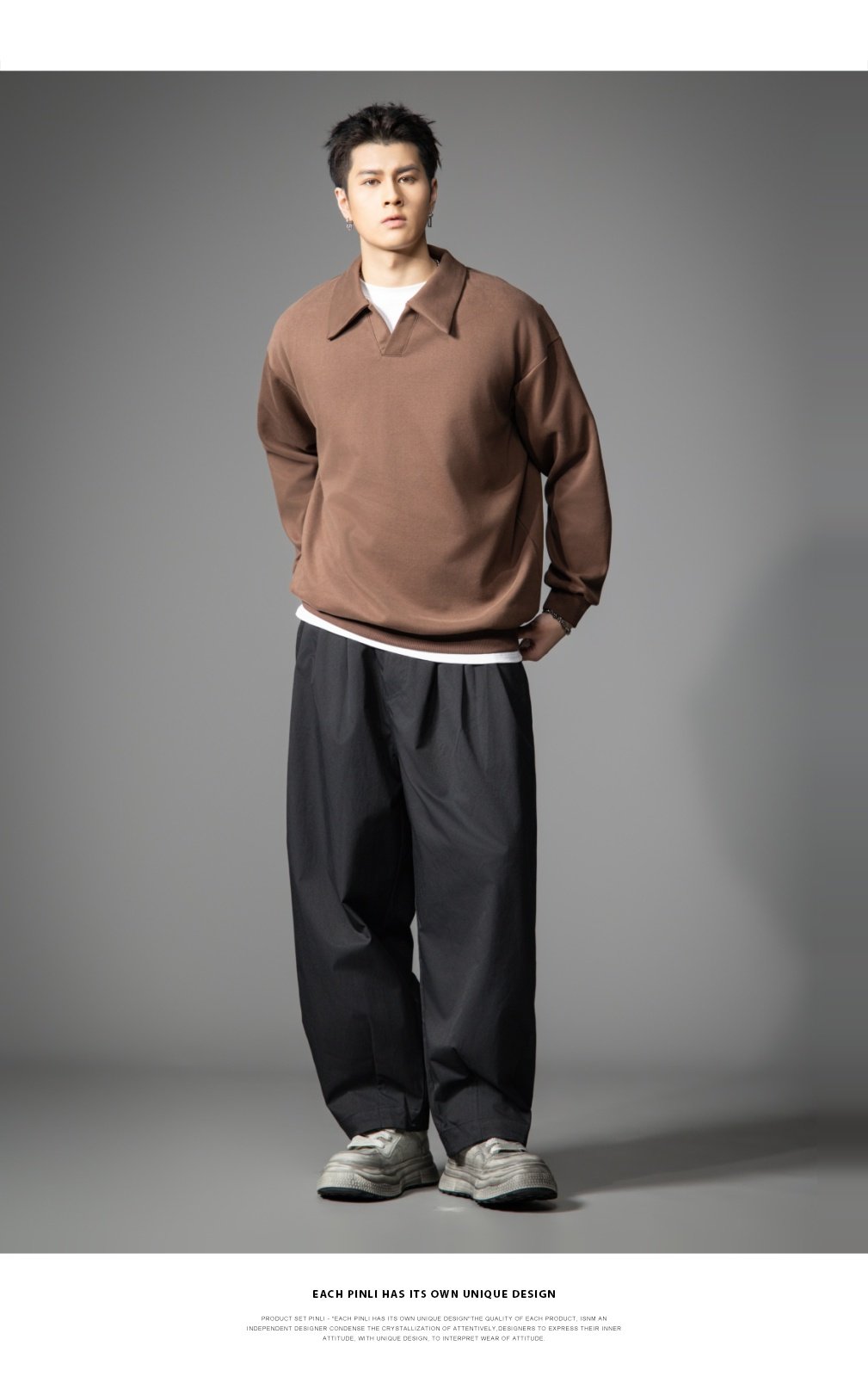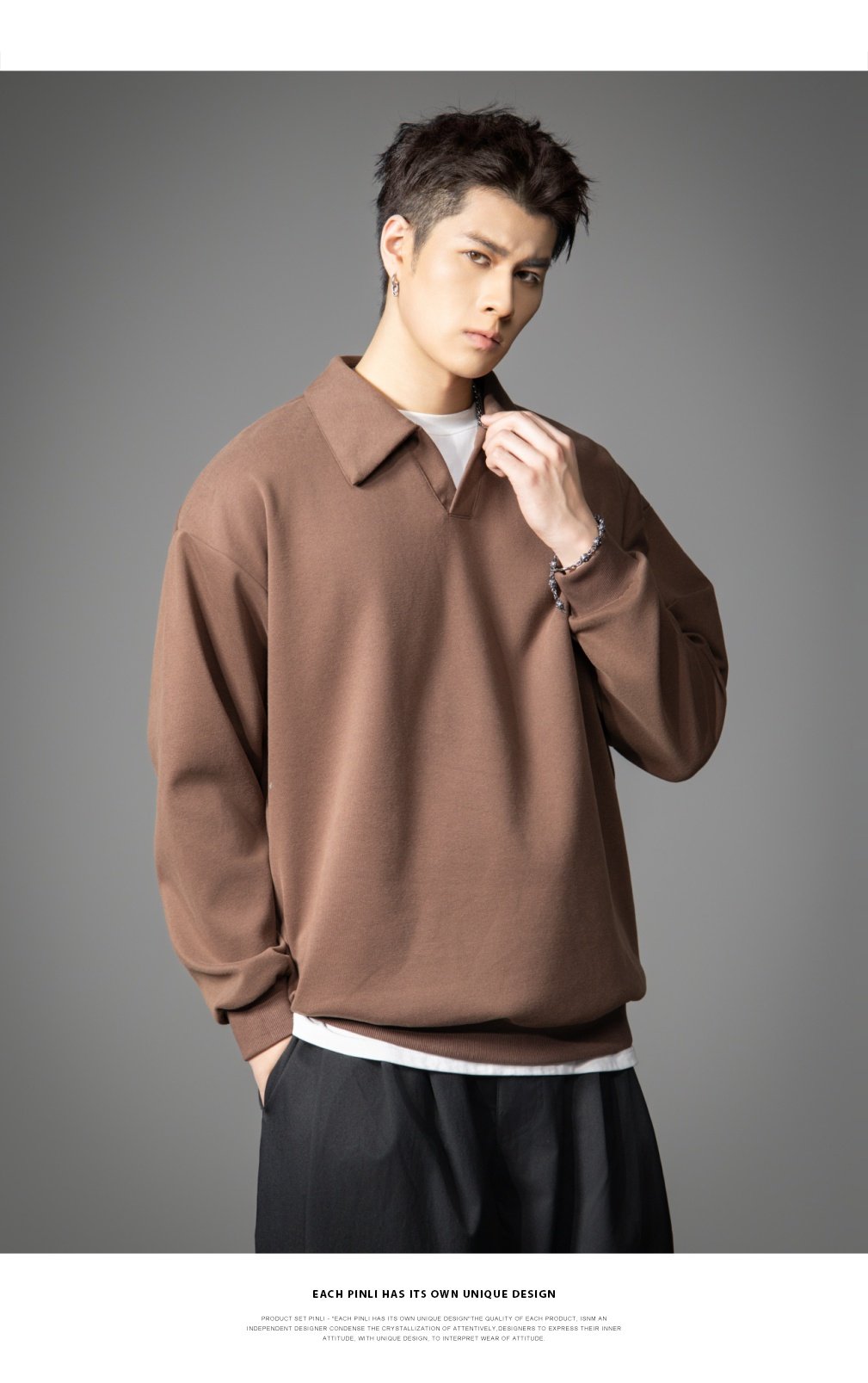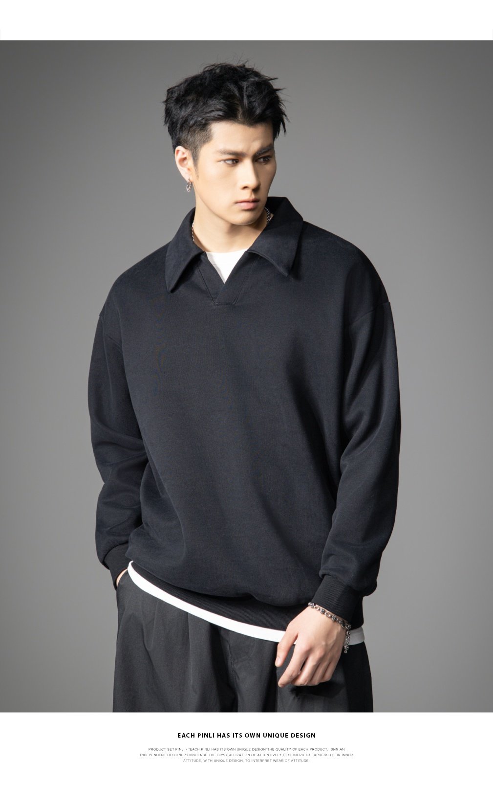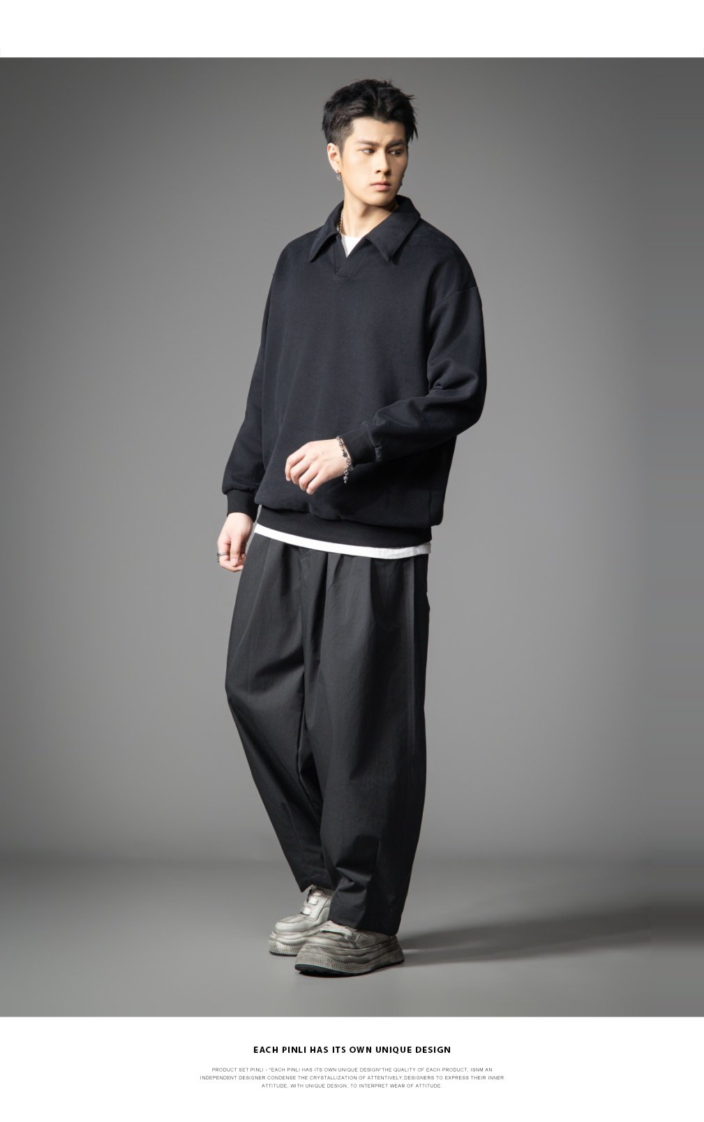 PINLI品立2026春季新款男士宽松翻领纯色落肩袖套头卫衣上衣潮牌B262109003