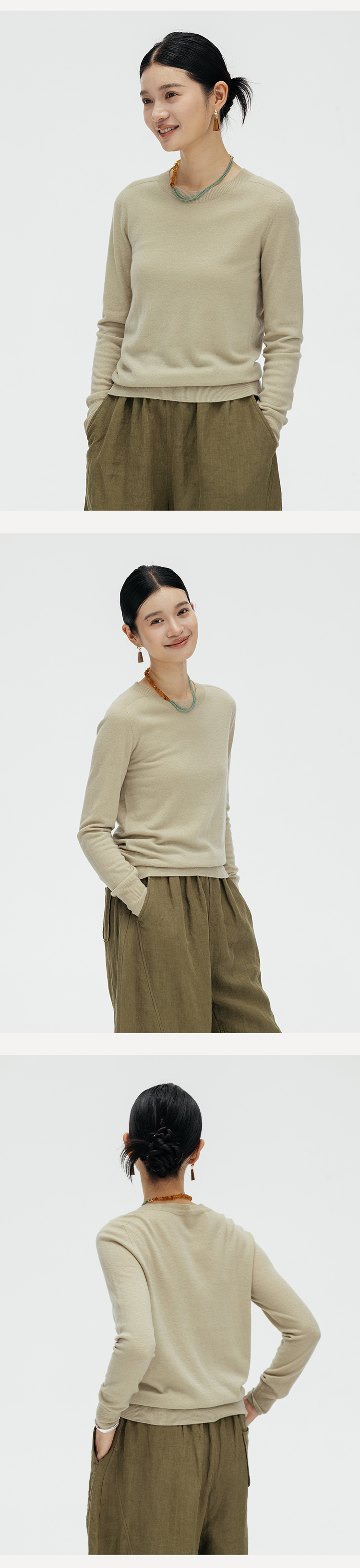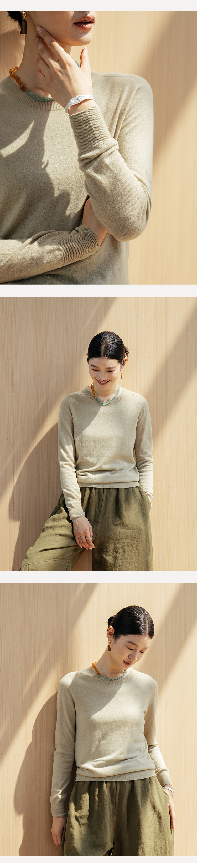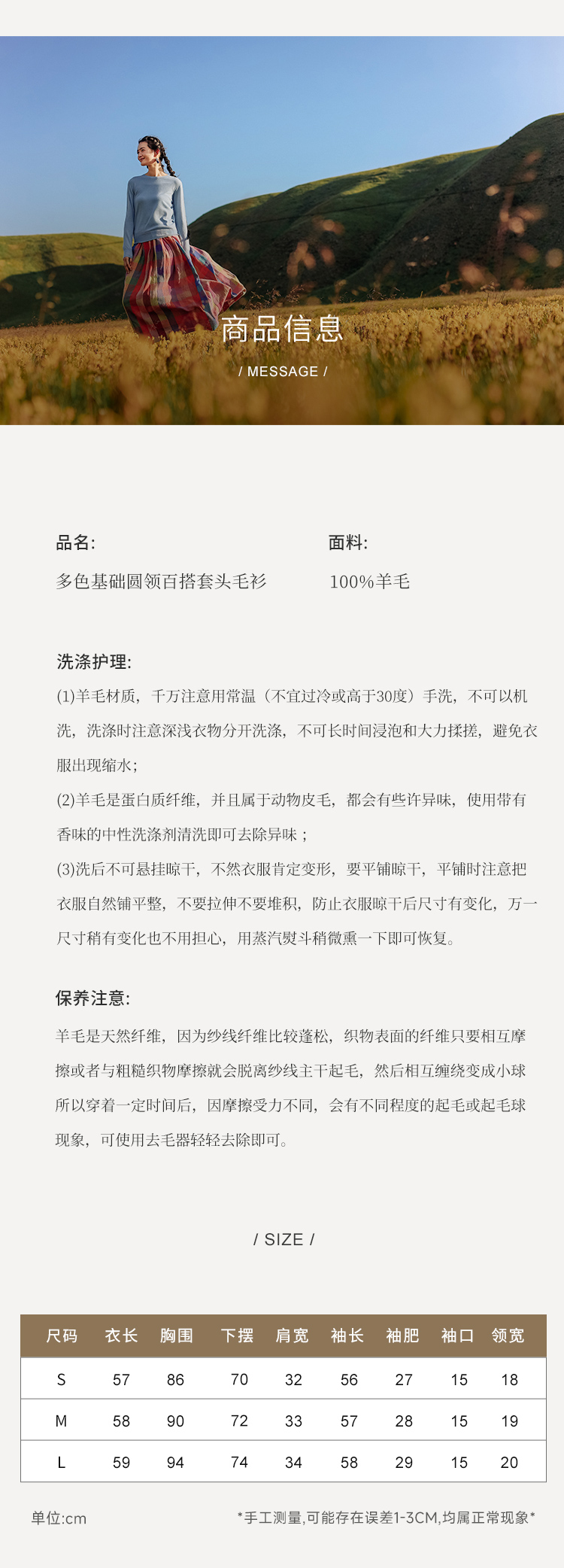 绽放699朵/贴心打底衫*半精纺羊毛针织套头毛衣圆领轻薄毛衫