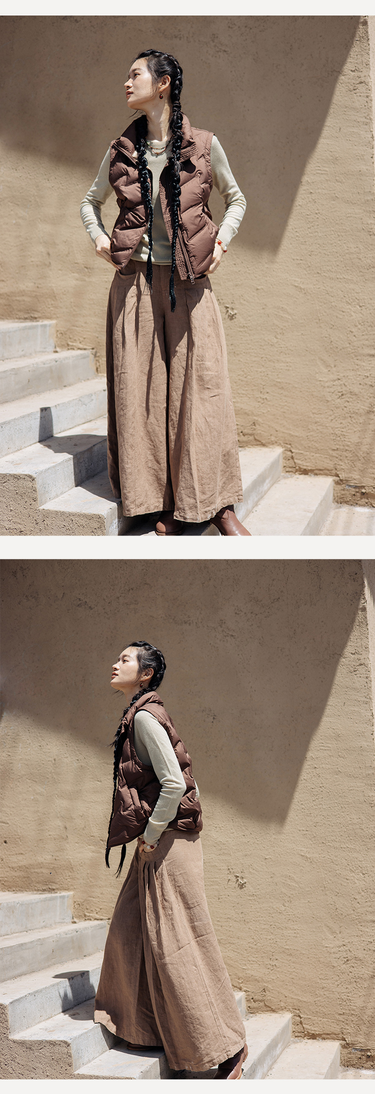 以天然亚麻为载体,融合热烈色彩与自在剪裁为身在城市、心怀远方的女性提供兼具美学与舒适的旅行着装