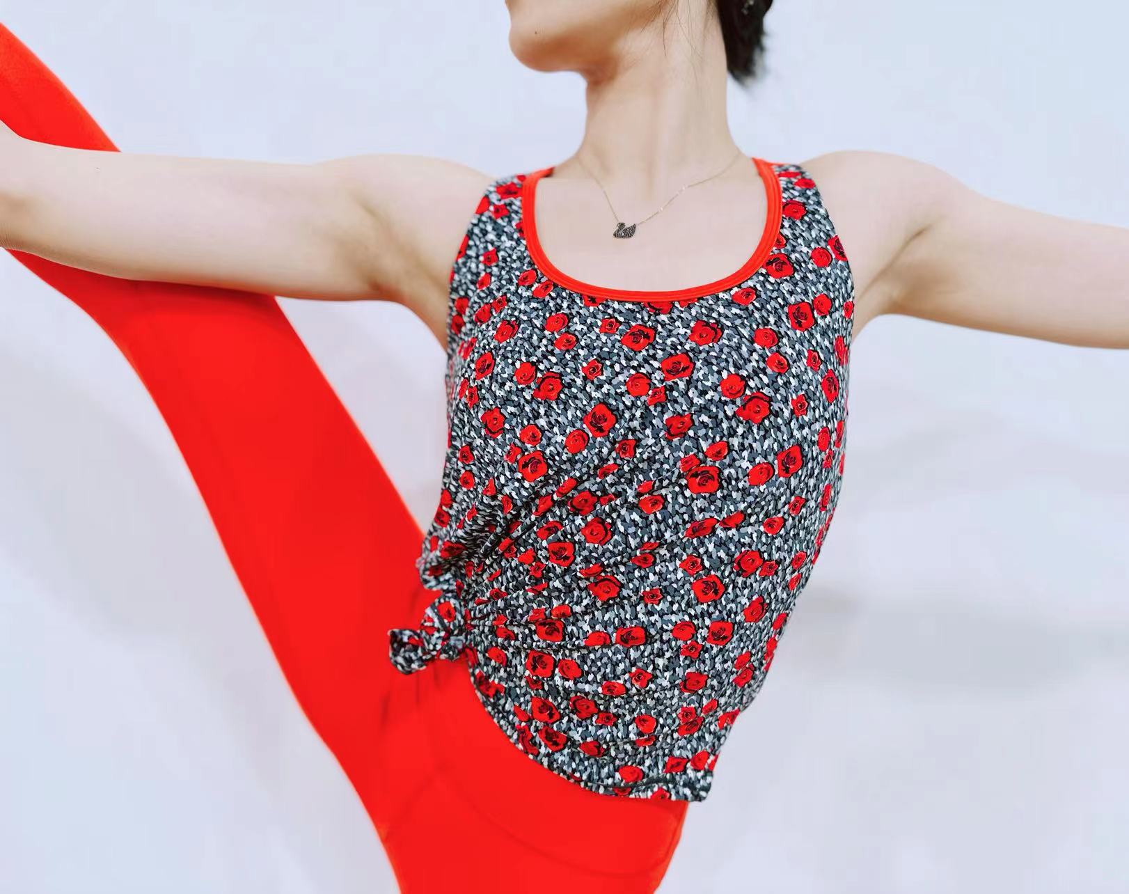 爆款好货 新年经典款 假两件背心 镂空美背罩衫-小红玫瑰