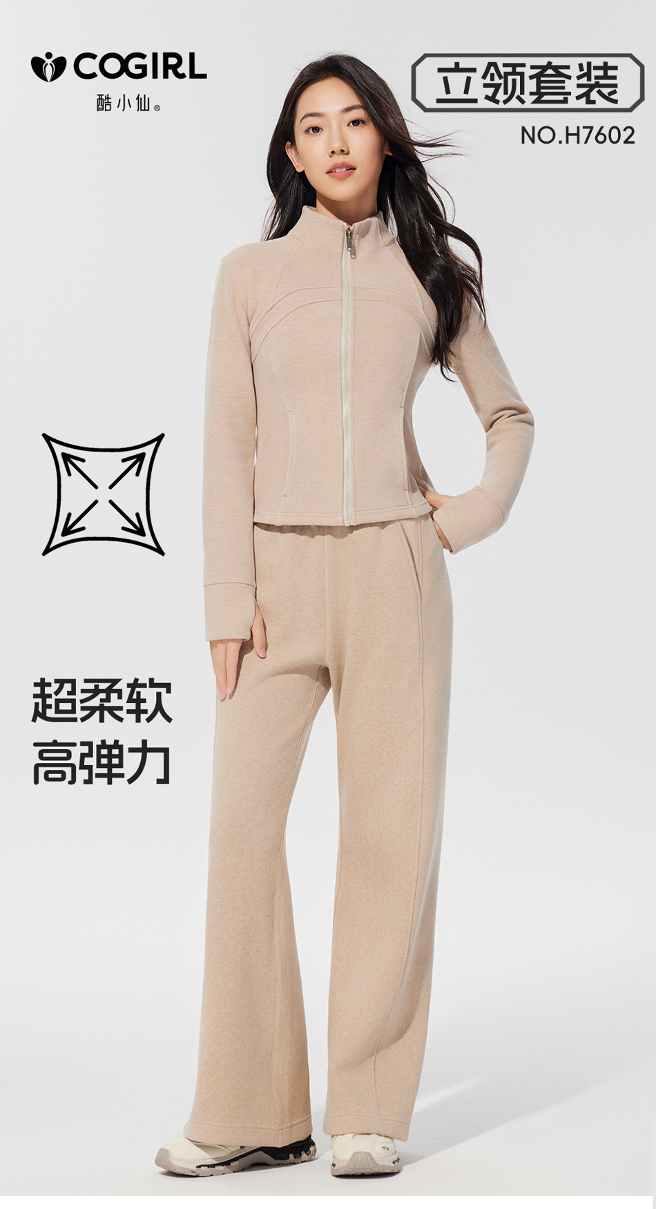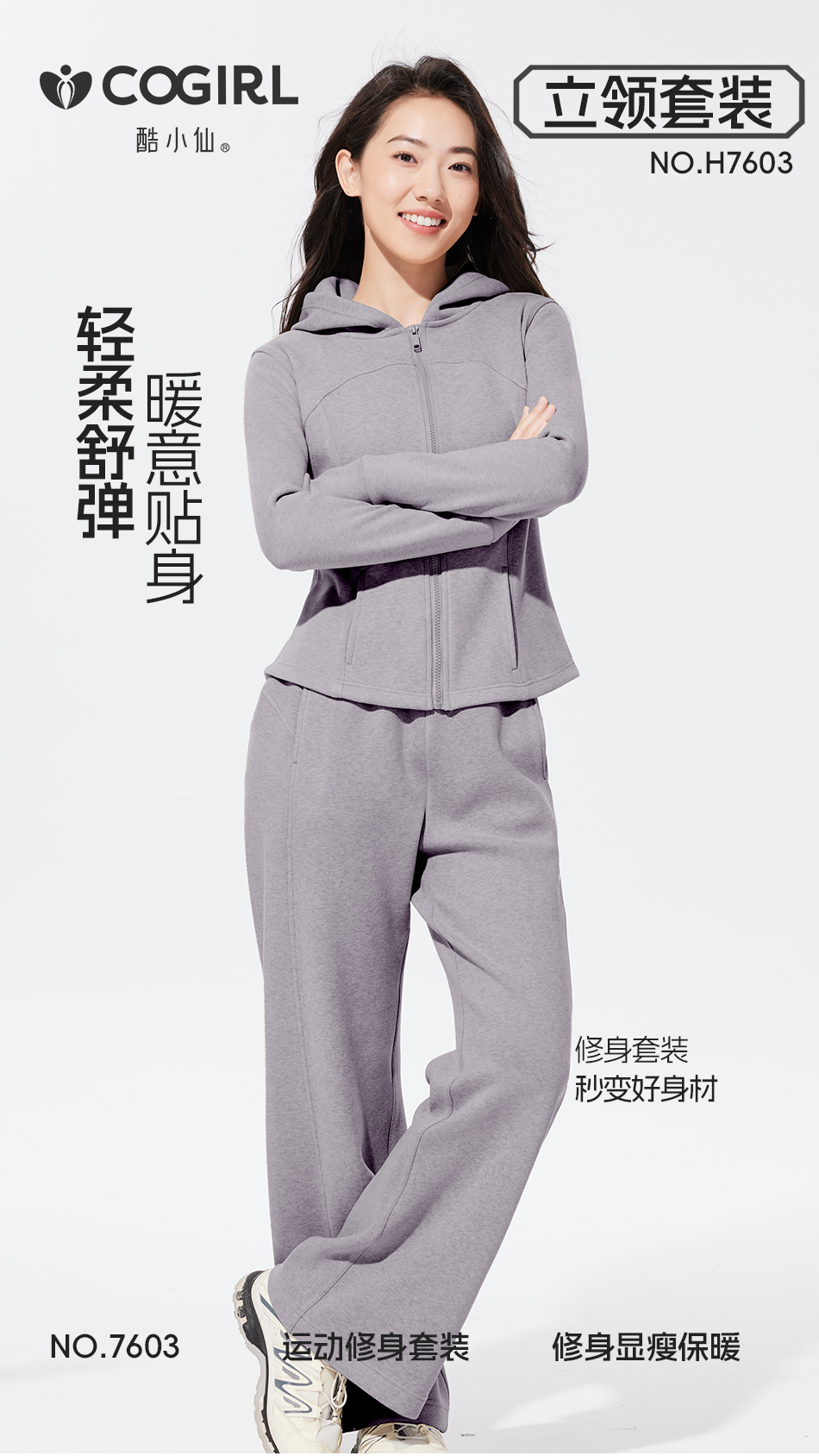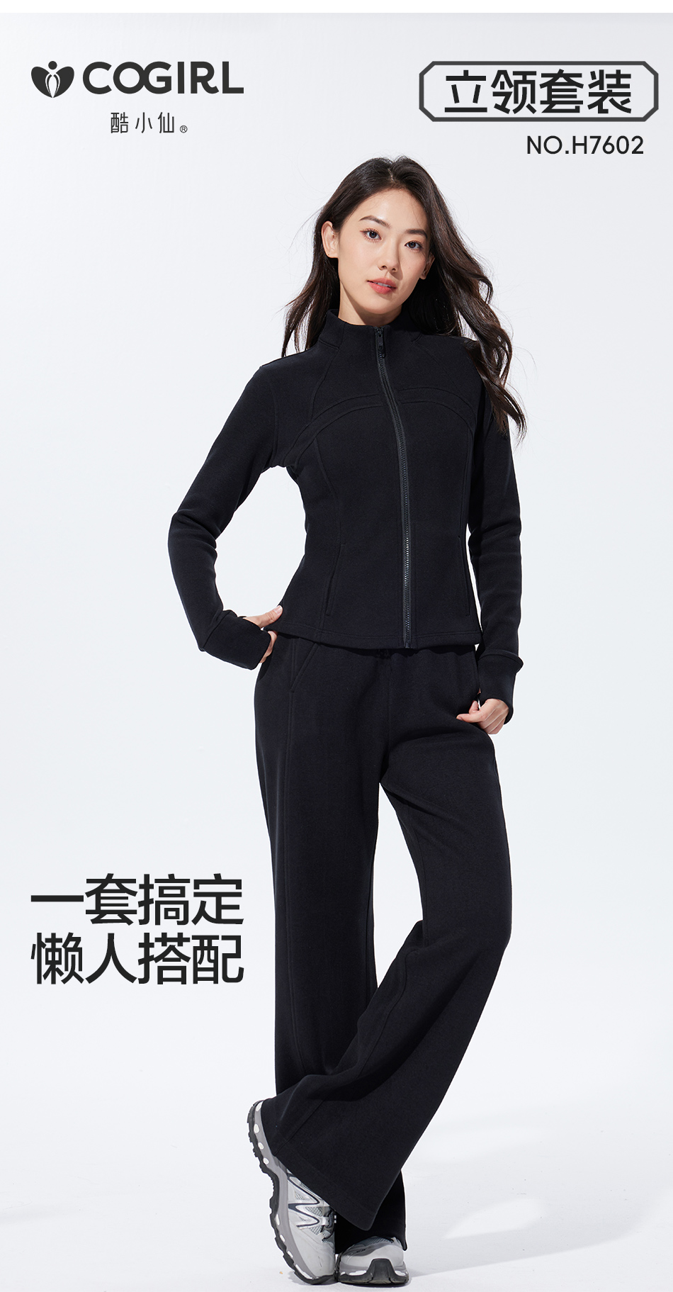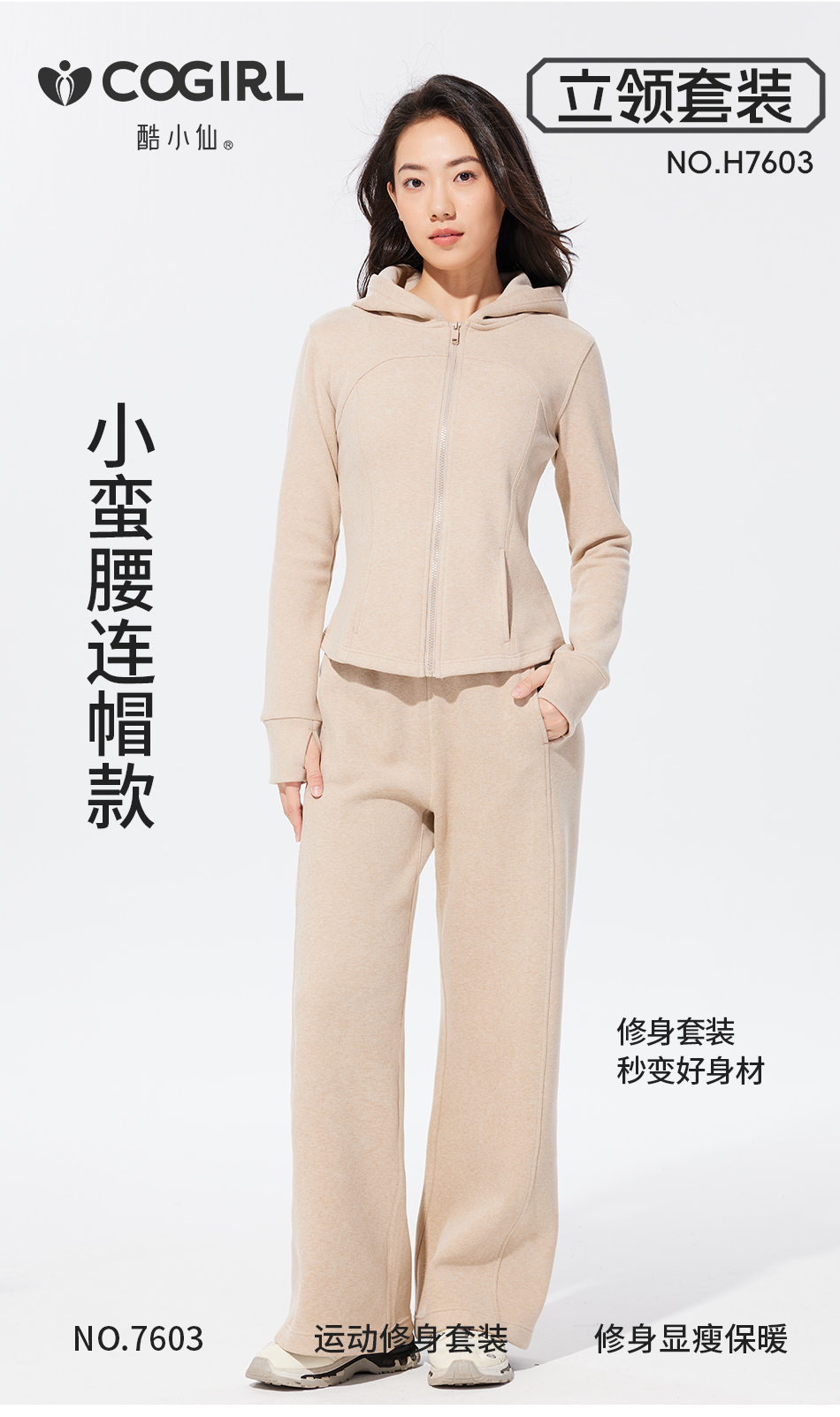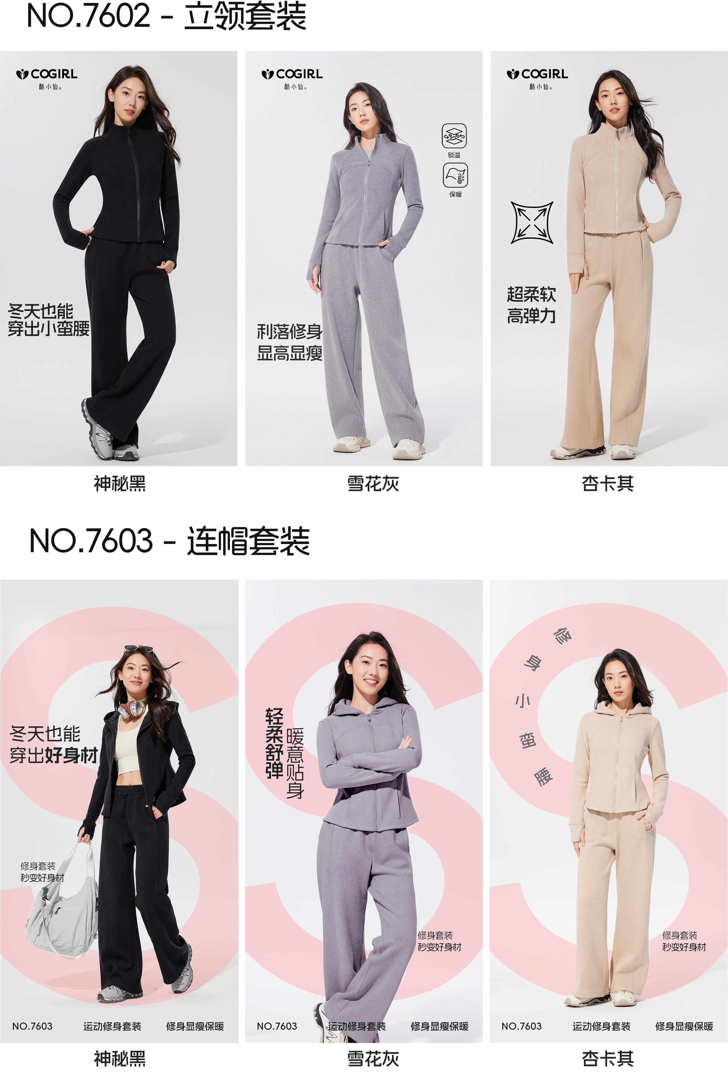 酷小仙 女士修身帽衫套装Y7603/立领套装Y7602 柔软显瘦 亲肤舒适 3色可选