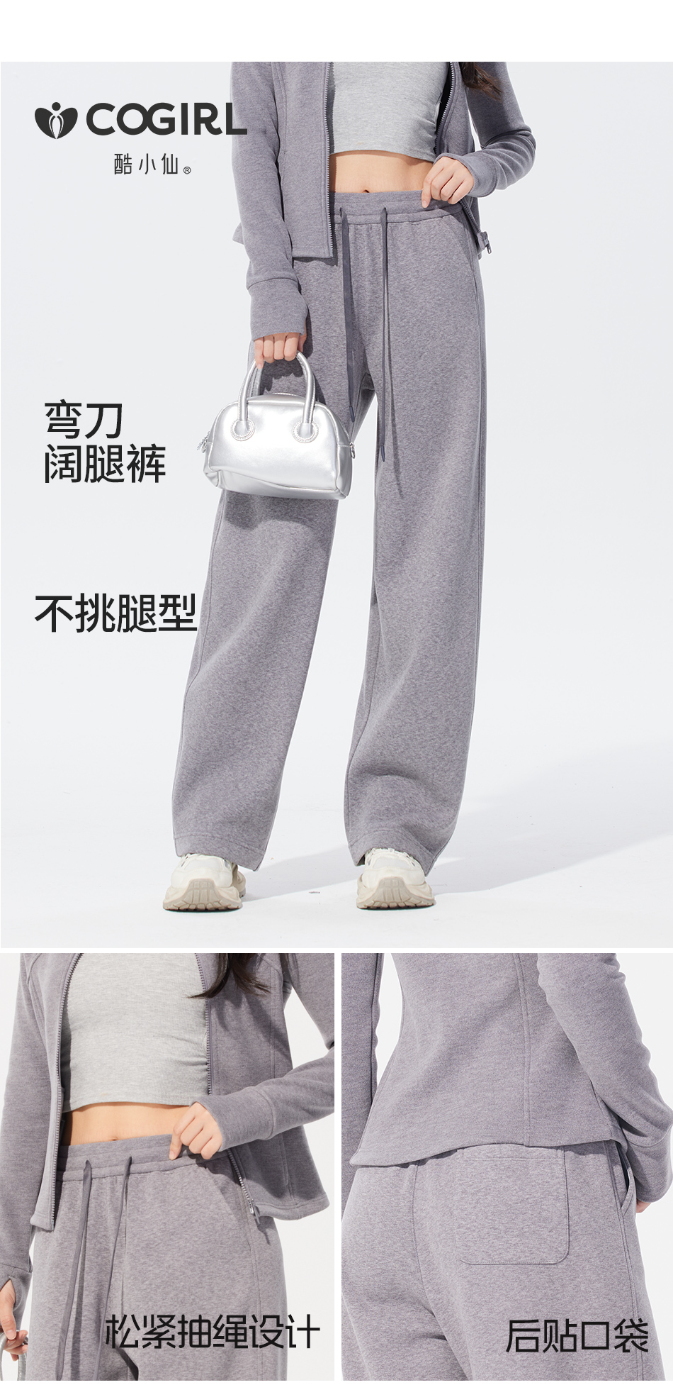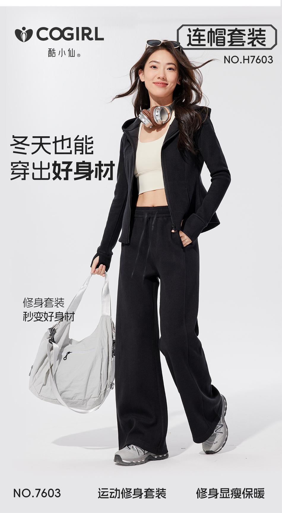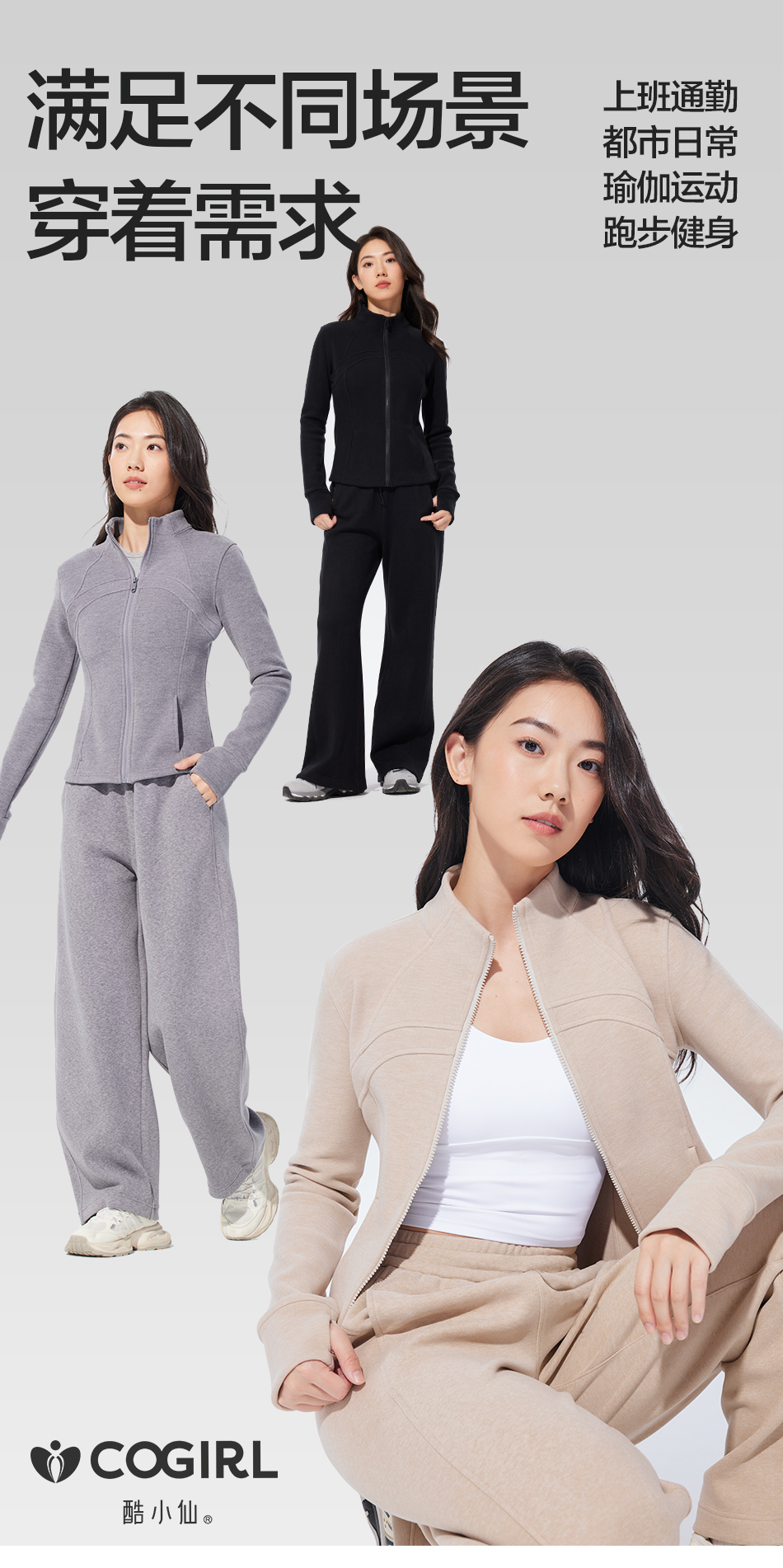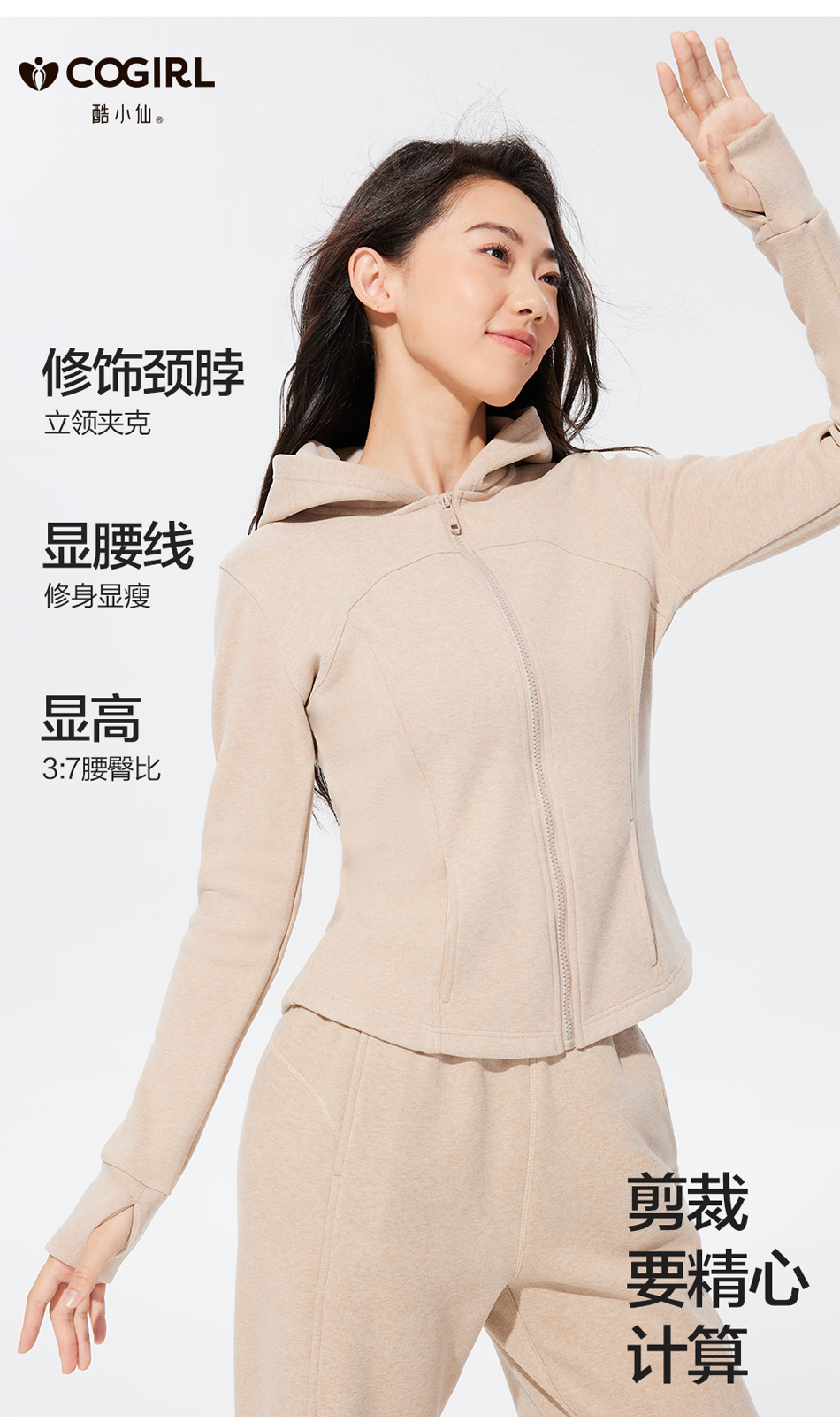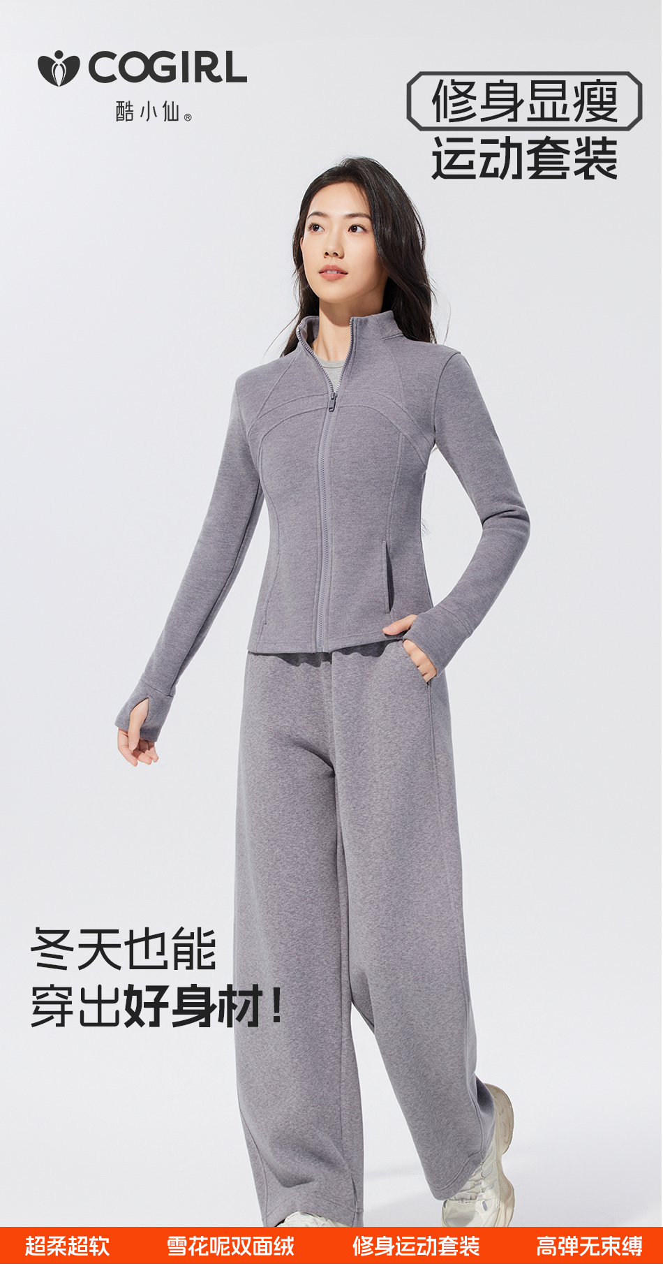 酷小仙 女士修身帽衫套装Y7603/立领套装Y7602 柔软显瘦 亲肤舒适 3色可选