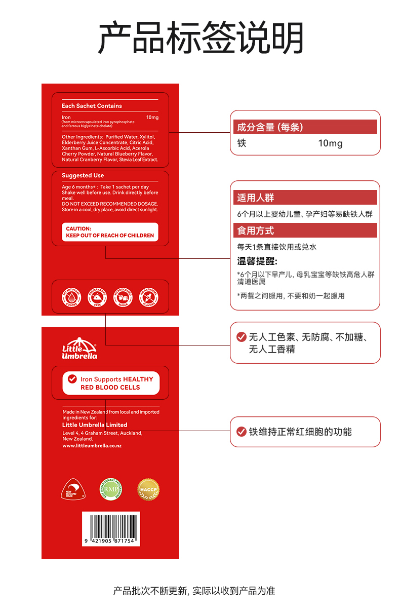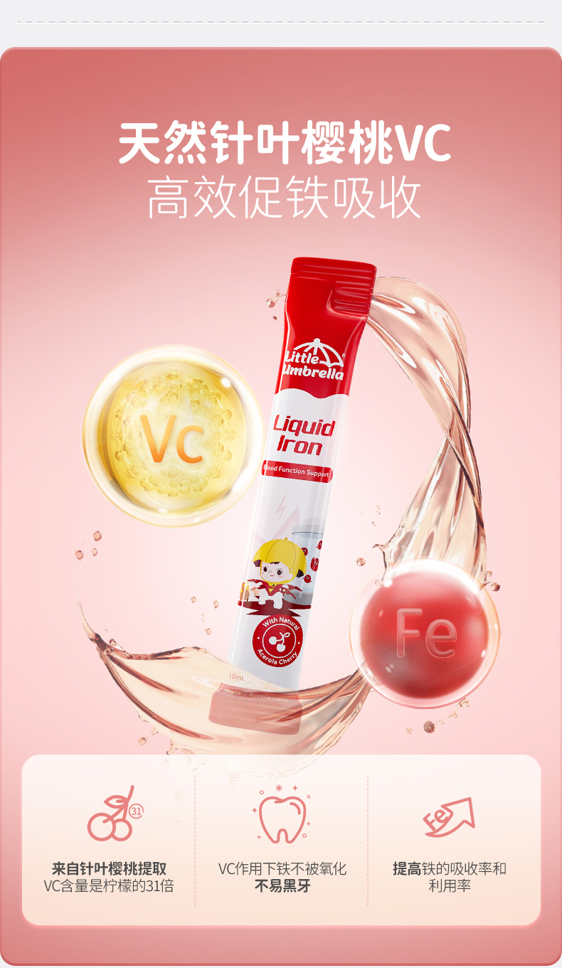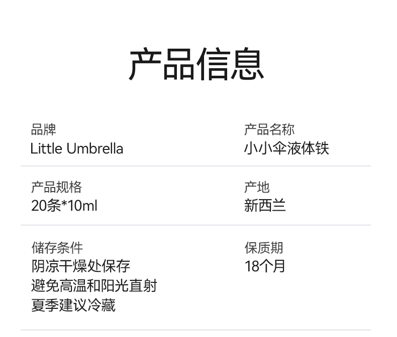 【保税仓】新西兰Little Umbrella小小伞儿童液体铁10ml*20条/盒