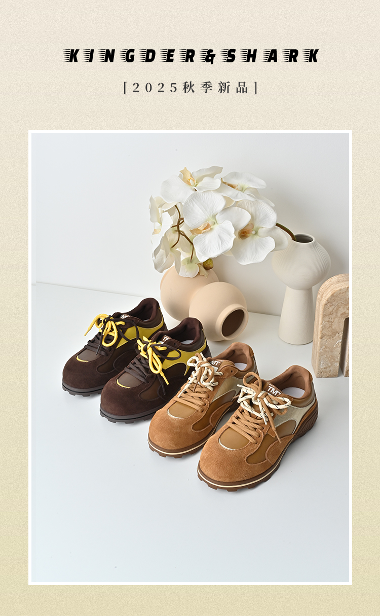 经典鲨2025年秋季专柜新款牛皮革时尚拼色系带平底德训鞋女KW132-537011