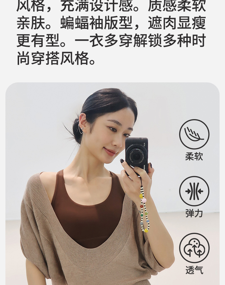 美愫中长款瑜伽罩衫宽松修身普拉提女运动弹力遮臀蝙蝠袖春秋上衣