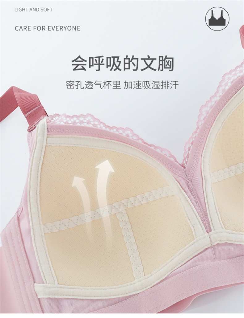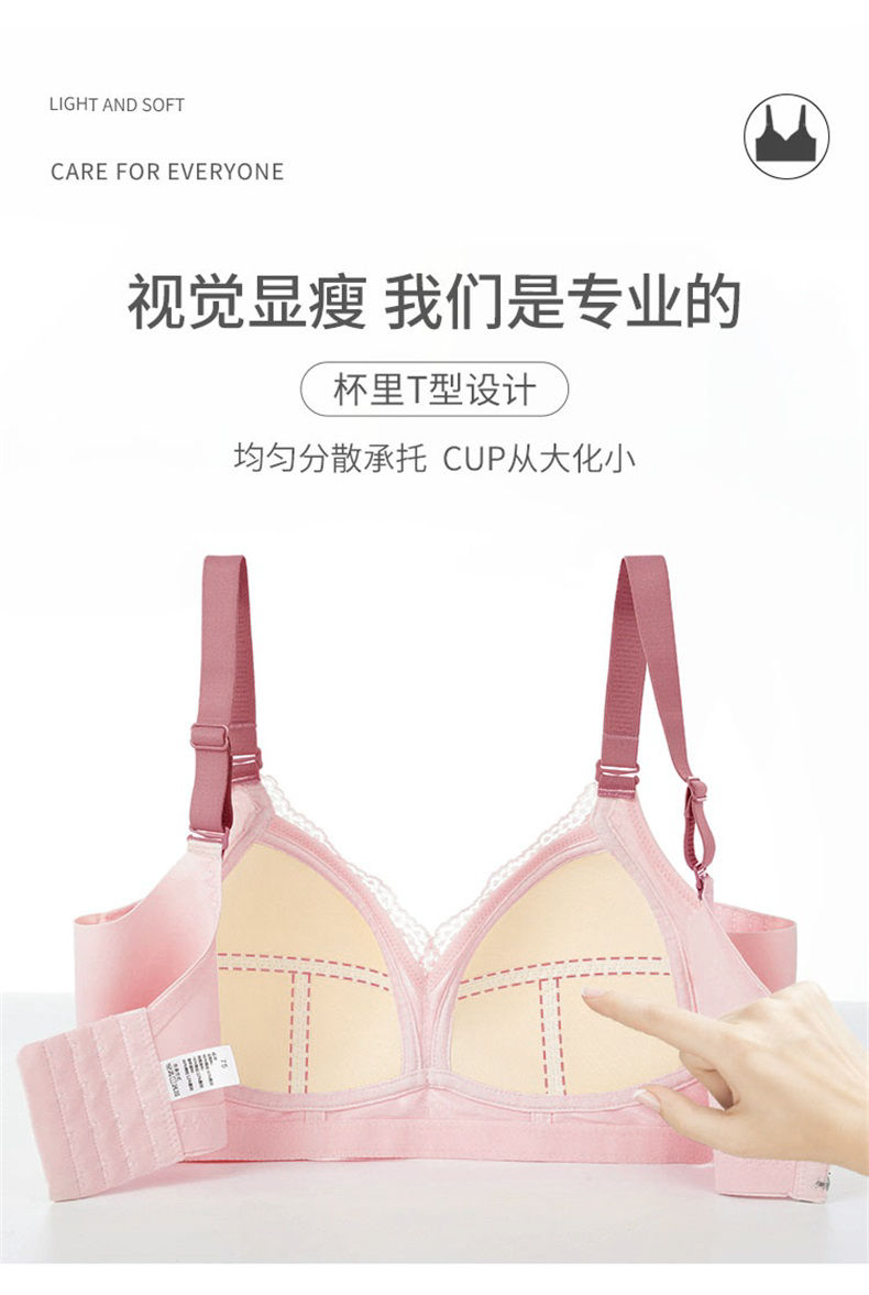 雅黛丽内衣大胸显小夏季薄款文胸无钢圈防下垂大码调整型美背胸罩