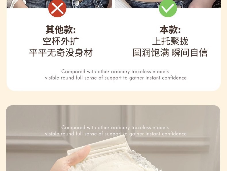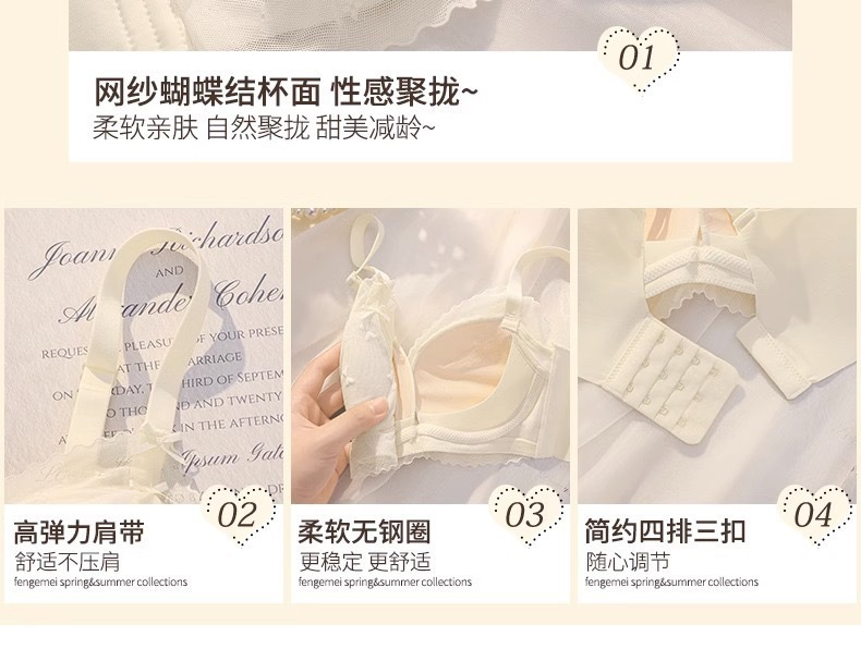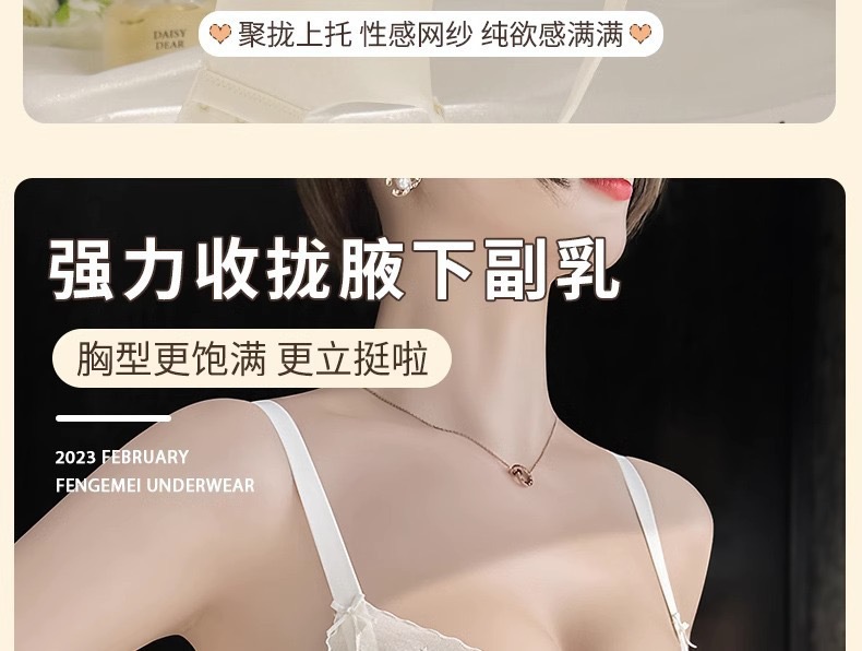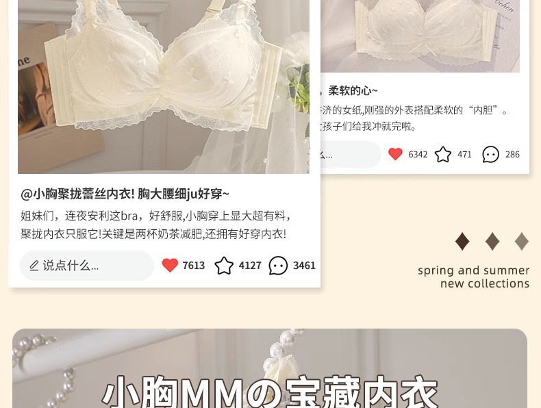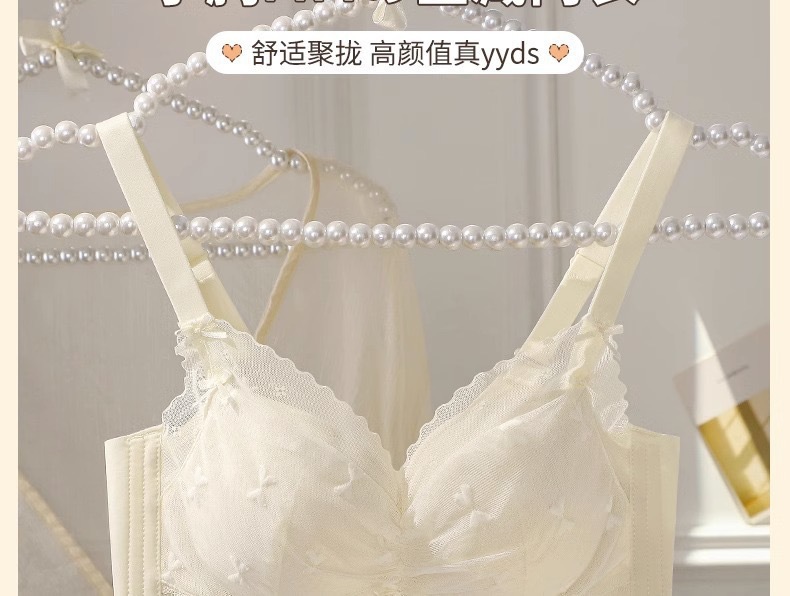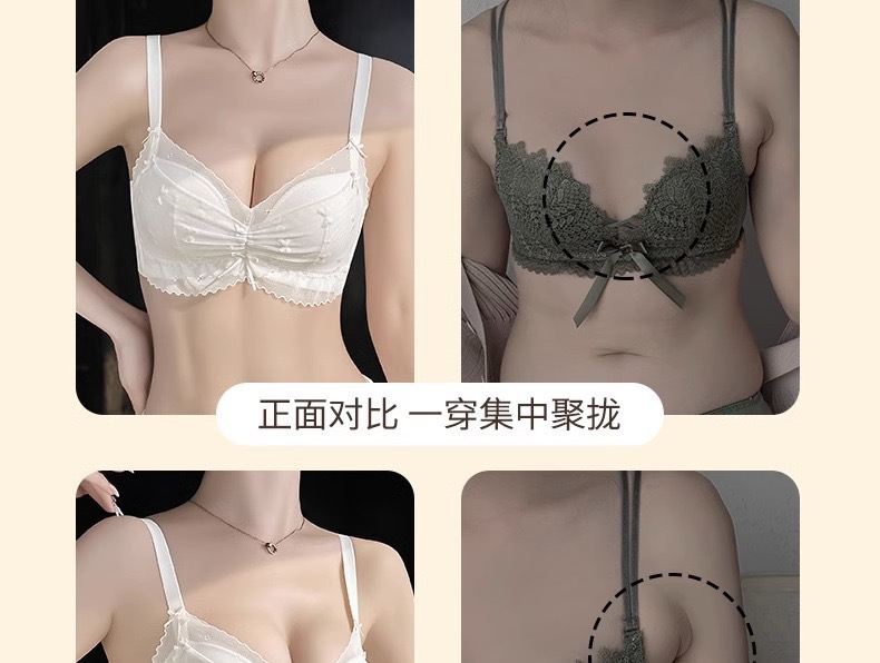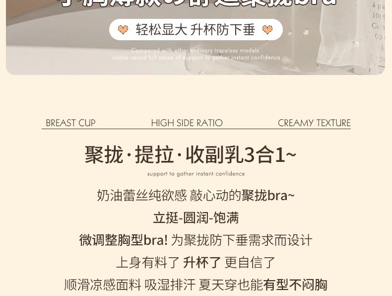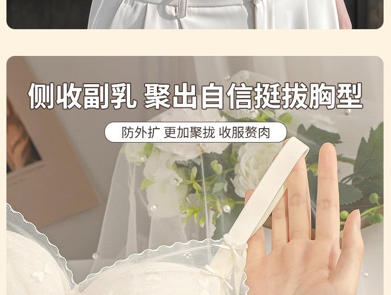 【性感纯欲!敲心动的奶油蕾丝内衣】聚拢•提拉•收副乳3合1,顺滑凉感面料,有型不闷胸!女士小胸聚拢显大调整型无钢圈收副乳防下垂蕾丝夏薄款舒适文胸