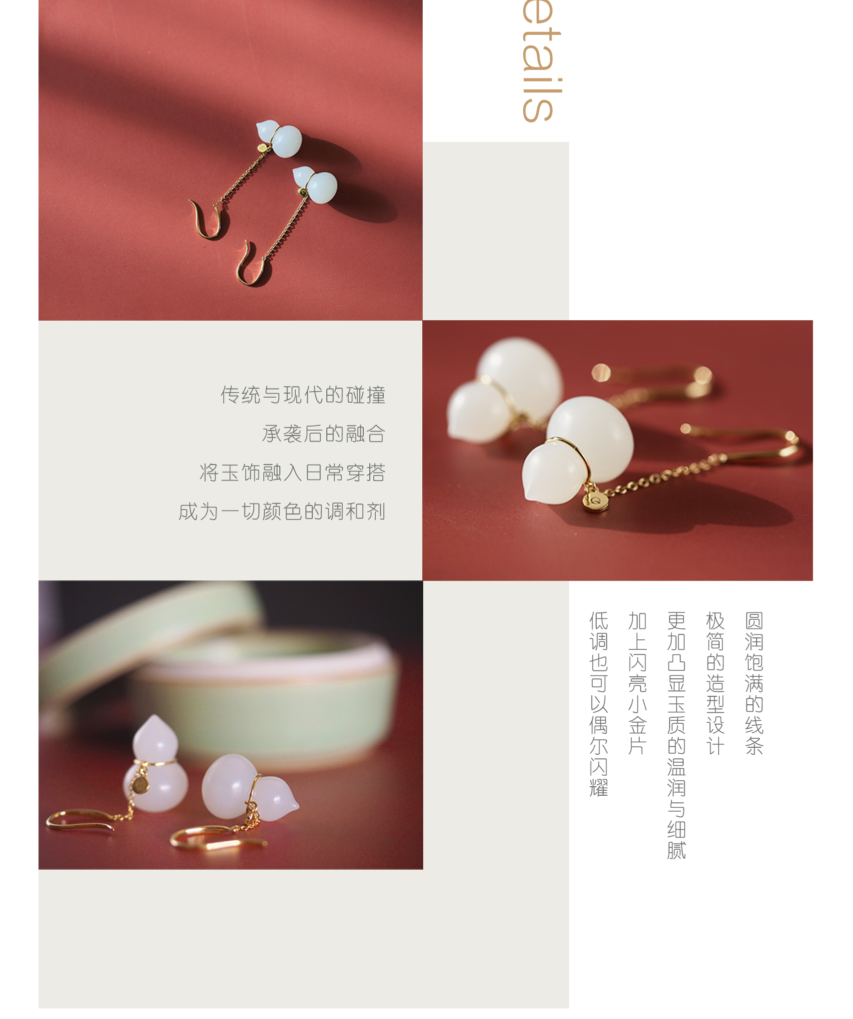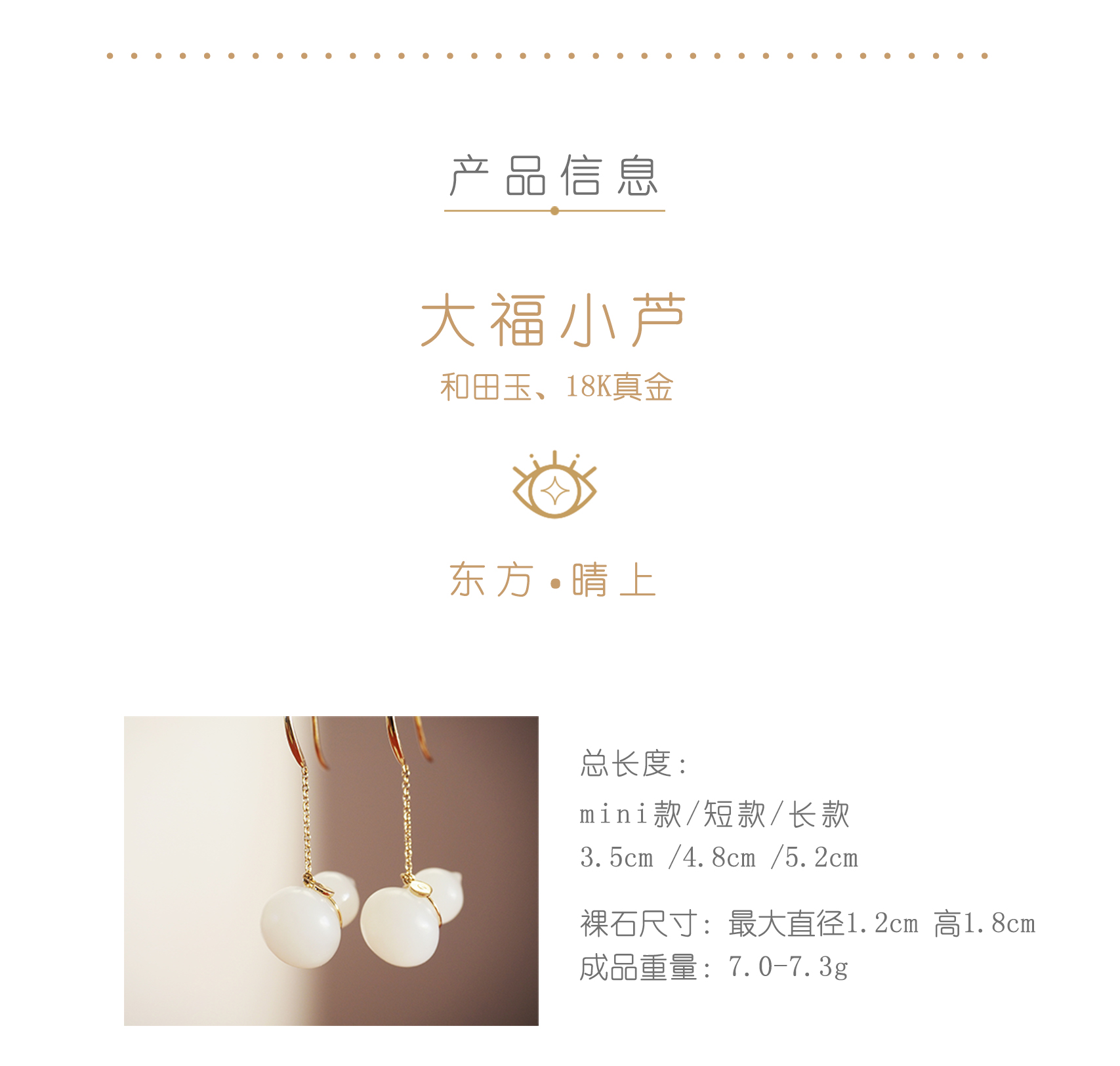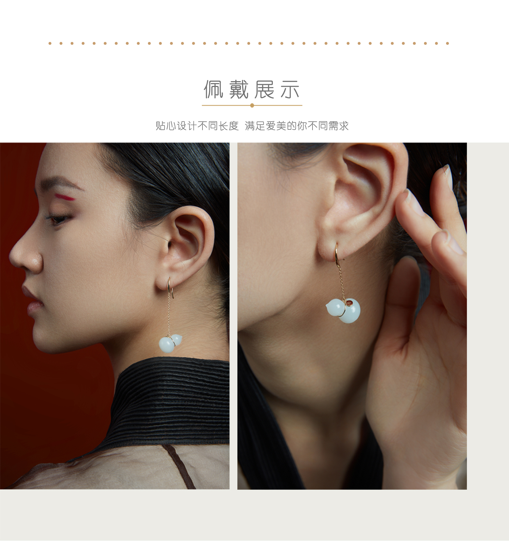 Qinny | 大福小芦|18K金和田玉葫芦多子耳环白玉耳饰