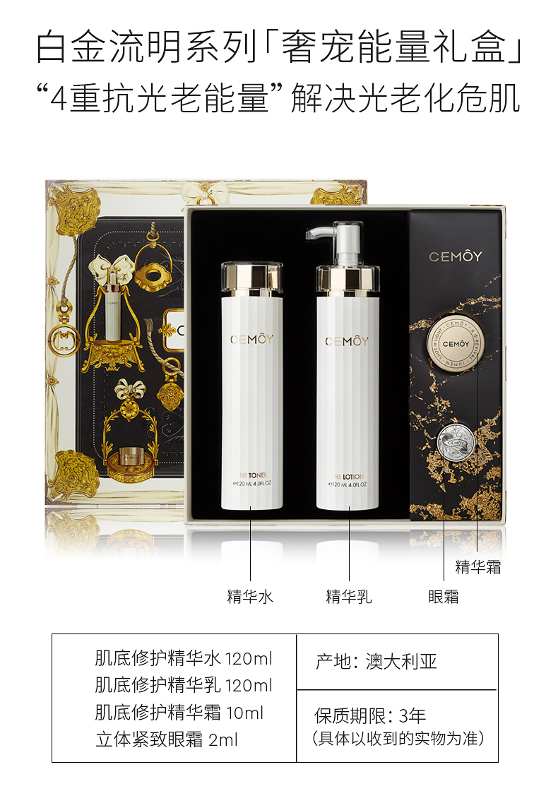澳洲 cemoy 白金流明清爽水乳系列 肌底修复/补水控油 包装随机