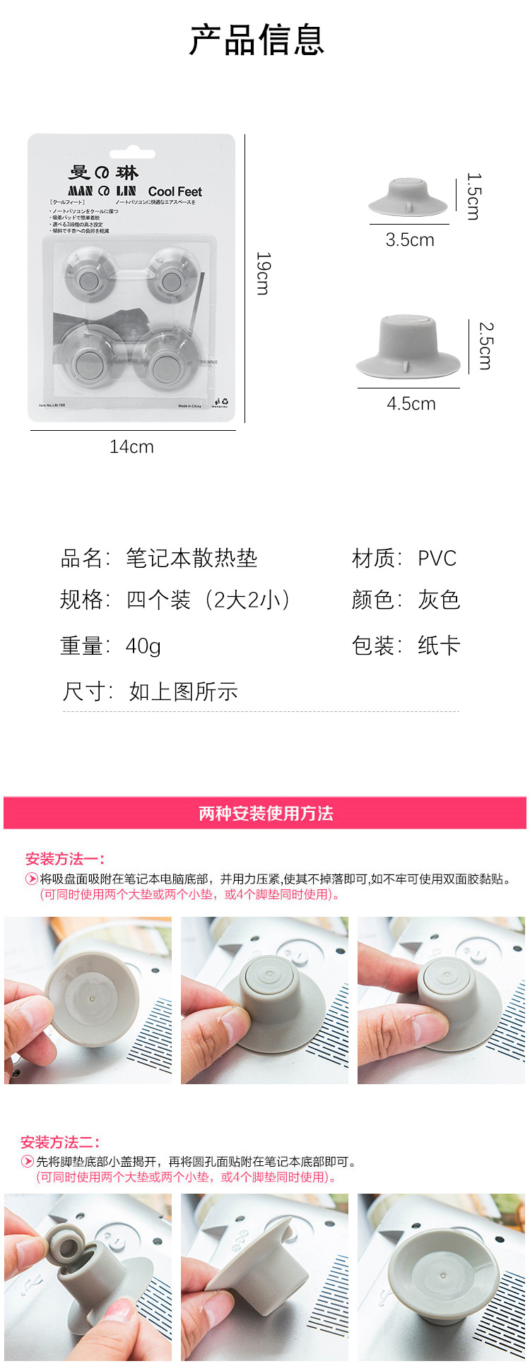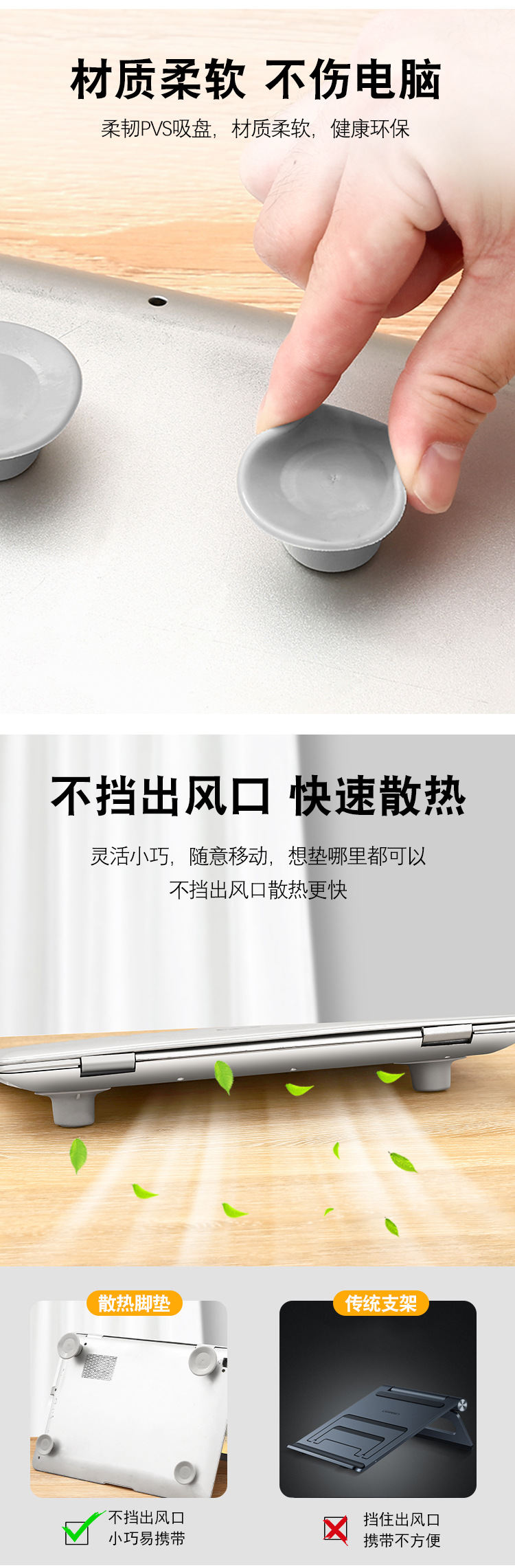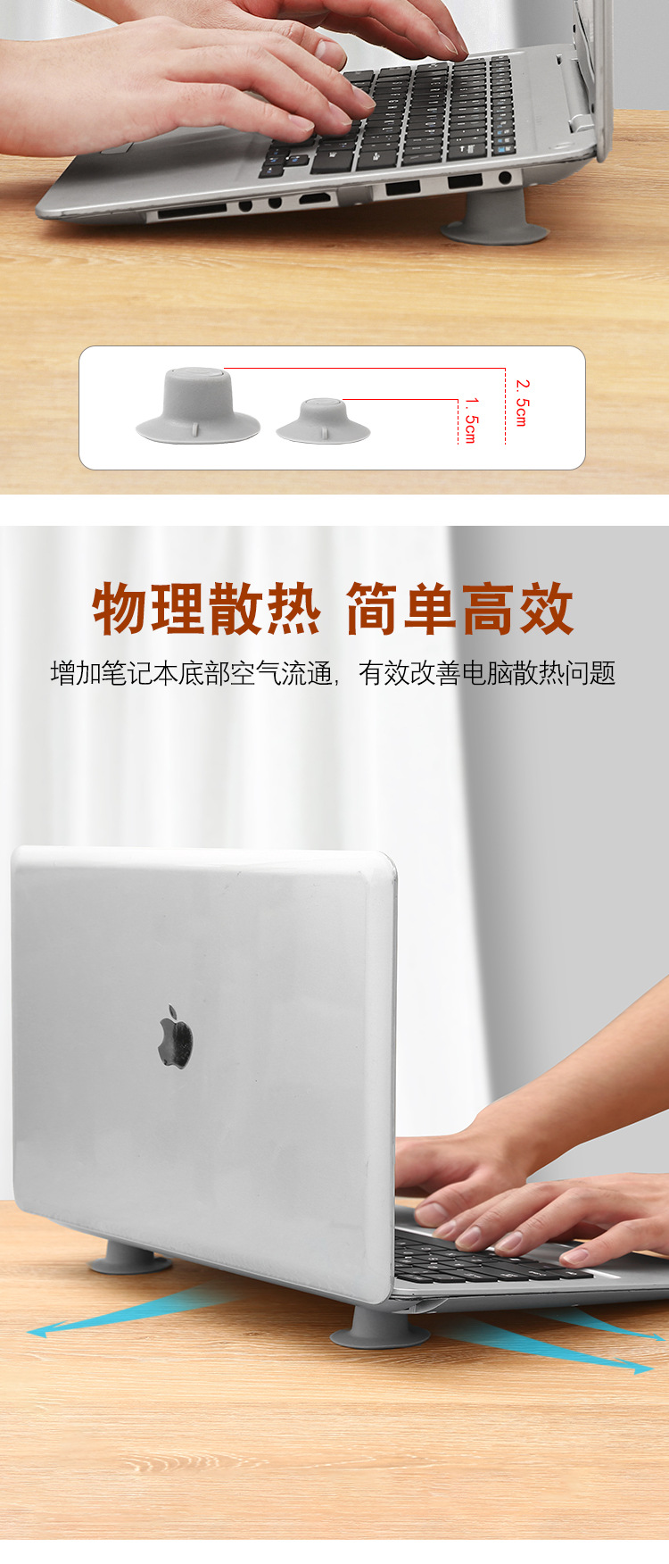 便携式吸盘散热垫脚垫 笔记本电脑 垫高去热垫电脑支架底座4个装