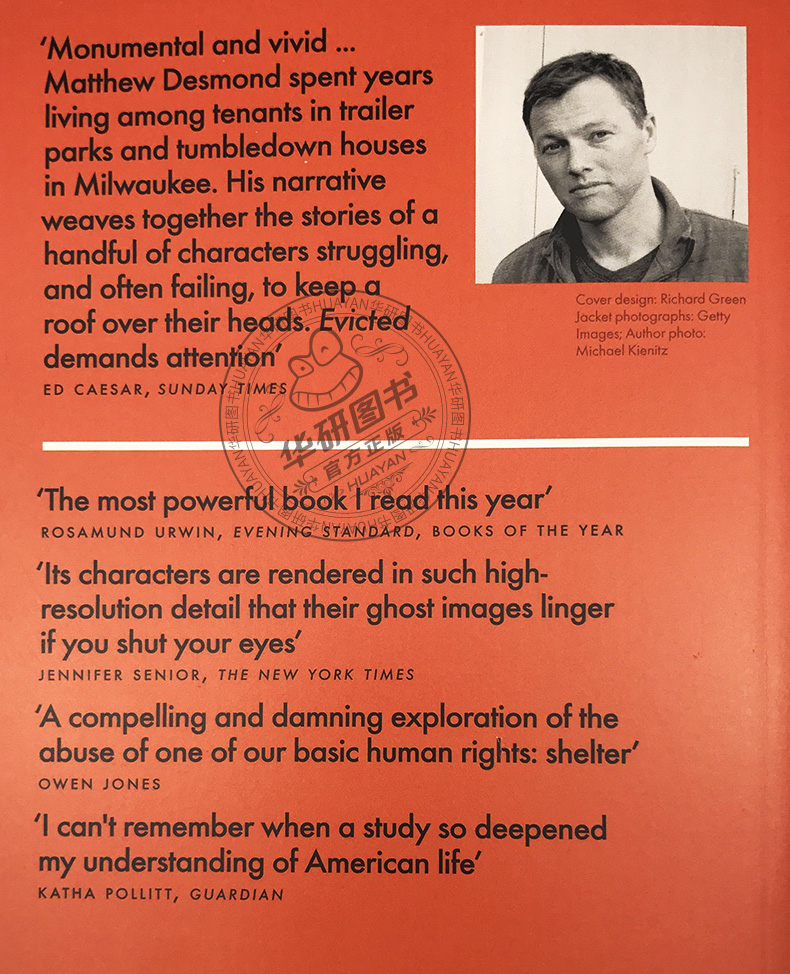 马修·德斯蒙德(Matthew Desmond),普林斯顿大学社会学系教授,威斯康星大学麦迪逊分校博士,曾任哈佛大学社会学系助理教授。作为一名民族志学者,德斯蒙德关注居住正义、城市生活、底层剥削等议题。他的研究曾获福特基金会(Ford Foundation)和美国国家科学基金会(National Science Foundation)的资助。他的文章常见于《纽约时报》、《芝加哥论坛报》等。2015年,德斯蒙德凭借对驱逐议题和住房政策的出色研究,获得麦克阿瑟“天才奖”。2016年,他被评为“影响全美政治议题的五十位人物”之一。