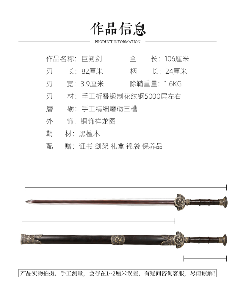 巨阙剑 汉唐宝剑 花纹钢 龙泉沈广隆宝剑 手工一体剑 未开刃