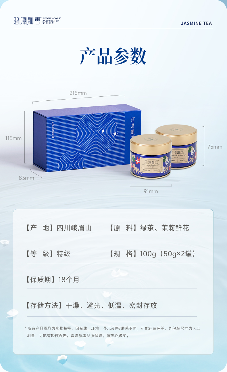 碧潭飘雪茉莉花茶特级四川飘雪茉莉花茶茶叶礼盒装100g