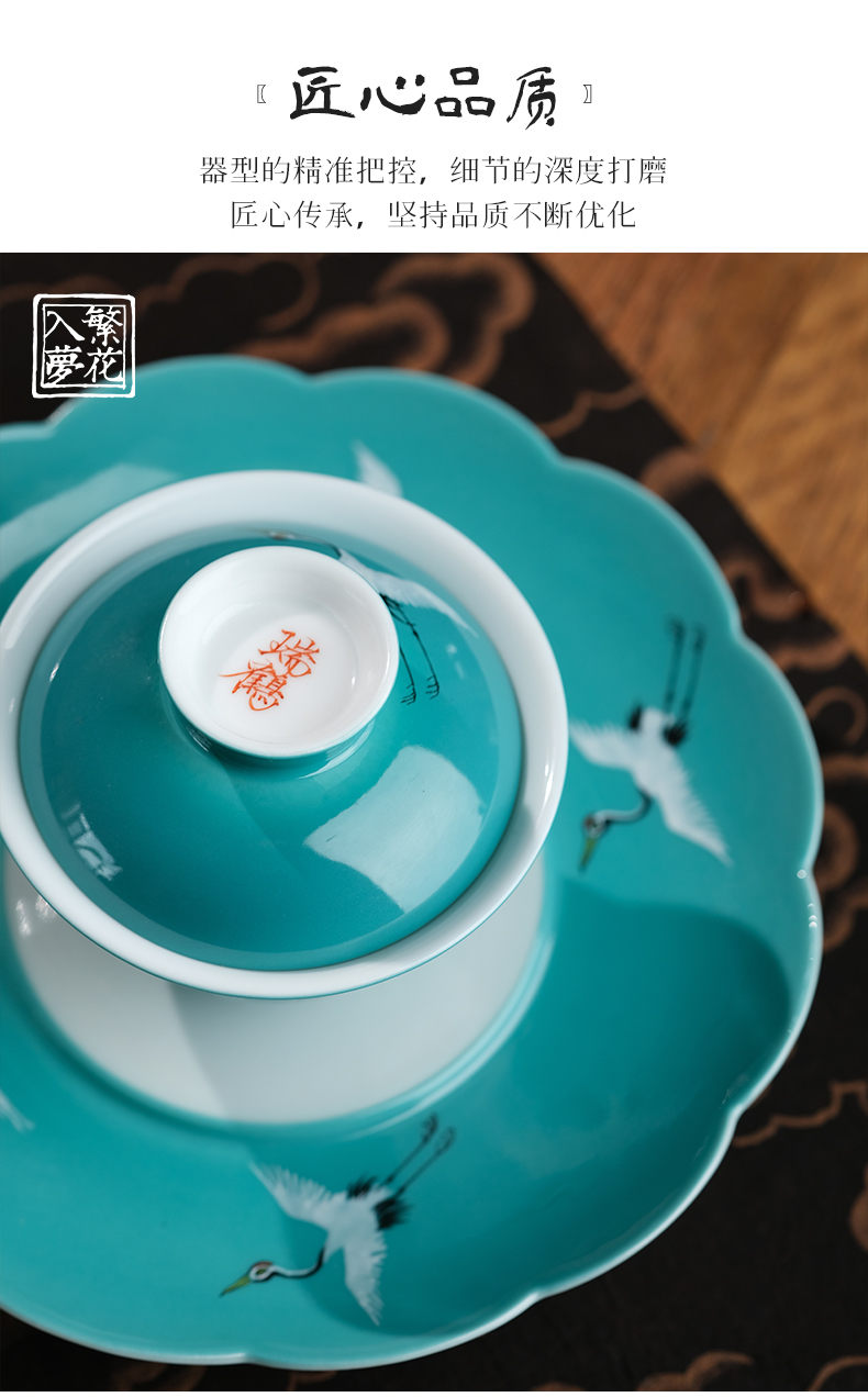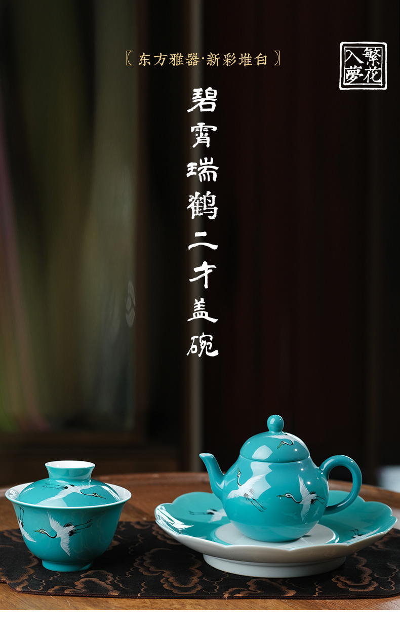 繁花入梦新彩堆白 碧霄瑞鹤梨韵壶 碧霄瑞鹤二才盖碗 碧霄瑞鹤壶承