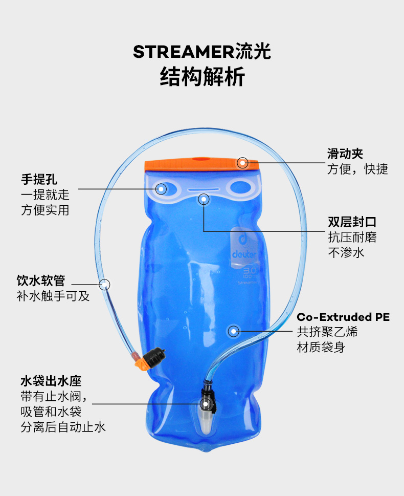 德国多特deuter 水袋 便携饮水袋骑行登山徒步折叠水袋 2L/3L 商品图2