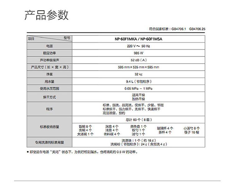 松下(Panasonic)嵌入式洗碗机NP-60F1MKA(黑色)