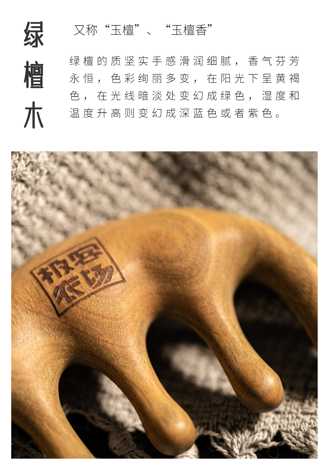 3、绿檀梳子会有吐丝的情况,软布擦拭即可。
