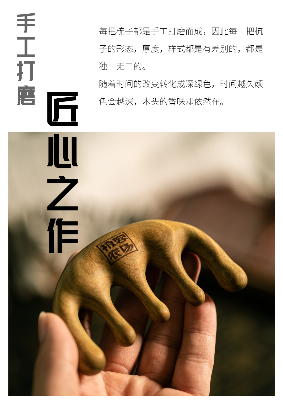 极客定制经络梳/鹿角按摩梳/金丝檀两指按摩梳丨纯手工打磨,每一把都很有特点,各不相同⭐️顺丰快递