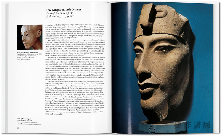 流传至今的古埃及艺术,并未留下创作者的姓名。然而,我们对这些无名大师作品的珍视程度,丝毫不亚于后世的艺术瑰宝 —— 譬如米开朗基罗的雕塑,或是列奥纳多?达?芬奇的画作。本书将介绍一批最重要的古埃及艺术杰作,时间跨度从公元前三千纪的古王国时期,一直延续到罗马统治时期。