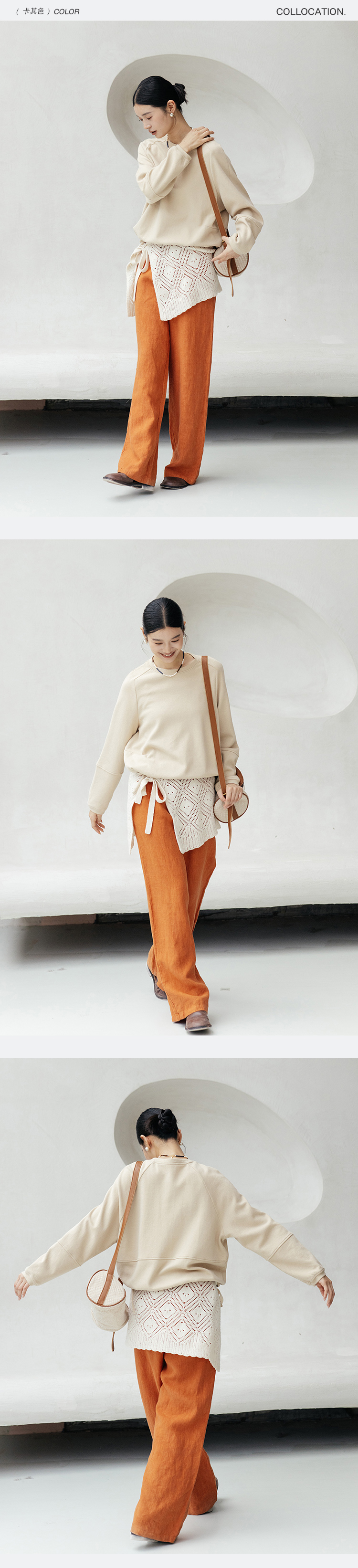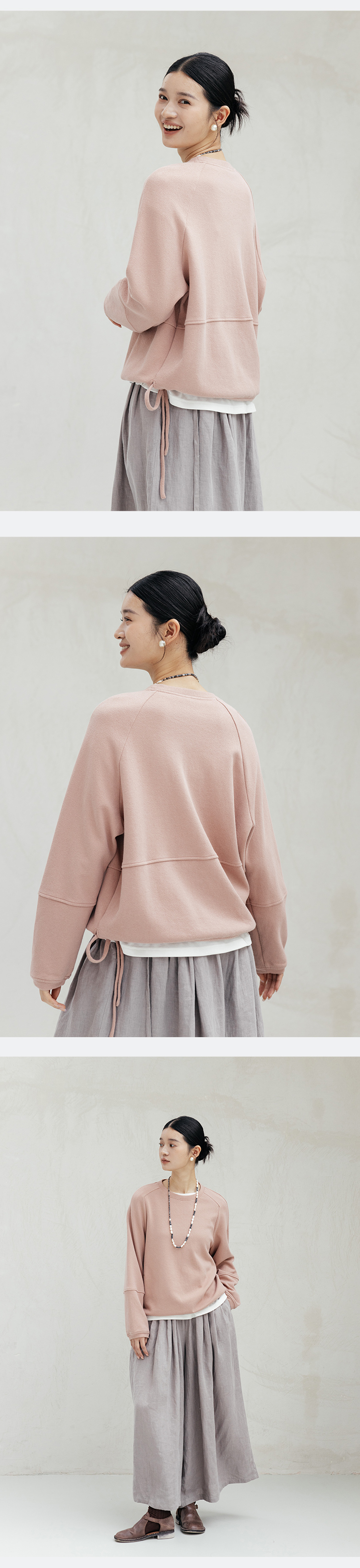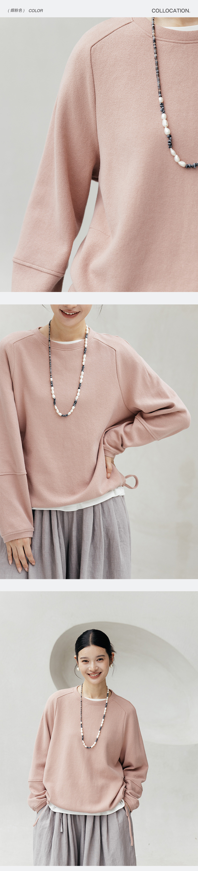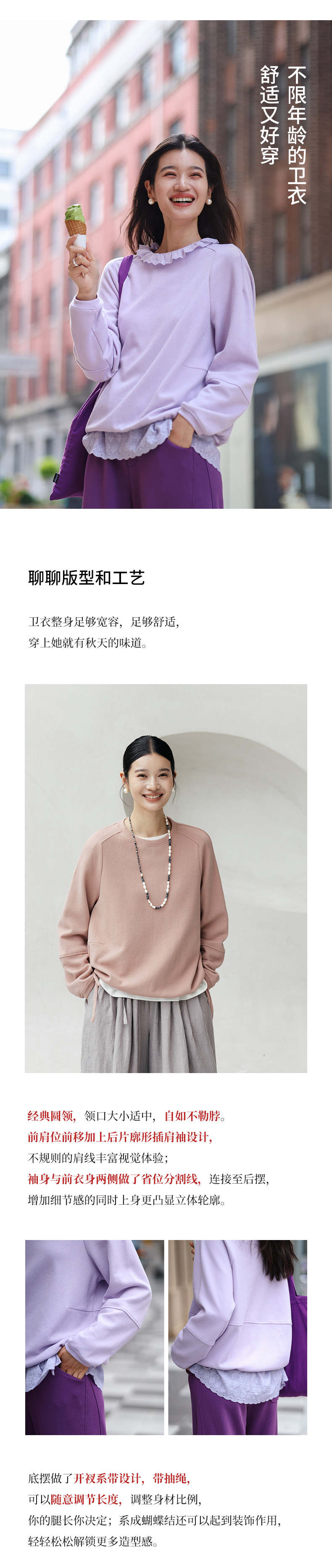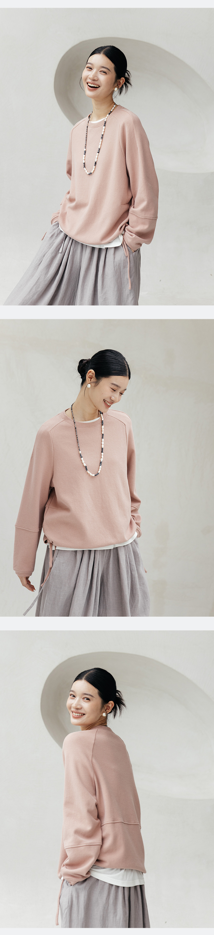 绽放702朵/2024秋季新款女装设计感系带休闲棉纱宽松圆领套头卫衣