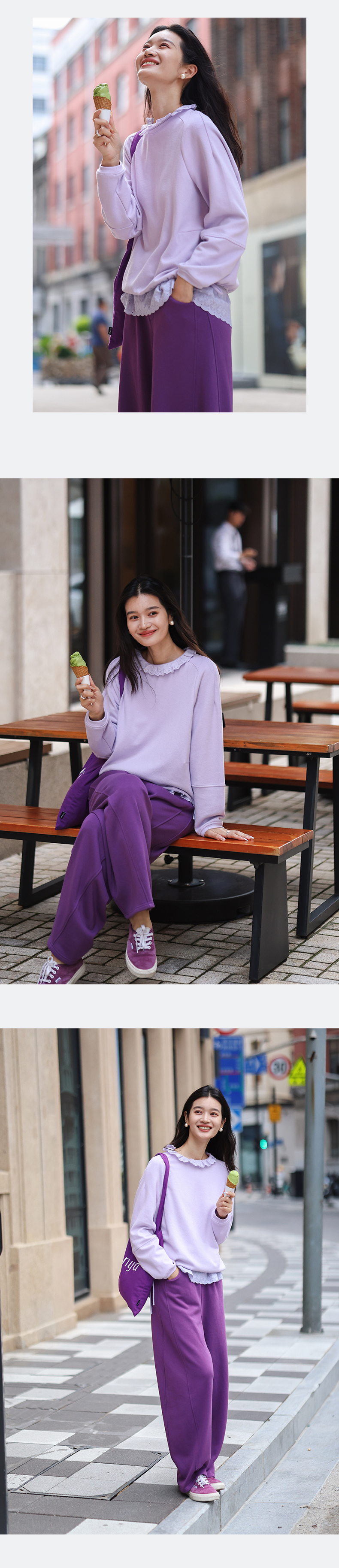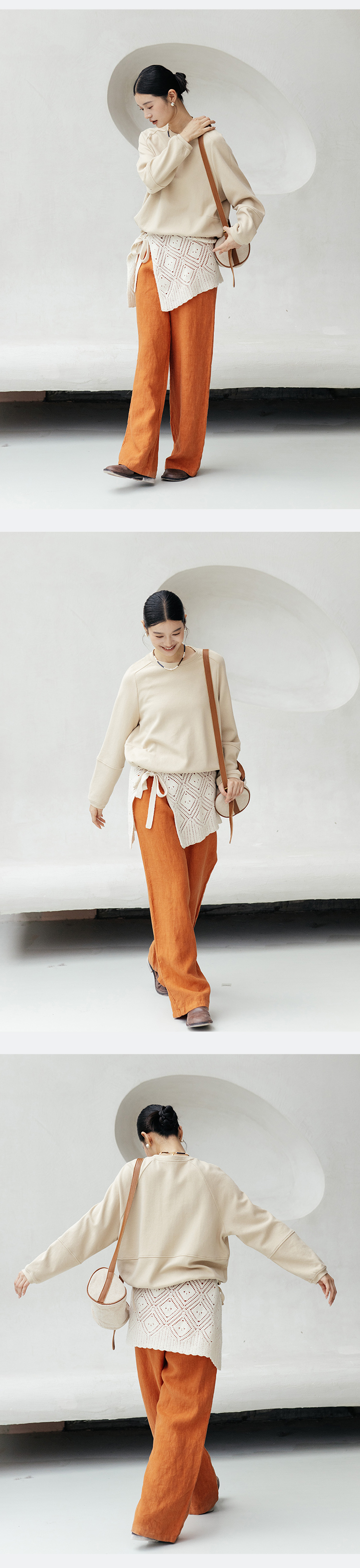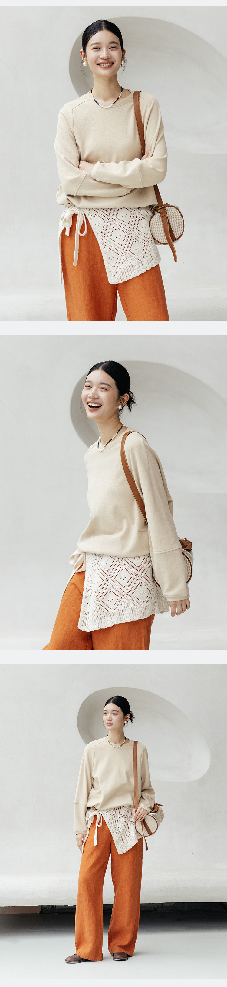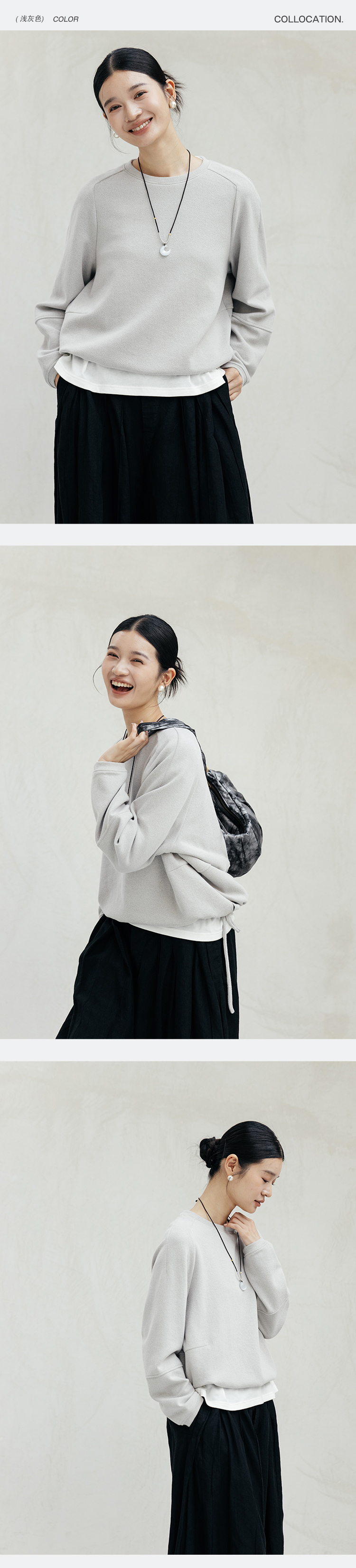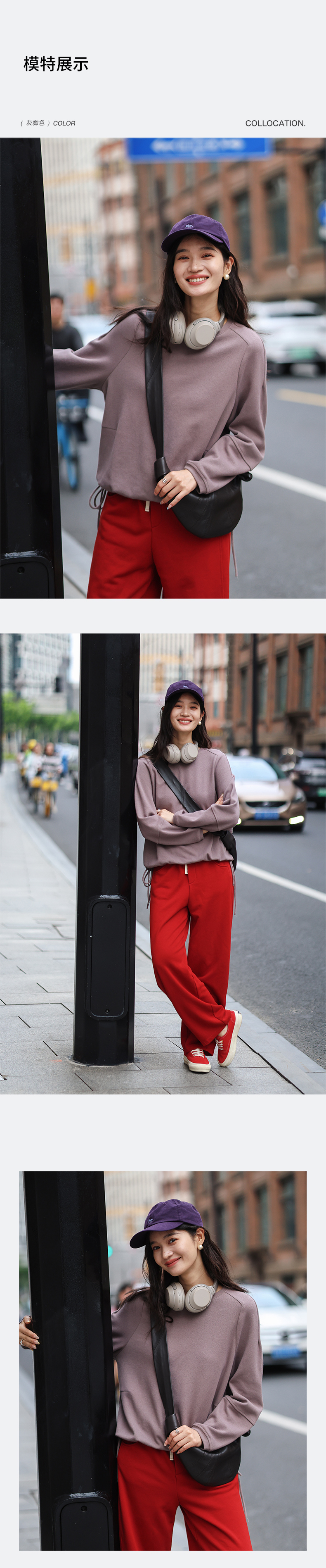 绽放702朵/2024秋季新款女装设计感系带休闲棉纱宽松圆领套头卫衣