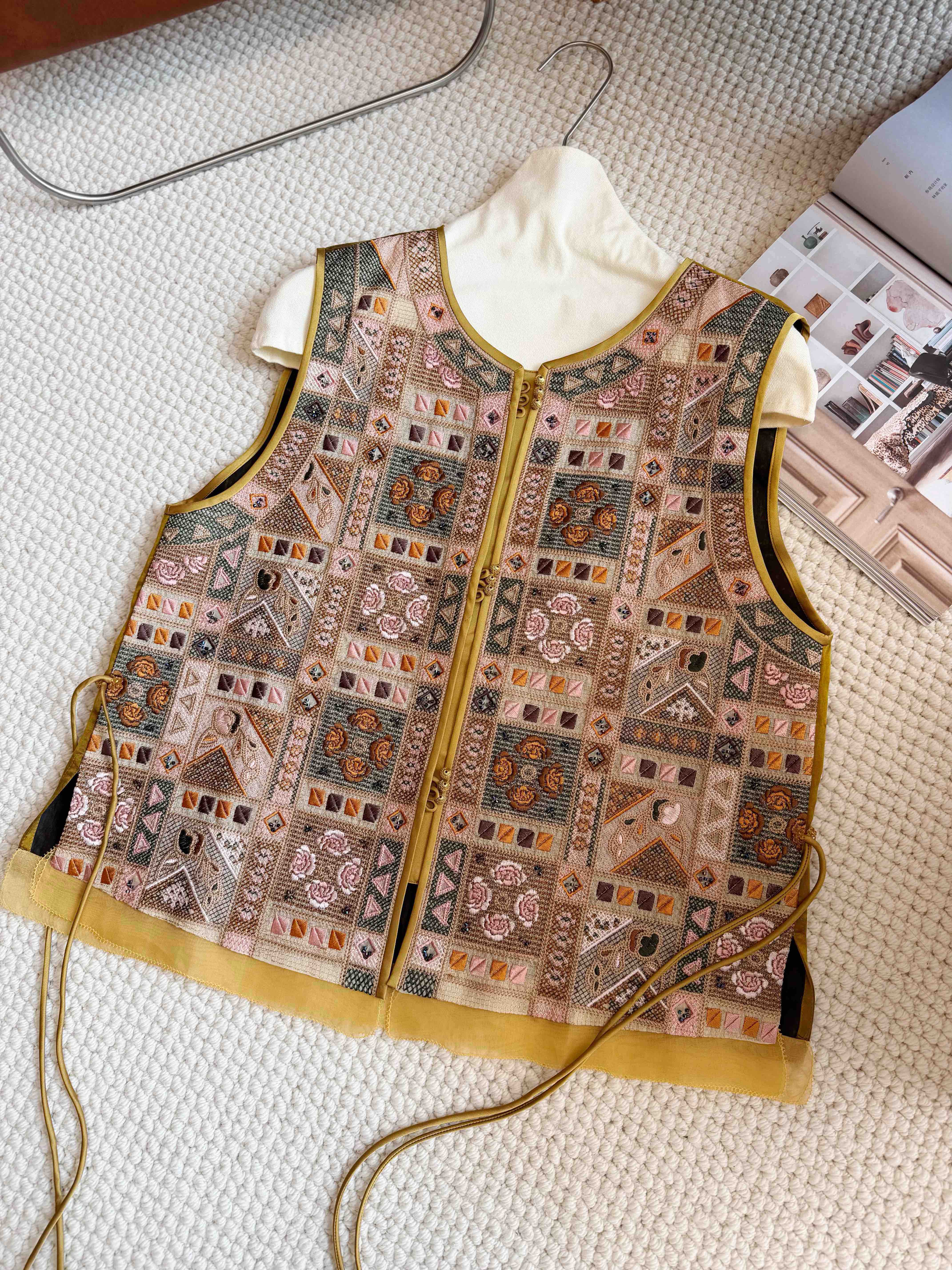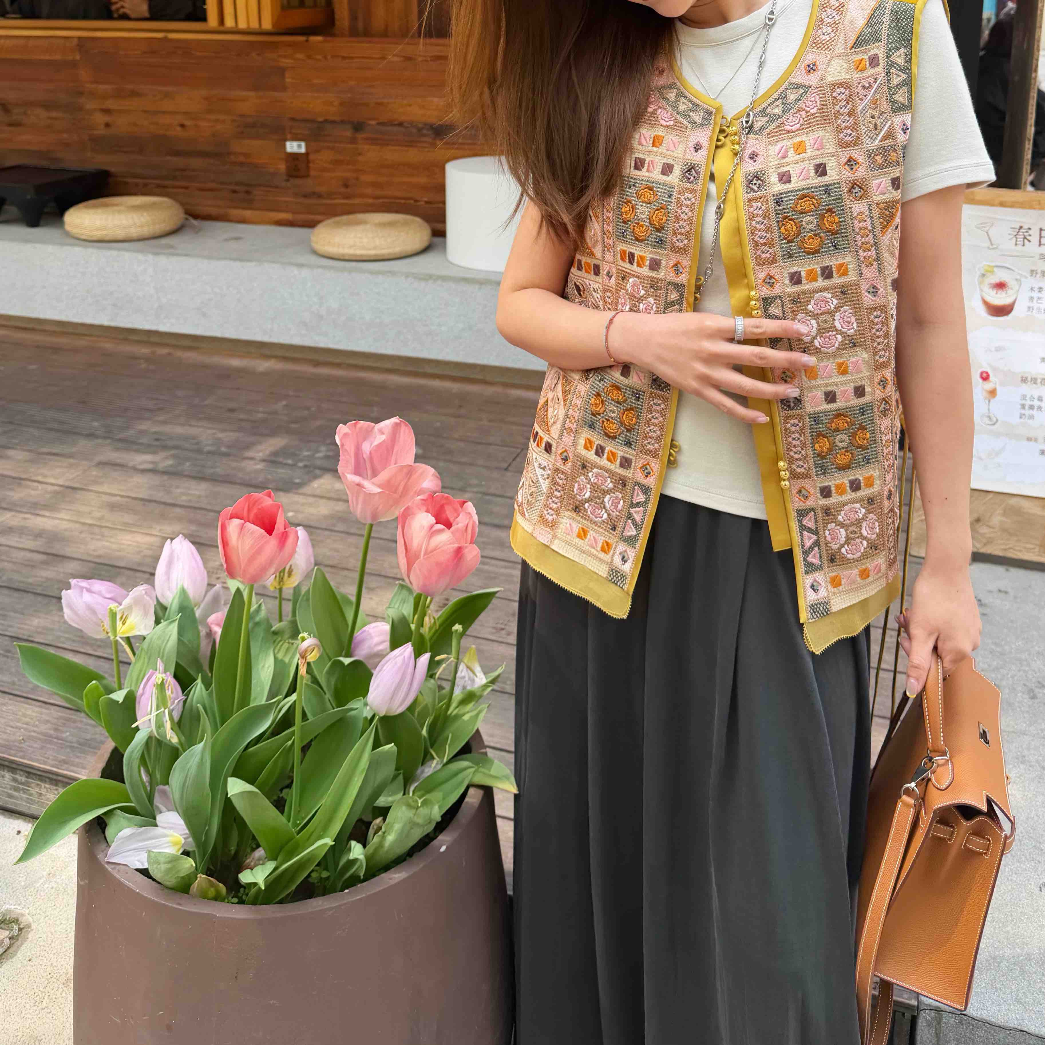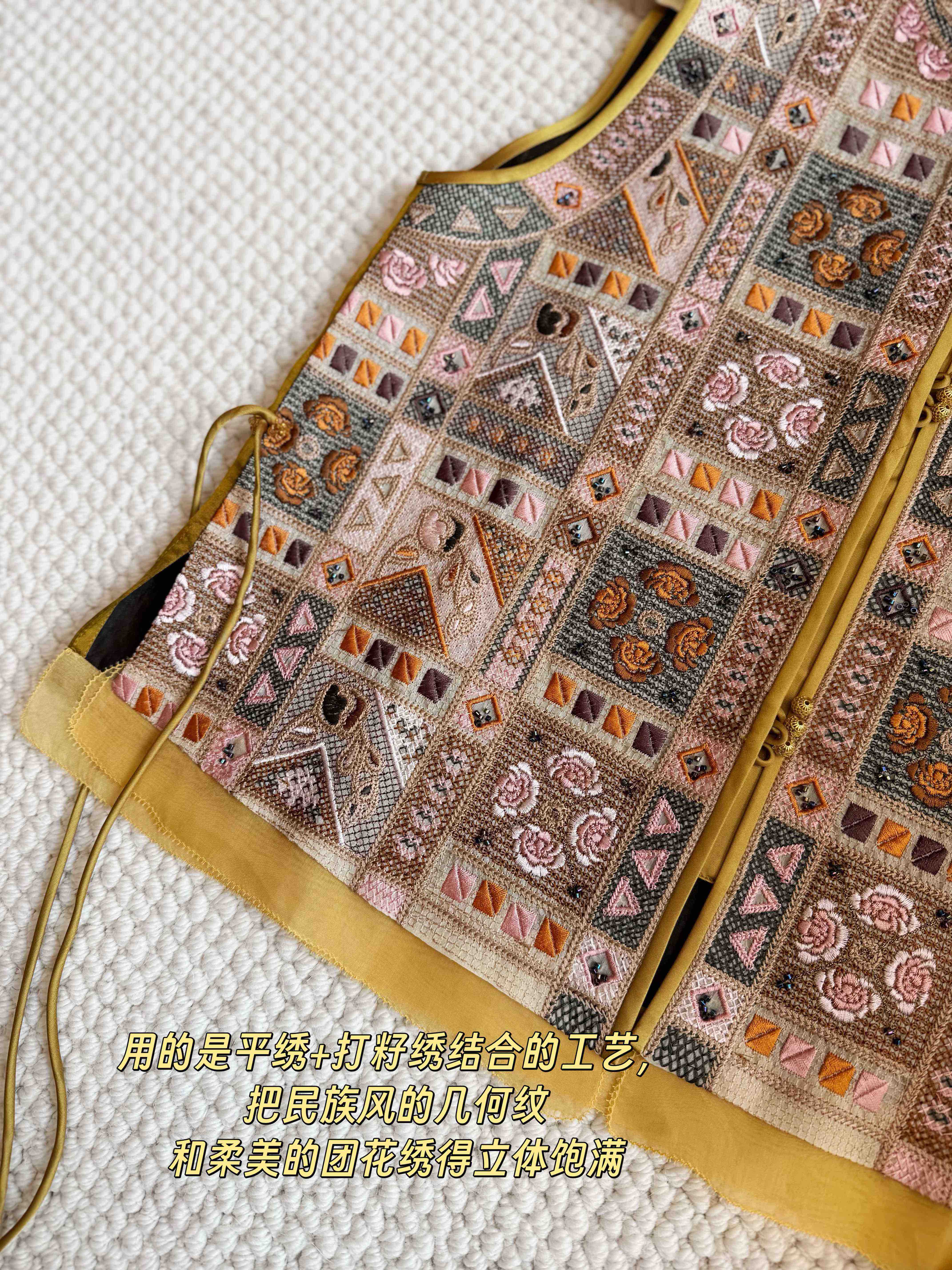 刺绣🪡满幅对称重工,手作感拉满:整个衣身的刺绣全部是对称设计,没有一根歪线!用的是平绣+打籽绣结合的工。