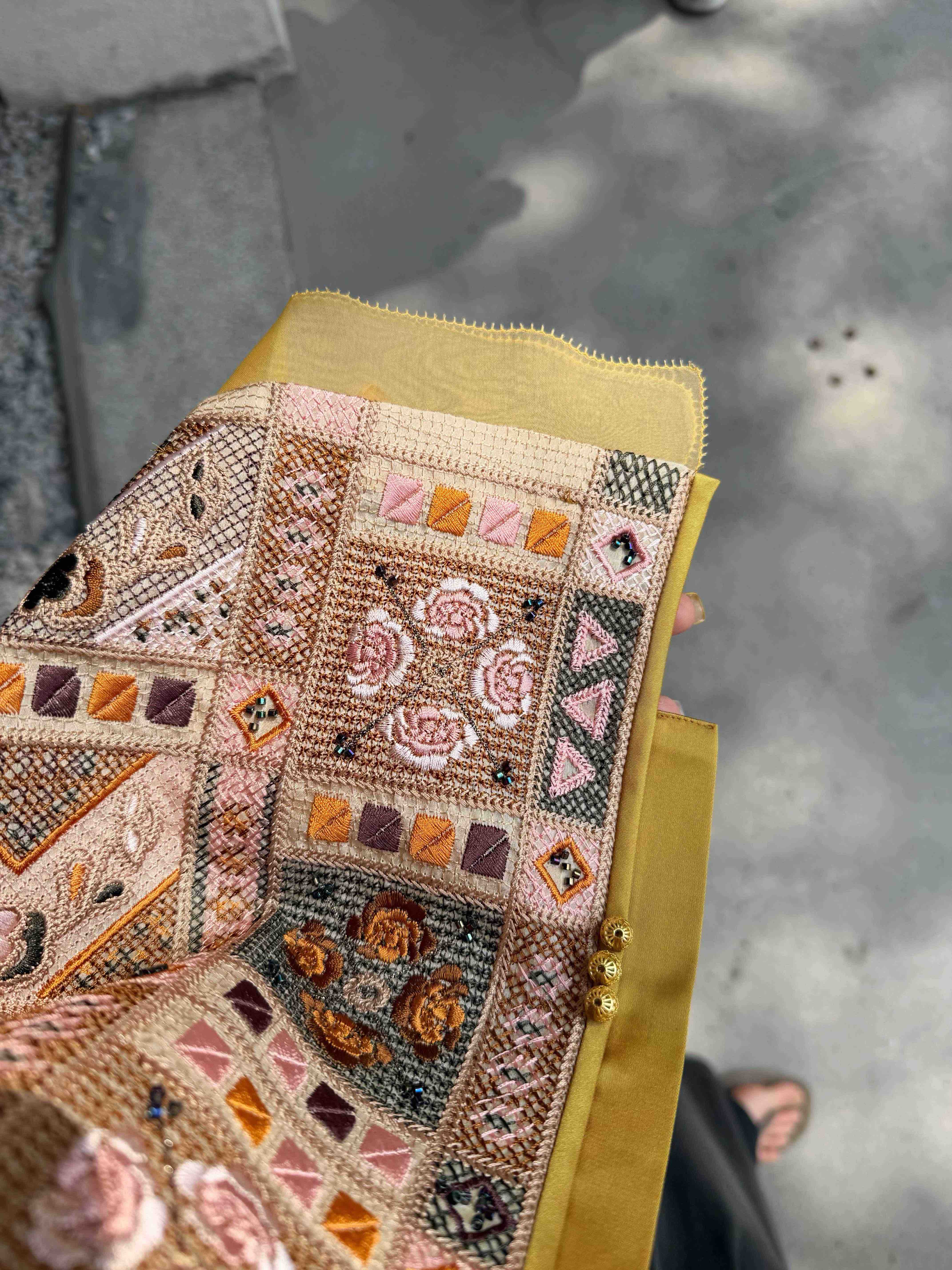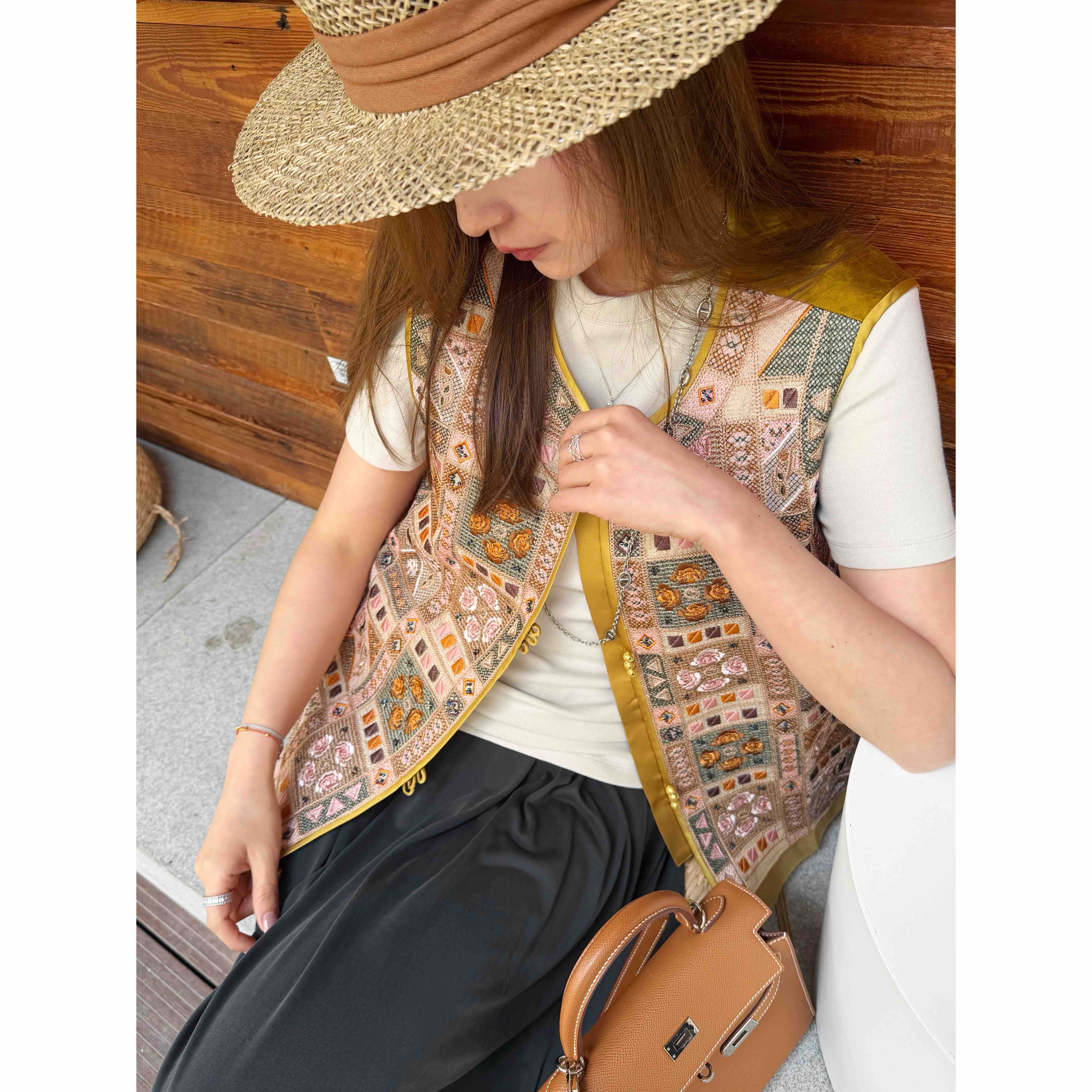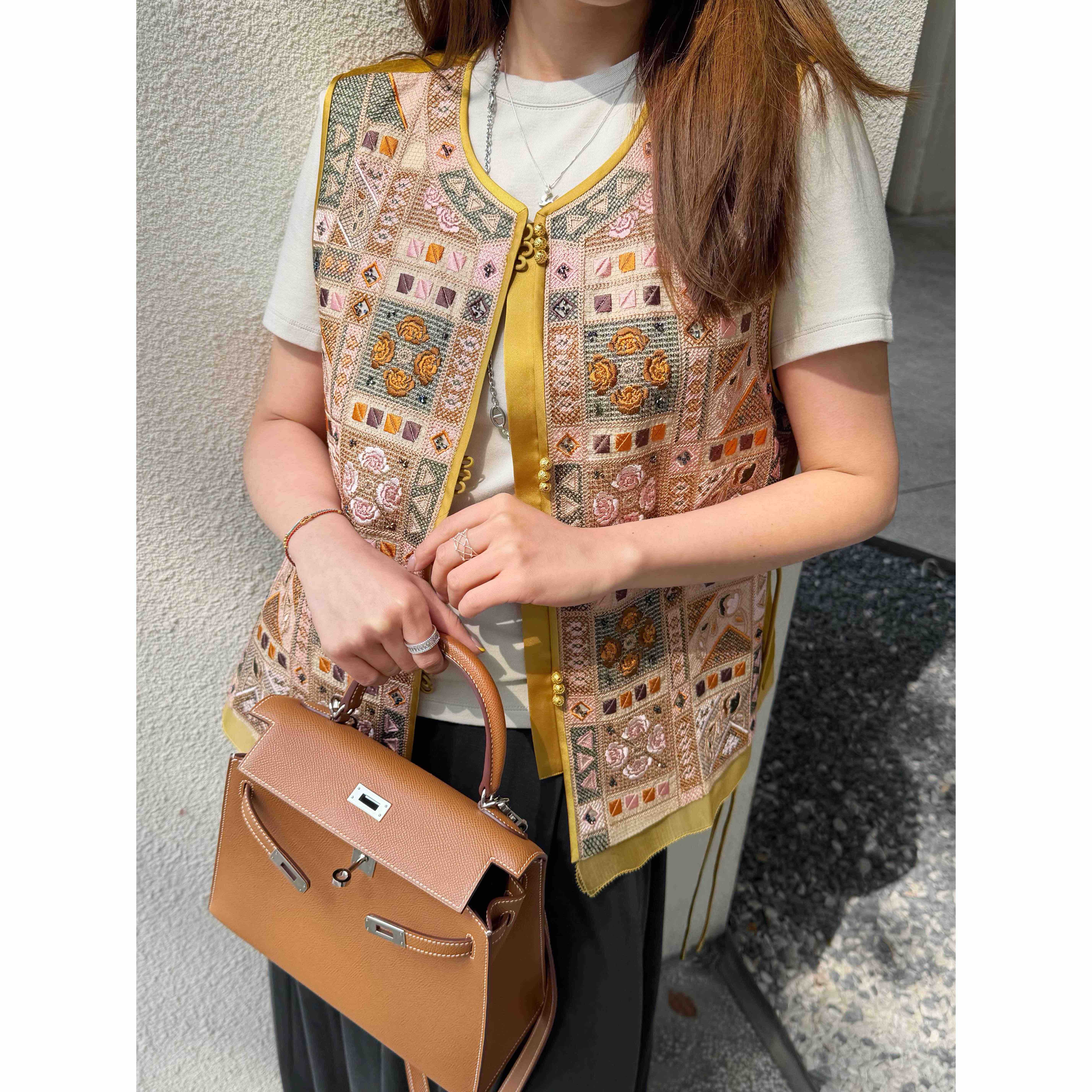 刺绣🪡满幅对称重工,手作感拉满:整个衣身的刺绣全部是对称设计,没有一根歪线!用的是平绣+打籽绣结合的工。