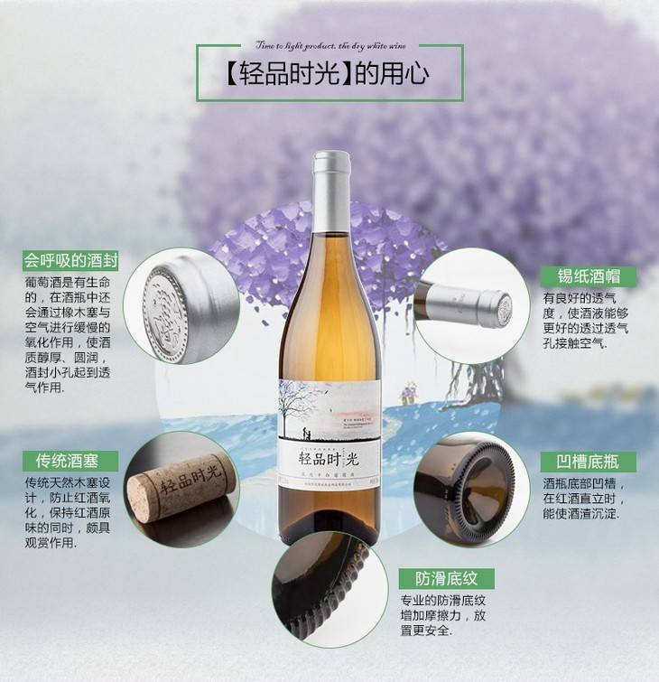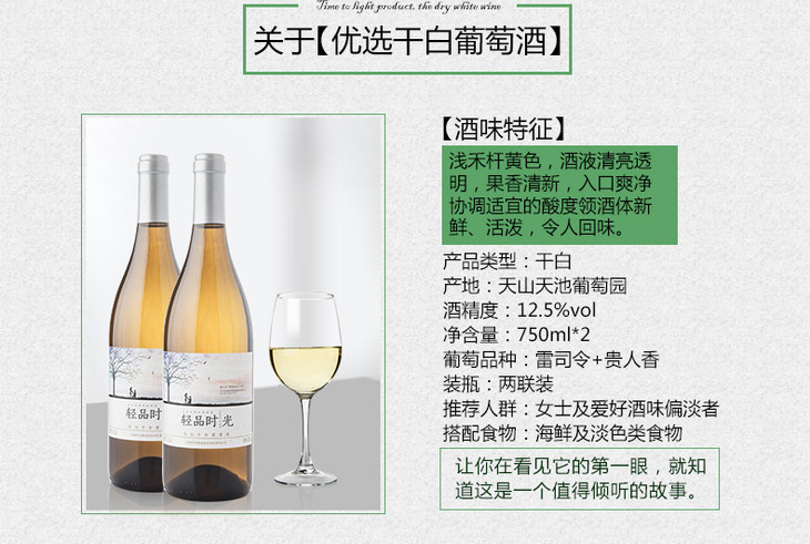 【发货时间待定】轻品时光 新疆红酒干白葡萄酒 750ml*2 商品图3