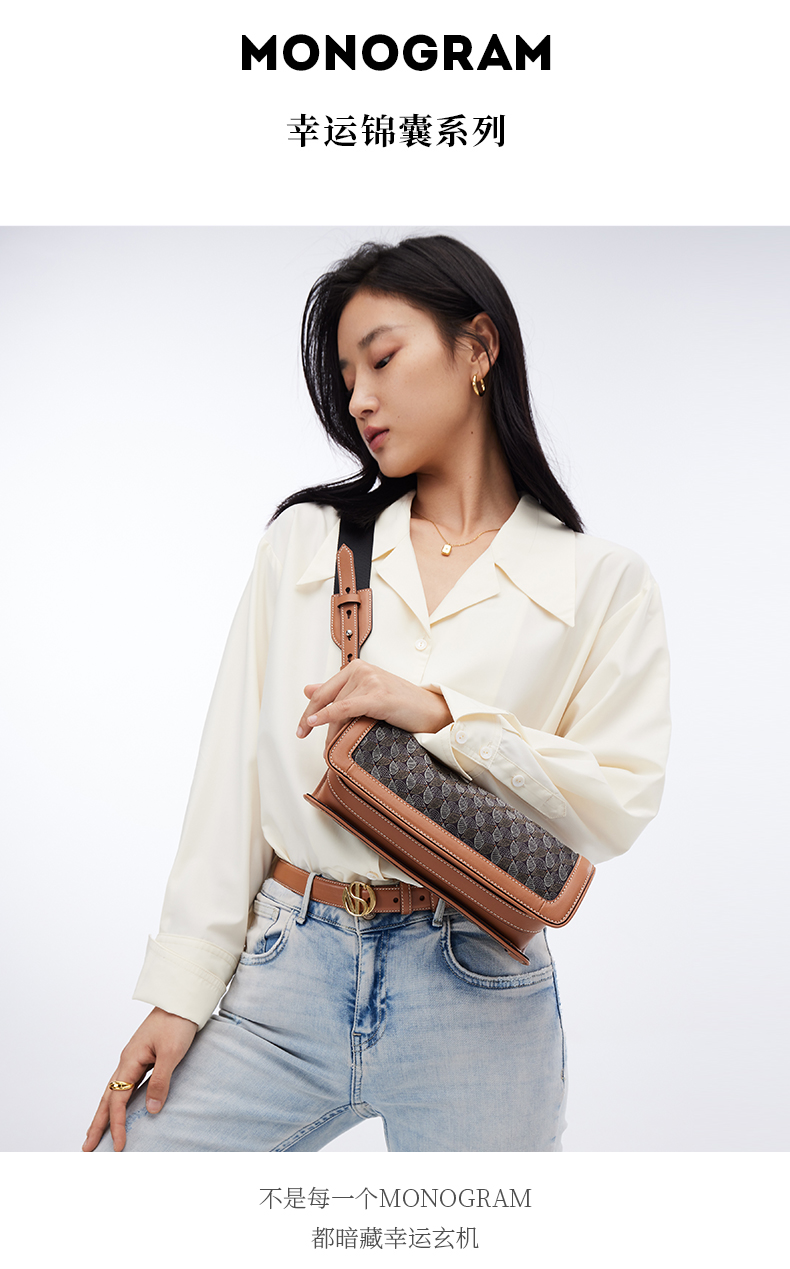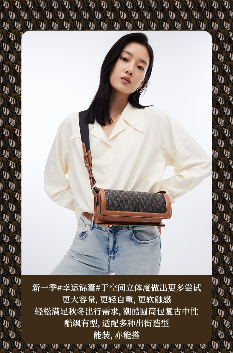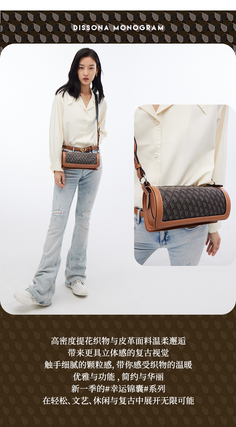 【2F】迪桑娜女包幸运锦囊圆筒包2022新款斜挎小圆包复古老花单肩包包女