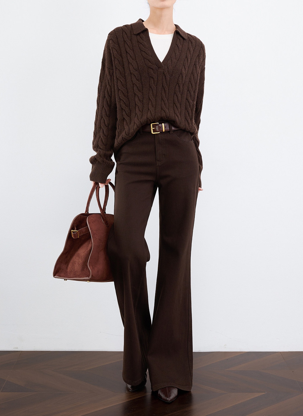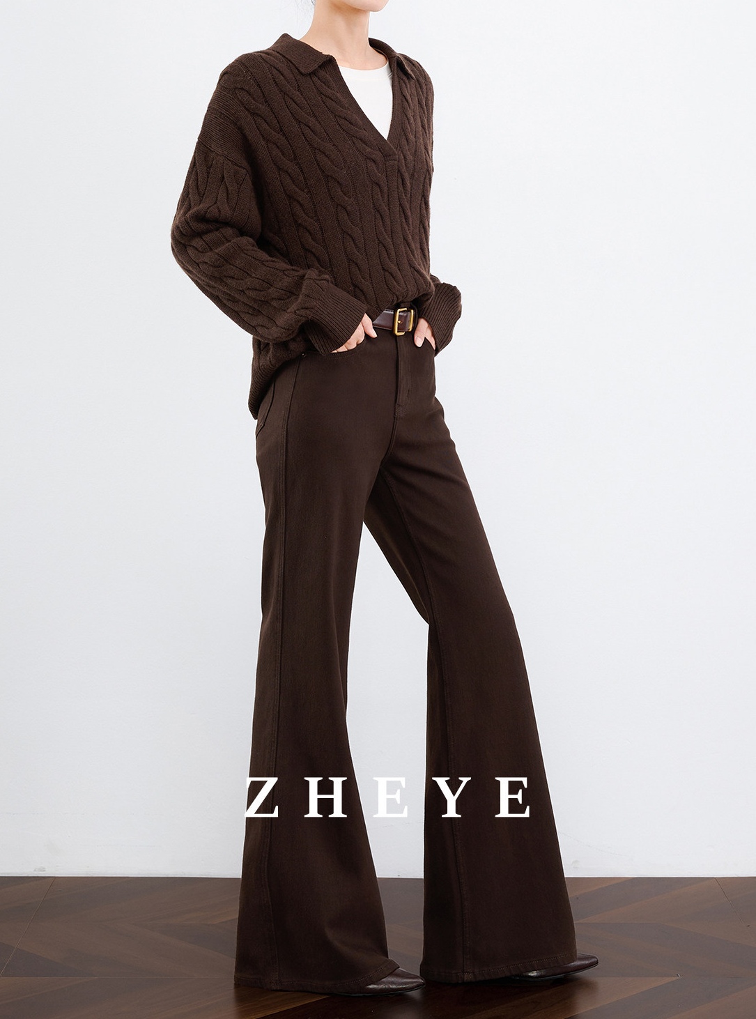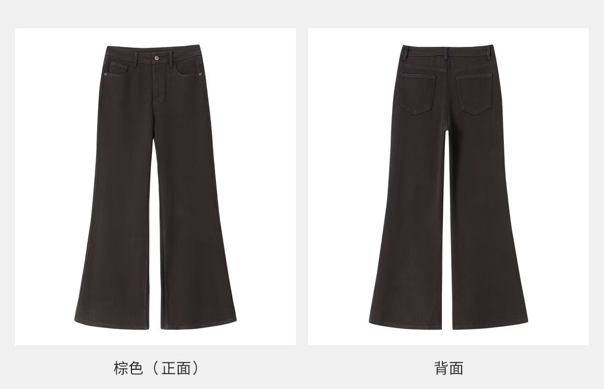 区别传统夸张的喇叭裤脚,经数十次立裁改良,裤脚比例恰当,上身立显长腿臻选赛络纺环保棉,健康浆染工序舒适塑形,干爽挺括