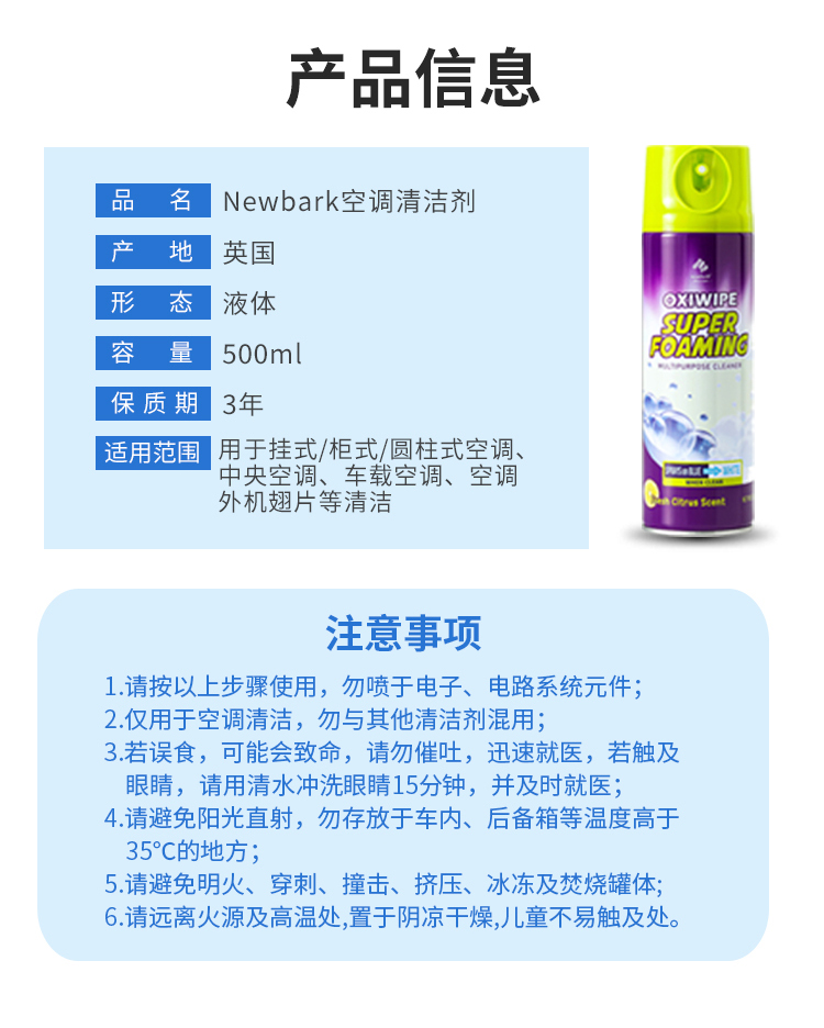 【品名】【超值2瓶装】英国Newbark 空调清洁剂2.0 500ml/瓶 【规格】500ml/瓶 【产地】英国 【保质期】3年 【发货包装】独立包装瓶 【发货地】广东 【发货快递】中通 【不发货区域】新疆、西藏、海南 【发货时效】48-72小时,周末节假日顺延 |